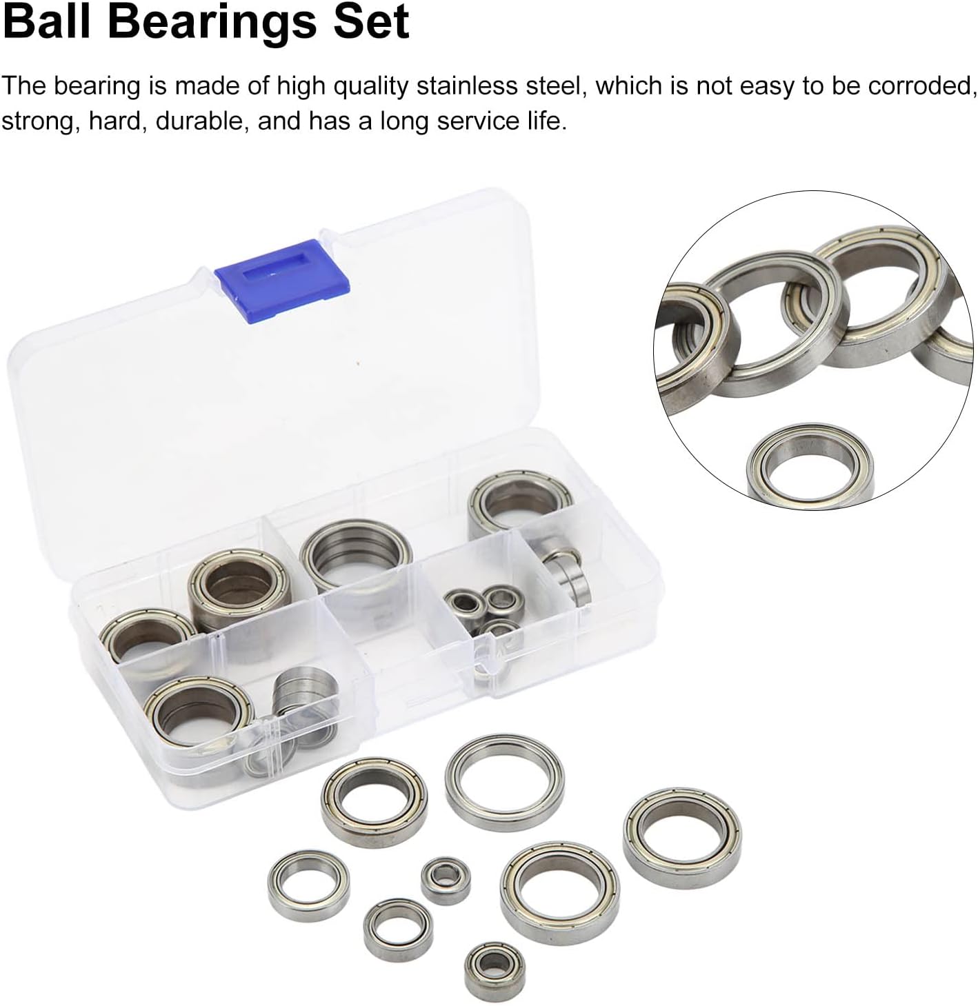 [Progettato per]: il cuscinetto ha un'elevata precisione, che può essere perfettamente abbinato al modello, invece degli accessori originali, adatto per camion TRAXAS Xmaxx6s 8s 1/5. [Materiale di alta qualità]: il cuscinetto è realizzato in acciaio inossidabile di alta qualità, che non è facile da corrodere, forte, duro, durevole e ha una lunga durata. [Multi dimensioni]: kit cuscinetti a sfera RC, contiene una varietà di dimensioni, con quantità sufficiente, buona compatibilità, facilità di installazione, migliora le prestazioni dell'auto modello, aggiungi più divertimento alla tua auto telecomandata e prestazioni stabili. [Easy Storage]: gli accessori per cuscinetti a sfera per auto modello con una scatola di plastica, che possono essere ben posizionati e classificati meglio questi cuscinetti, comodi e pratici. [Ampiamente utilizzato]: i cuscinetti a sfere a scanalatura profonda in miniatura ad alte prestazioni sono ampiamente utilizzati in auto RC, camion cingolati, skateboard, pattini in linea, scooter, ecc. (controllare le dimensioni per la compatibilità)