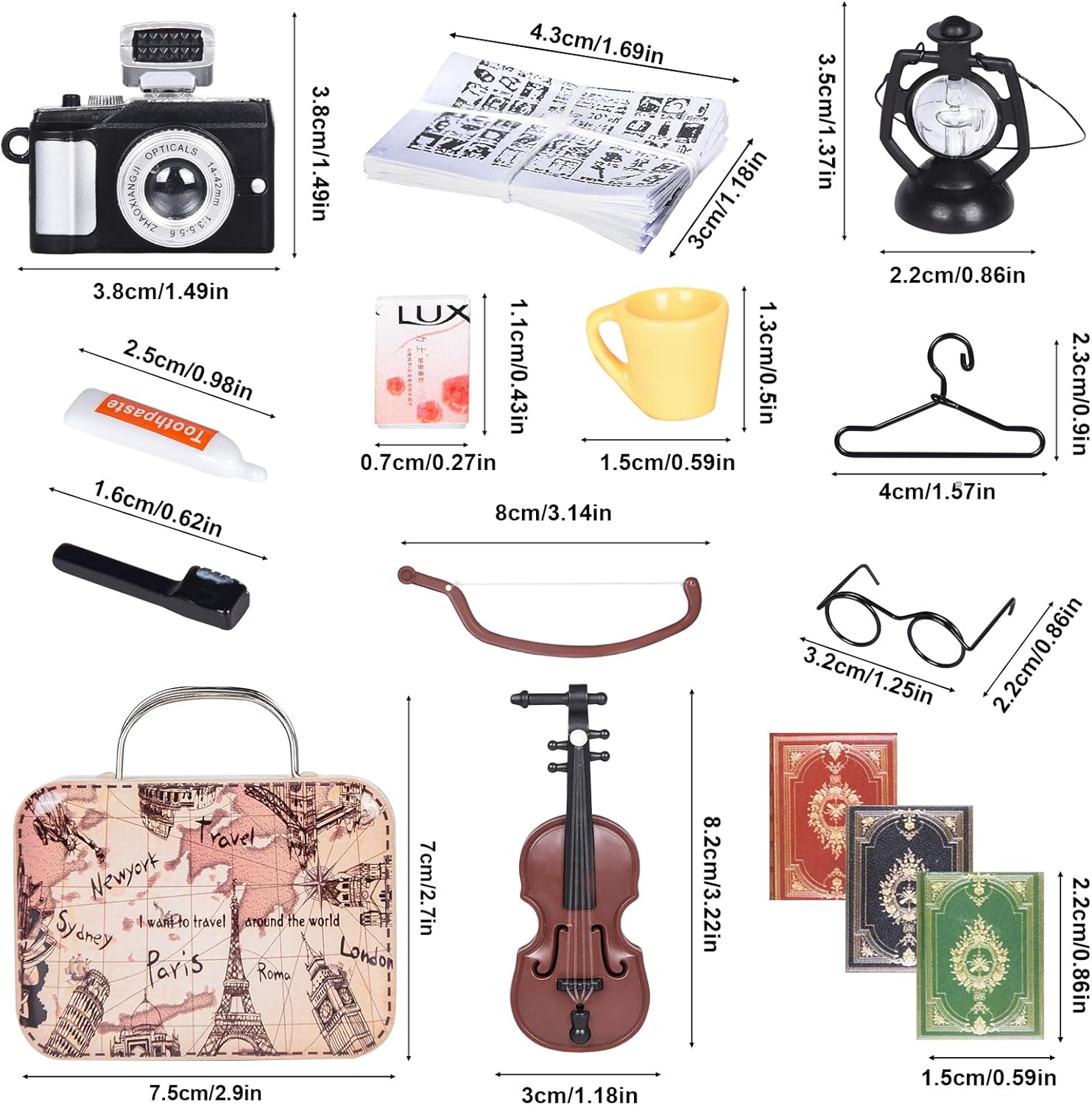 Accessori per nani in miniatura: Riceverete 12 pezzi di accessori in miniatura per la casa delle bambole. ( 1 x macchina fotografica in miniatura, 1 x violoncello, 1 x valigia in miniatura, 1 x occhiali in miniatura, 1 x libri in miniatura, 1 x giornale in miniatura, 1 x lampada a cherosene, 1 x modello di dentifricio, 1 x spazzolino in miniatura, 1 x tazza in miniatura, 1 x appendiabiti ) Materiali di alta qualità: Questi accessori per elfi in miniatura sono realizzati con materiali di alta qualità, forma realistica e lavorazione fine, robusta e durevole, non facile da rompere o sbiadire, si può giocare per molto tempo. È un set di ornamenti in miniatura molto carino, ideale per i bambini per decorare la loro casa delle bambole. Squisita fattura: Questi accessori in miniatura per la casa delle bambole sono di pregevole fattura e di colore durevole, il rapporto di riduzione è molto alto. Con questi accessori in miniatura, i bambini possono progettare case delle bambole in miniatura uniche. Le case delle bambole fai da te promuovono la creatività e migliorano le capacità artigianali dei bambini. Regalo perfetto: I mini accessori per la casa delle bambole vintage sono regali per bambini o amici, ideali per dare vita alla casa delle bambole. Per i bambini che amano l'artigianato e l'arte in miniatura, offrono infinite ore di divertimento e sono un regalo perfetto e un oggetto da collezione! Ampia gamma di applicazioni: Questo accessorio porta caramelle è ideale per giardini delle fate, decorazioni natalizie, giardini in miniatura, giardini magici, giardini in miniatura fai da te, paesaggi in miniatura, case delle bambole, ecc. Se avete domande sulla qualità del prodotto, non esitate a contattarci.