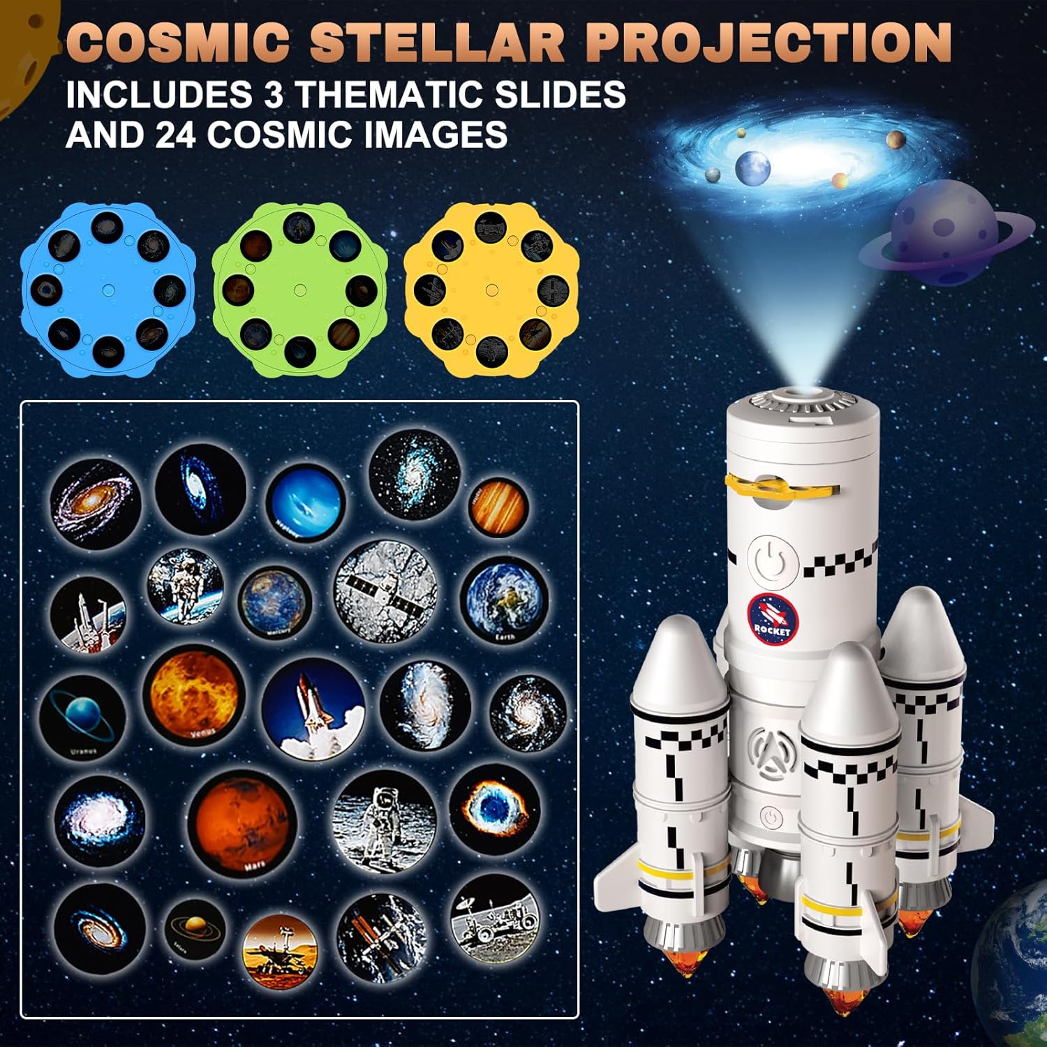 🚀 【Giocattolo di Razzo Spaziale】 Questo set di giocattoli per il lancio di razzi è una missione spaziale completa per i bambini! Con 4 astronauti flessibili, un'astronave 5-in-1, un razzo in schiuma, un centro di lancio, un lanciatore di razzi, una console, un satellite e un booster, tutto può essere montato e smontato. I bambini possono comandare gli astronauti, utilizzare la console, ruotare il corridoio, manovrare il razzo per il countdown di lancio e far salire gli astronauti nell'astronave per simulare il controllo dell'astronave da parte degli astronauti. 🚀 【Simula il Lancio Dei Razzi】 Con questo giocattolo realistico per il lancio dei razzi, i bambini possono simulare un vero lancio di razzi. Possono controllare il razzo dalla console, inserire 3 batterie AAA nella prima fase, aggiungere un po' di acqua e premere l'interruttore per avviare il countdown. Il gioco di razzi emette suoni, luci e fumo offrendo un'esperienza realistica come un vero lancio di razzi. (*Batterie non incluse) 🚀 【Funzione di Proiezione Super Cool】 Questo fantastico giocattolo per razzi spaziali ha anche un mini proiettore. Viene fornito con 3 diapositive a tema spaziale, galassia e pianeti, per un totale di 24 immagini cosmiche. I bambini possono montare la lente sul razzo secondario, inserire le diapositive e proiettare queste immagini sul tavolo, sulla parete del soggiorno, sul soffitto della stanza e così via, girando manualmente per vedere la prossima presentazione diapositive. In questo modo, il tuo bambino può imparare comodamente astronomia dal soggiorno, dalla camera da letto o dalla classe ed esplorare i segreti dell'universo! 🚀 【Incluso un Divertente Razzo di Schiuma】 Correre, saltare e decollare! Sperimenta questo gioco di razzi in modo diverso. I bambini possono facilmente posizionare il razzo in schiuma sul supporto, calpestare il sacchetto d'aria e far decollare il razzo: non sono necessarie batterie, perfetto per giocare all'aperto. L'angolo di lancio è regolabile, così i bambini possono far volare il razzo a diverse angolazioni, per farlo volare più alto o più lontano - un grande divertimento! I razzi sono realizzati in schiuma di alta qualità, senza alcun pericolo per il tuo bambino. 🚀 【Ideale Come Regalo per Bambini di 3, 4, 5, 6, 7, 8 Anni】 Questo razzo è un fantastico regalo per bambini interessati alla scienza, all'universo, alle navicelle spaziali, alle galassie, ecc.! È il regalo perfetto per i bambini di 3, 4, 5, 6, 7, 8 anni per compleanni, Natale, Ringraziamento, Pasqua e molto altro. Risveglia la curiosità, la creatività e il desiderio di scoprire di più sull'universo. Contattaci se hai domande su questo prodotto.