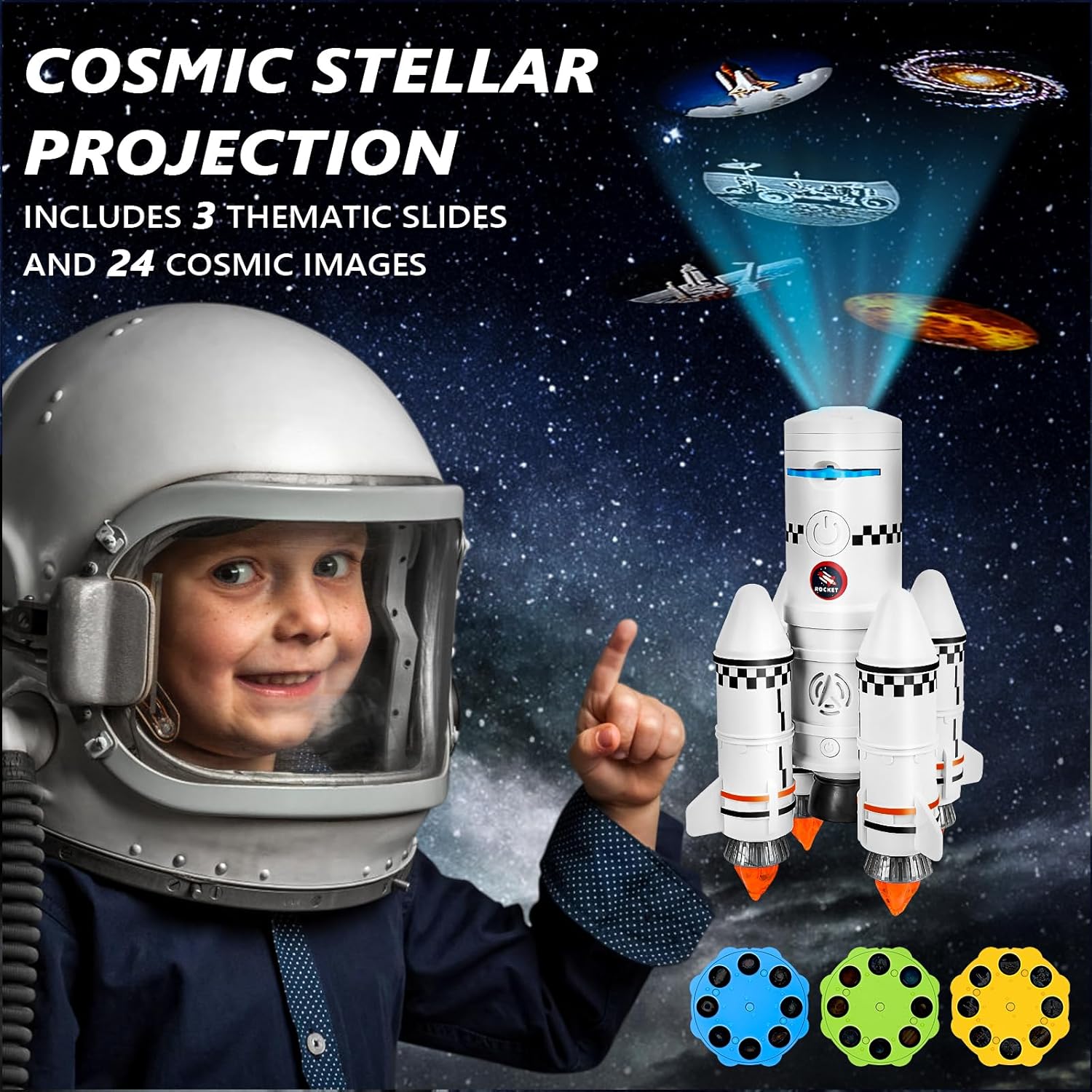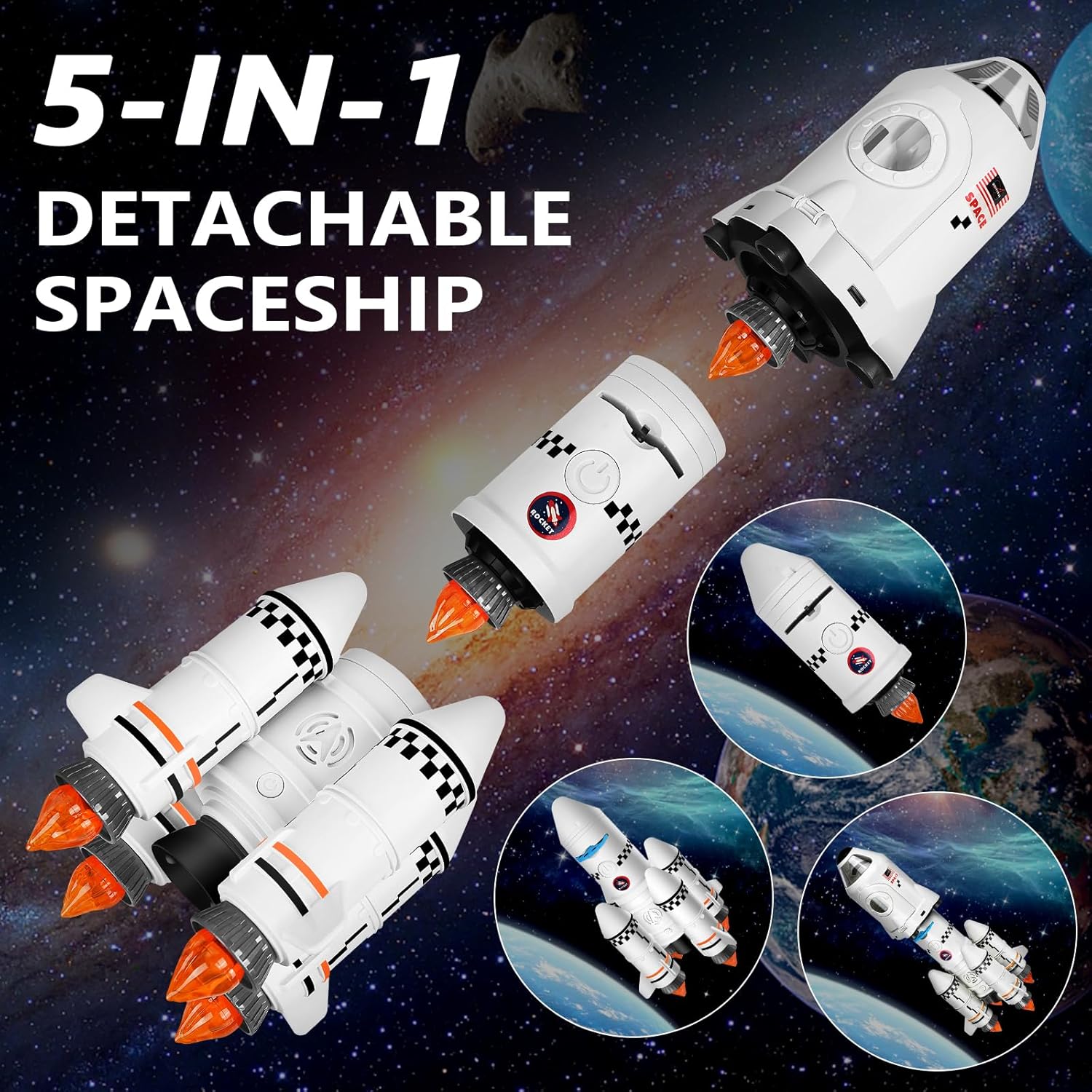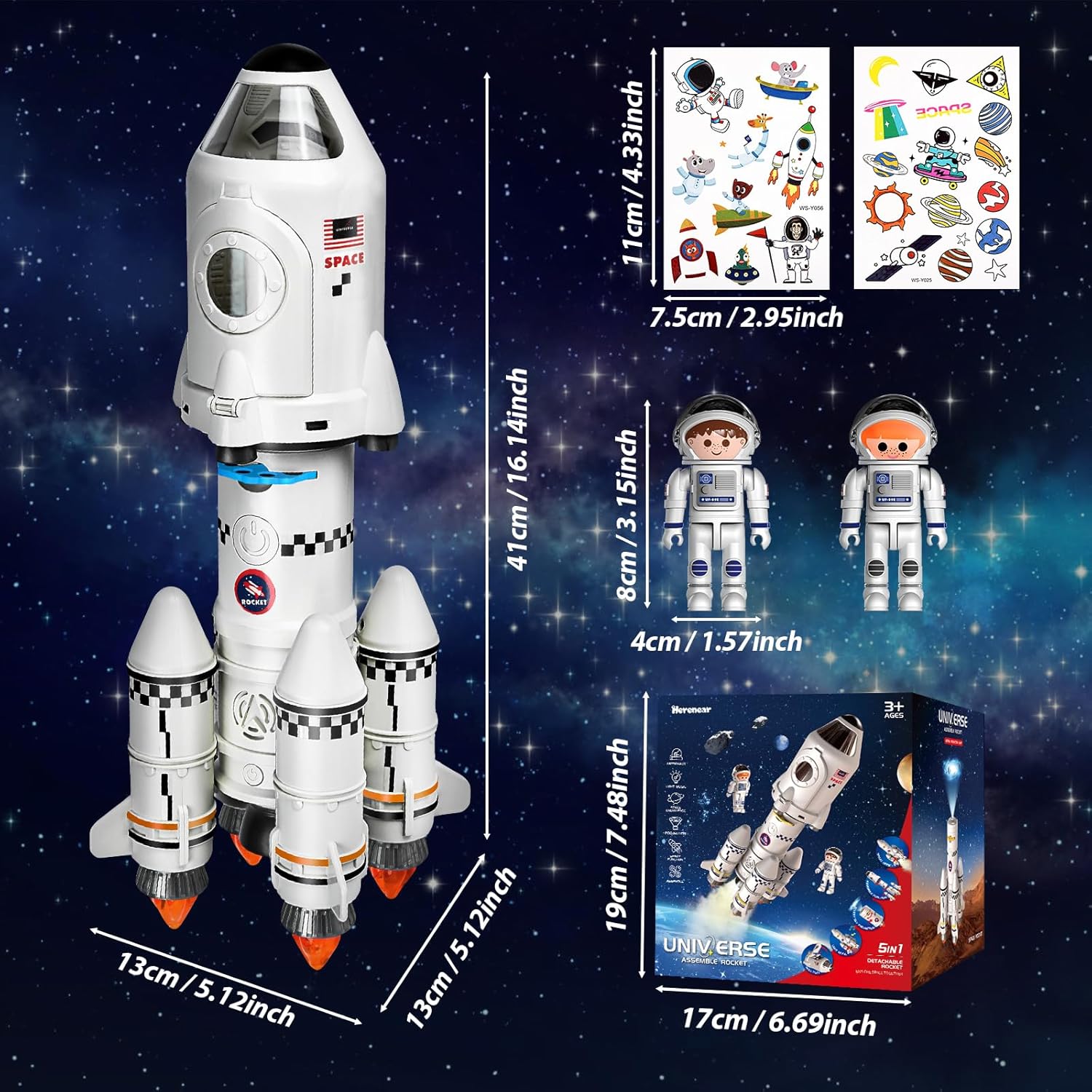 🚀Razzo staccabile: Il razzo ha due astronauti, una navicella spaziale, un razzo di primo stadio, un razzo di secondo stadio e quattro booster. Ogni cabina può essere utilizzata da sola o come parte di una navicella più grande. La navetta permette ai giovani avventurieri di esplorare la loro immaginazione e di vivere emozionanti avventure spaziali, rendendola perfetta per gli aspiranti piccoli scienziati che sognano di andare in missione nello spazio. 🚀Razzo con proiettore: Questo fantastico razzo non è solo un normale giocattolo, ma anche un piccolo proiettore che istruirà i vostri bambini sulle meraviglie dell'universo! Il nostro set di razzi contiene tre diapositive primarie a tema (spazio, galassia e pianeti), ciascuna con sei immagini straordinarie. Grazie a questo pratico e accattivante approccio allo scambio di conoscenze, i bambini potranno scoprire l'astronomia e svelare i misteri dell'universo. 🚀Simulatore di razzo: Questo giocattolo è un ottimo modo per stimolare e mantenere l'interesse per i razzi e i viaggi nello spazio. Con questo realistico razzo giocattolo, è possibile sperimentare un lancio di razzi realistico e accattivante. Dopo averlo acceso, si attiva un timer e il giocattolo genera suoni, luci ed effetti di fumo, facendovi sentire come se foste davvero presenti a un evento di lancio di un razzo. 🚀Sicurezza assicurata: Questa navetta spaziale è realizzata con materiali sicuri e di alta qualità, privi di BPA. Il suo design arrotondato e gli angoli lisci lo rendono adatto ai bambini e resistente, assicurando un divertimento duraturo per i bambini. Parti per un'avventura piena di stelle con il tuo bambino utilizzando questo razzo robusto e a prova di caduta. Descrizione del prodotto: Se avete domande su questo prodotto, non esitate a contattarci. 🚀Un regalo divertente e unico: questo razzo giocattolo permette ai bambini di viaggiare nello spazio e di realizzare fantasie fantascientifiche. I bambini possono esplorare le galassie e vivere fantasiose avventure spaziali con lo Space Shuttle giocattolo. Il razzo è adatto a bambini di età compresa tra i 3 e i 10 anni ed è un ottimo regalo per occasioni come compleanni, Natale, Ringraziamento o Pasqua.