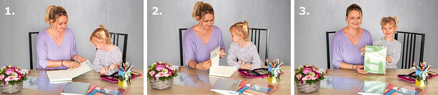 Copertina per libri trasparente in pellicola di polipropilene ecologica (PP), senza PVC. Contenuto della confezione: 10 copertine per libri HERMA trasparenti con etichetta per il nome, grandi (310 x 540 mm) - incolore/trasparente. Grazie alla seconda linguetta i libri possono essere rilegati rapidamente e facilmente, senza plastificanti.