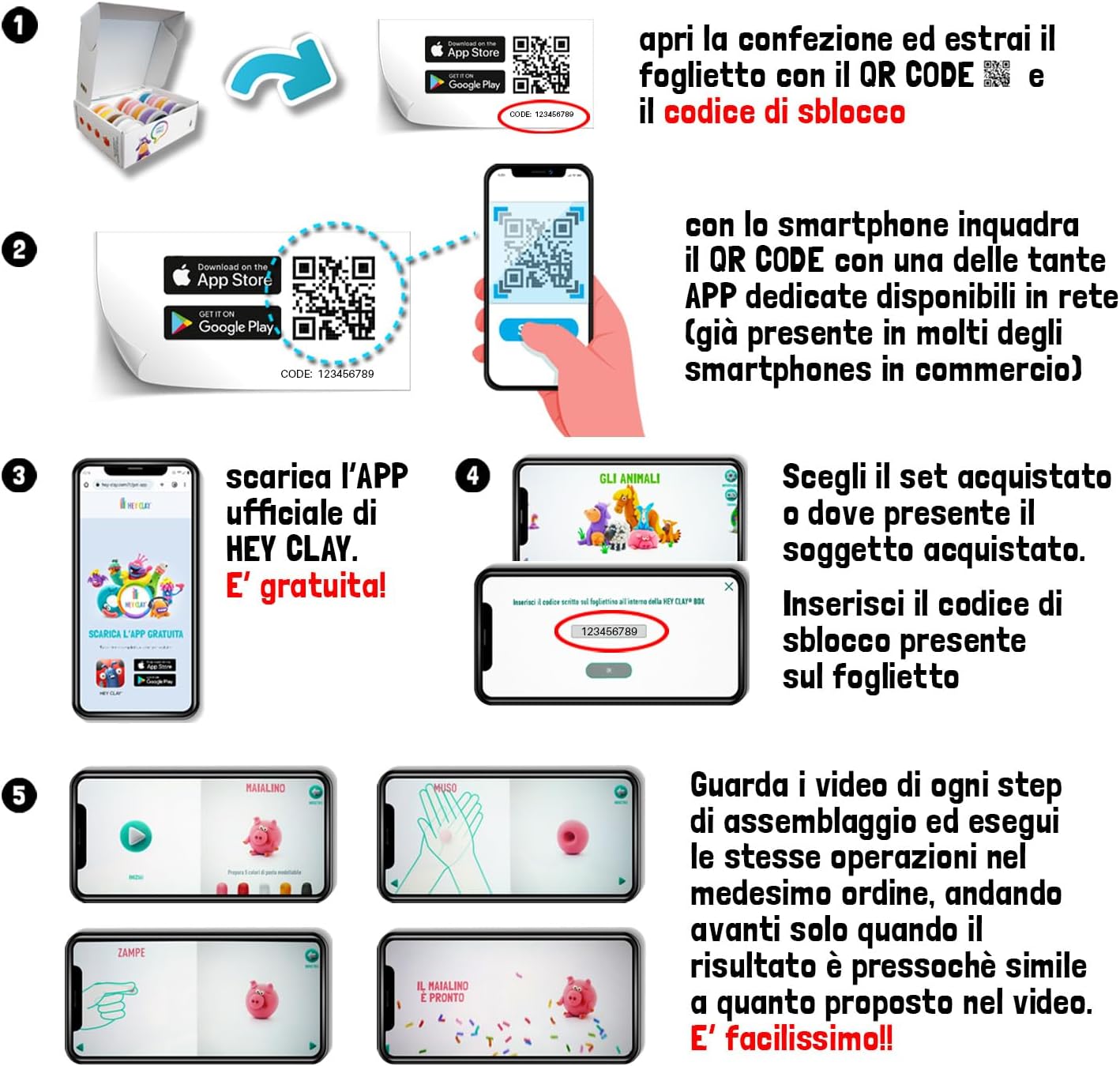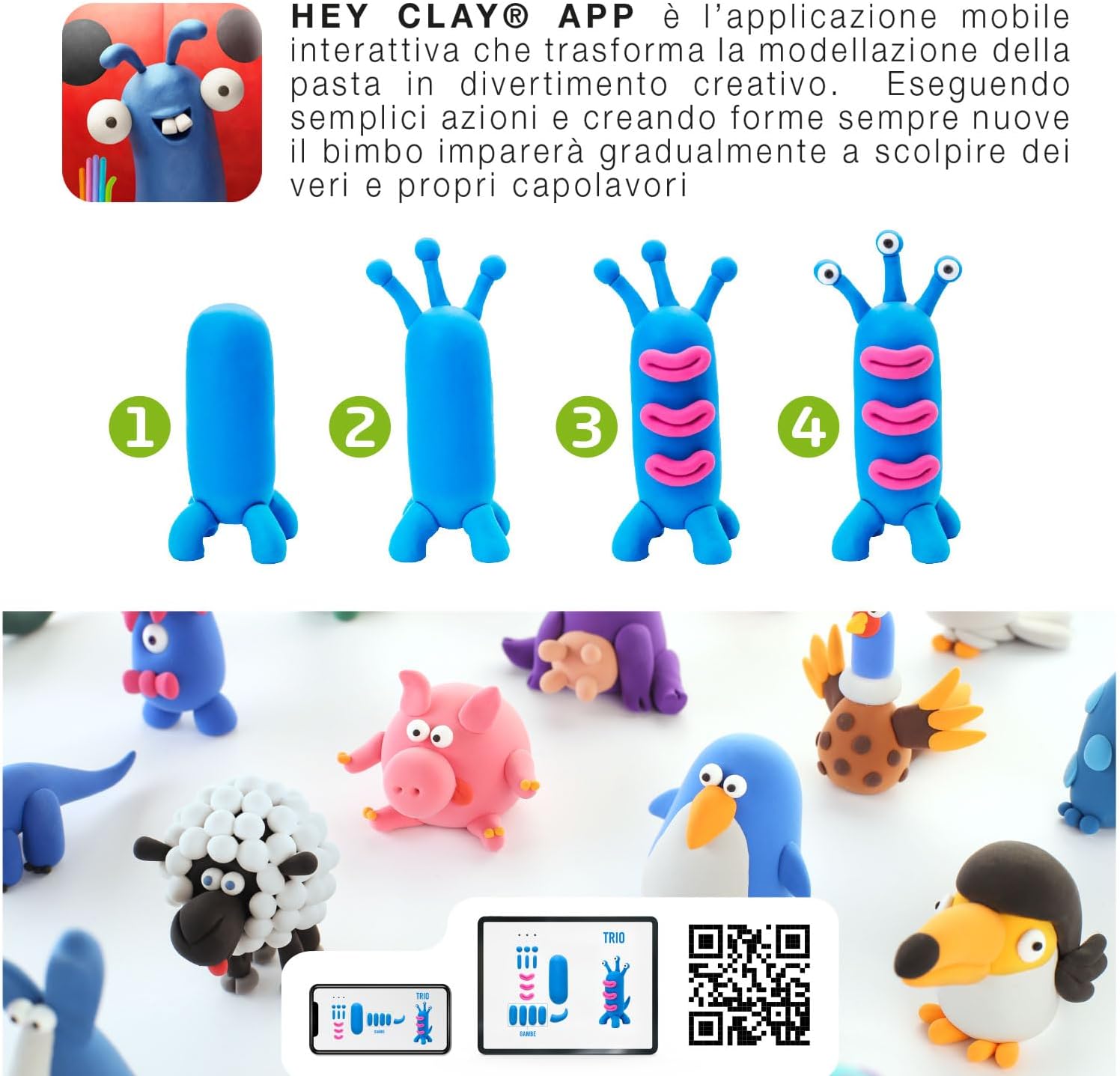 NUOVA FRONTIERA: Hey Clay rappresenta la nuova frontiera della plastilina colorata da modellazione. Un polimero di ultima generazione leggero, morbido, duttile e piacevole al tatto, che permette di trasmettere con precisione la personalità dei personaggi scolpiti. 18 COLORI BRILLANTI: l'argilla Hey Clay è disponibile in 18 colorazioni base. Divertiti a mescolarle fra loro per creare uno spettro di colori praticamente infinito! COME FUNZIONA: la pasta modellabile bambini si attiva scaldandola e lavorandola con le mani. Si solidifica stando all'aria in 20 minuti. Completamente asciutta in 24 ore. La figura non si scioglierà, mantenendo la forma data. Adatto dai 3 anni in su. SICURA: la pasta modellabile Hey Clay è atossica e creata nel totale rispetto dei rigidi standard Comunitari. Non si attacca alle mani o agli oggetti. Ciascun colore viene spedito in un apposito contenitore dedicato che ne preserva la durata per molteplici usi. LIBERA LA FANTASIA: questa plastilina bambini di nuova generazione permetterà di scatenare la fantasia dei vostri bambini per dare vita a migliaia di personaggi! E se non basta... HEY CLAY APP: è l'applicazione mobile interattiva che trasforma la modellazione della pasta in divertimento creativo. Ricca di tutorial passo passo per aiutare i bambini a scolpire dei veri e propri capolavori!