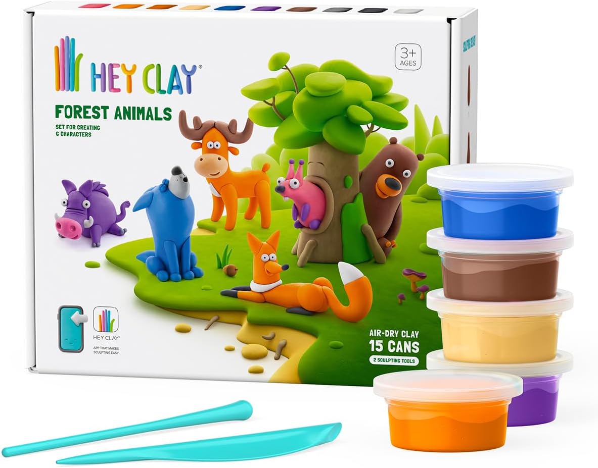 Il set Hey Clay include 15 contenitori morbidi e delicati due strumenti per facilitare la modellazione e un codice di accesso all'app per la serie di personaggi acquistata.