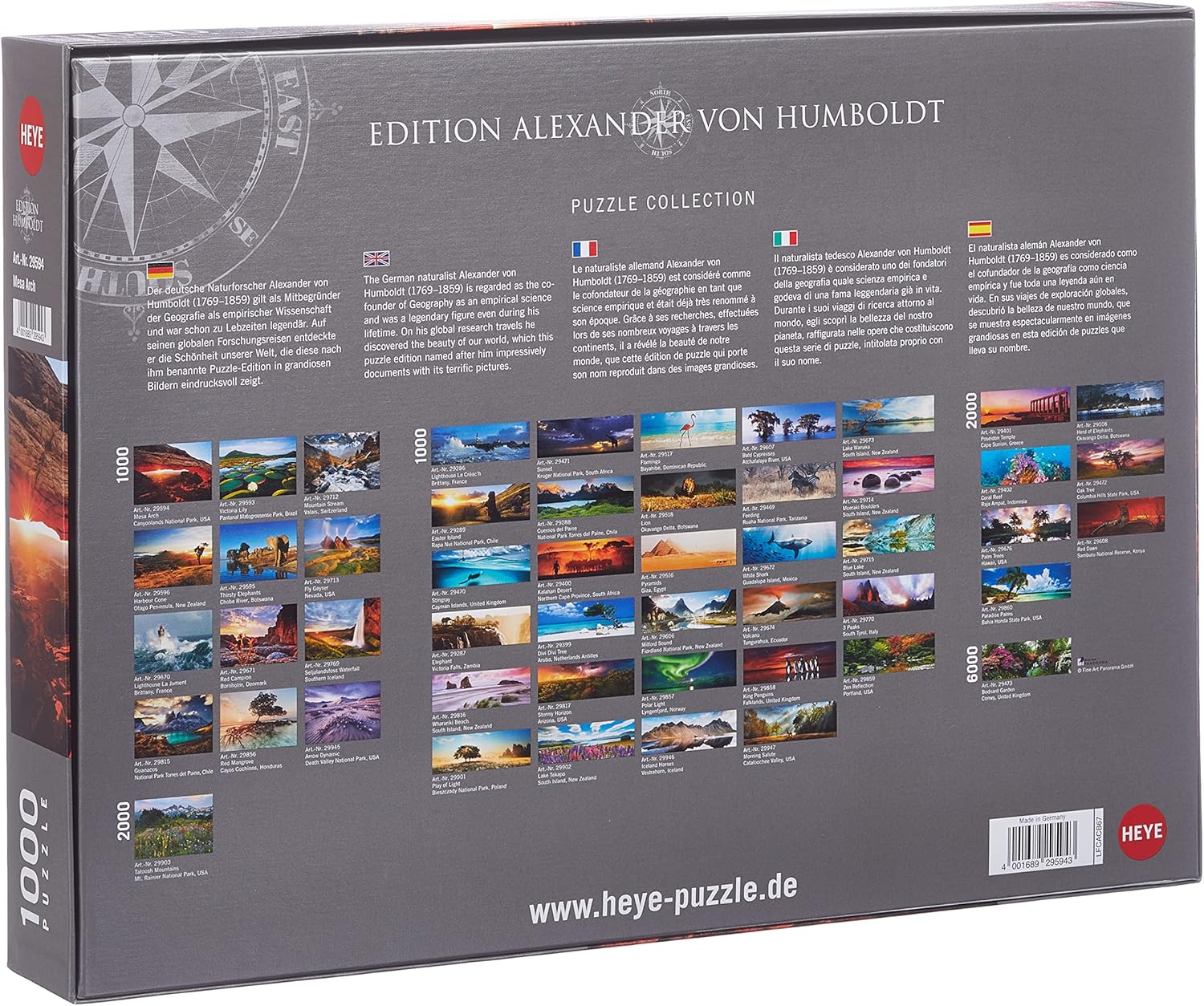 Descrizione prodotto: Puzzle HEYE - 1000 pezzi Dimensioni puzzle: 50 x 70 cm Età minima: 10 anni