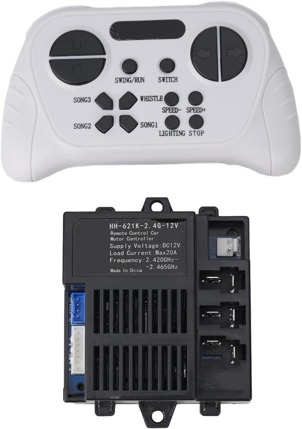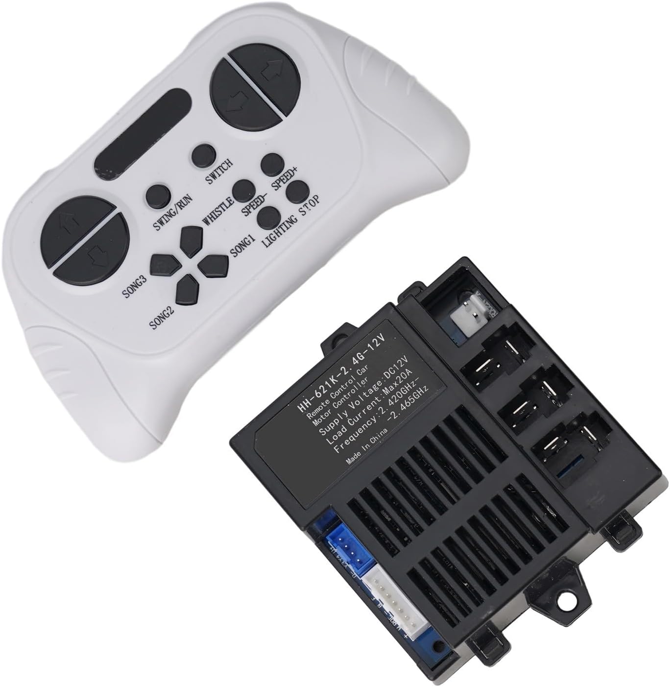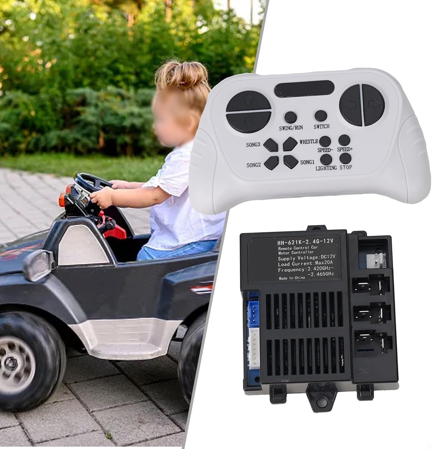 Affidabile: la scatola di controllo HH-621K-4G-12V per auto elettriche è realizzata con materiali, la sua durata e affidabilità. Telecomando 4G: dotata di un telecomando da 2,4 G, questa scatola di controllo consente un funzionamento facile e comodo delle auto elettriche per bambini. Semplice processo di connessione: premendo e tenendo premuti i pulsanti avanti e indietro contemporaneamente, la spia lampeggia, indicando un collegamento corretto con l'auto. Compatibilità: per compatibilità, confrontare l'aspetto della scatola di controllo dell'auto elettrica danneggiata con la scatola di controllo HH-621K-4G-12V. Se sembrano uguali, dovrebbe essere adatto. In alternativa, è possibile controllare l'etichetta sul ricevitore per i requisiti di modifica. 【Opzioni multiple】A seconda delle esigenze, è possibile scegliere tra tre diverse opzioni: 1 ricevitore, 1 telecomando o una combinazione di 1 ricevitore e 1 telecomando.