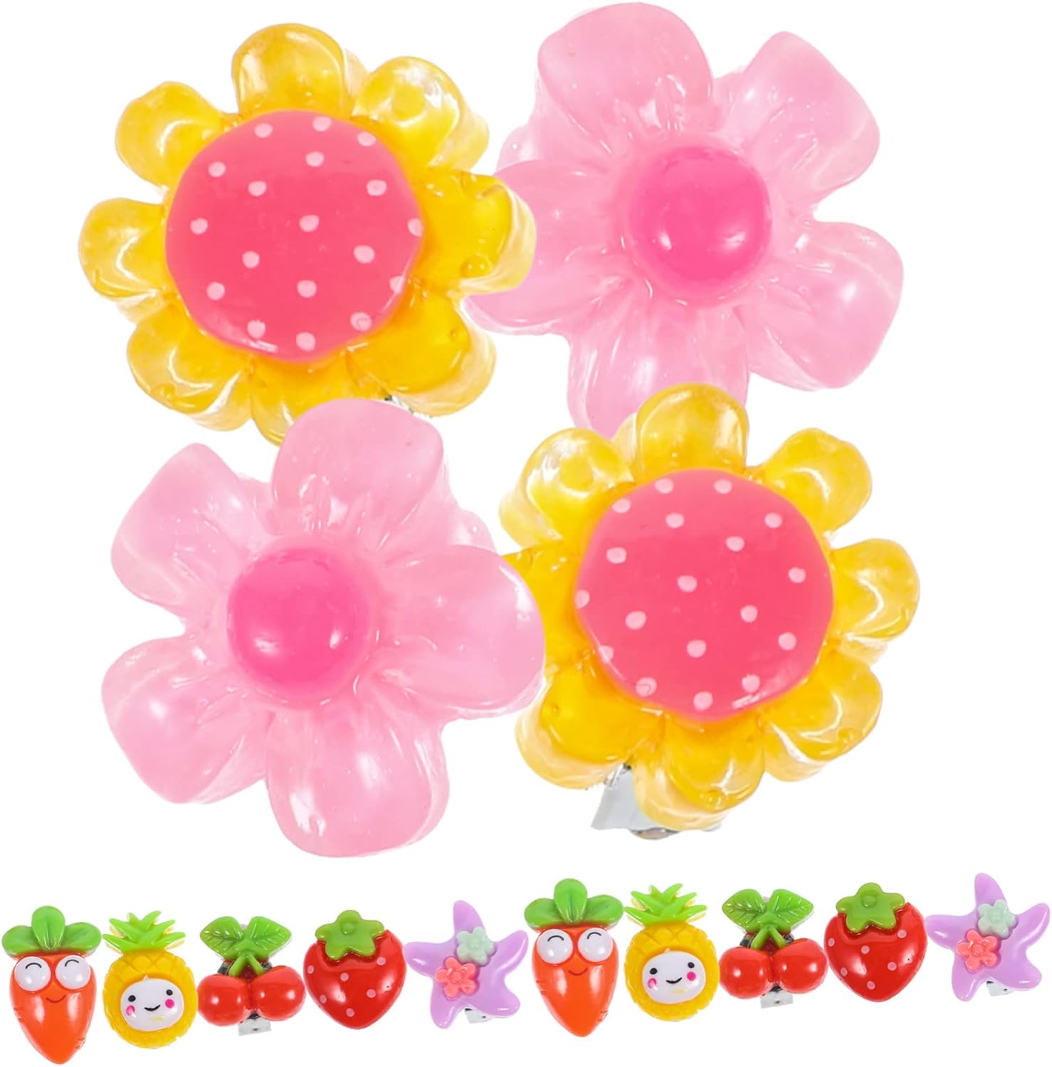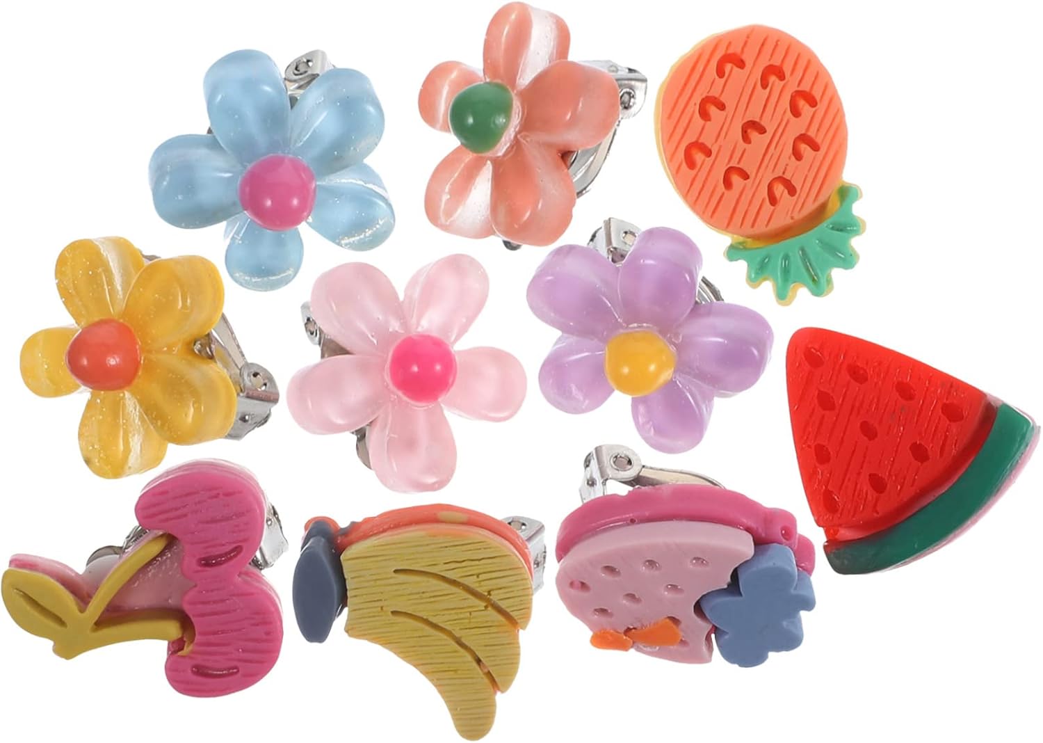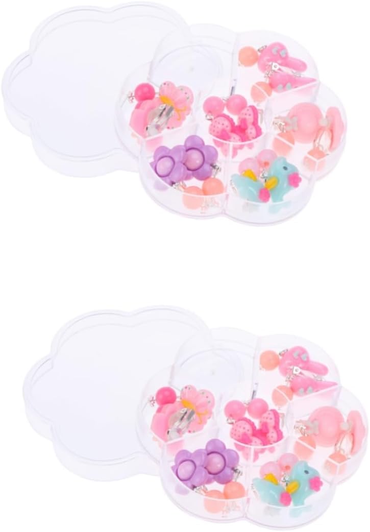 Set molto carino. Gli orecchini non sono molto grandi ma per bambine misura perfetta. Disegni e colori accattivanti. Sono comprese anche le protezioni in plastica morbida trasparente per i lobi.