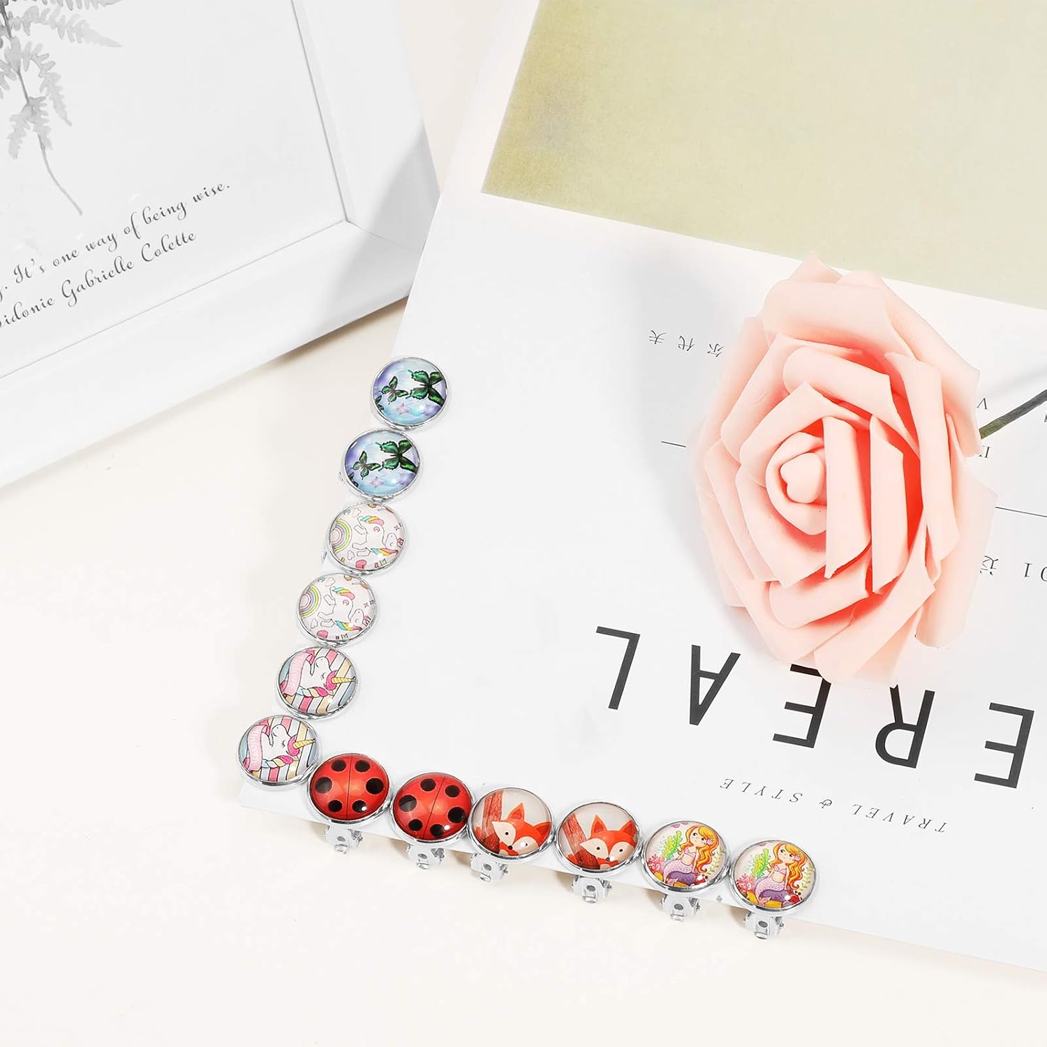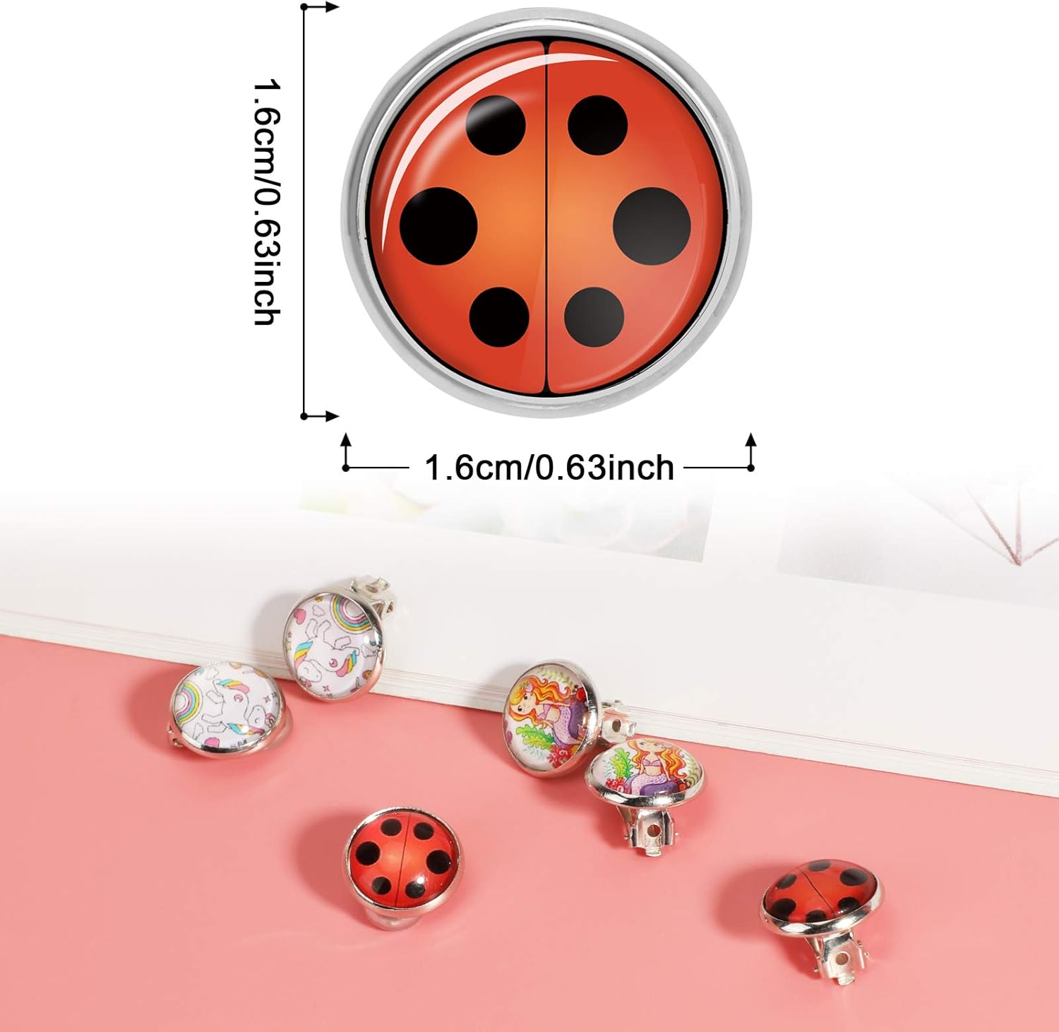 Ho comprato questi orecchini in quanto le mie bimbe giocano ad essere Ladybug,ma sono tutti e sei veramente carini,hanno il comodo accessorio in gomma da mettere nella clip posteriore per non stringere troppo e fare arrossare il lobo delle orecchie! Perfetti quindi!