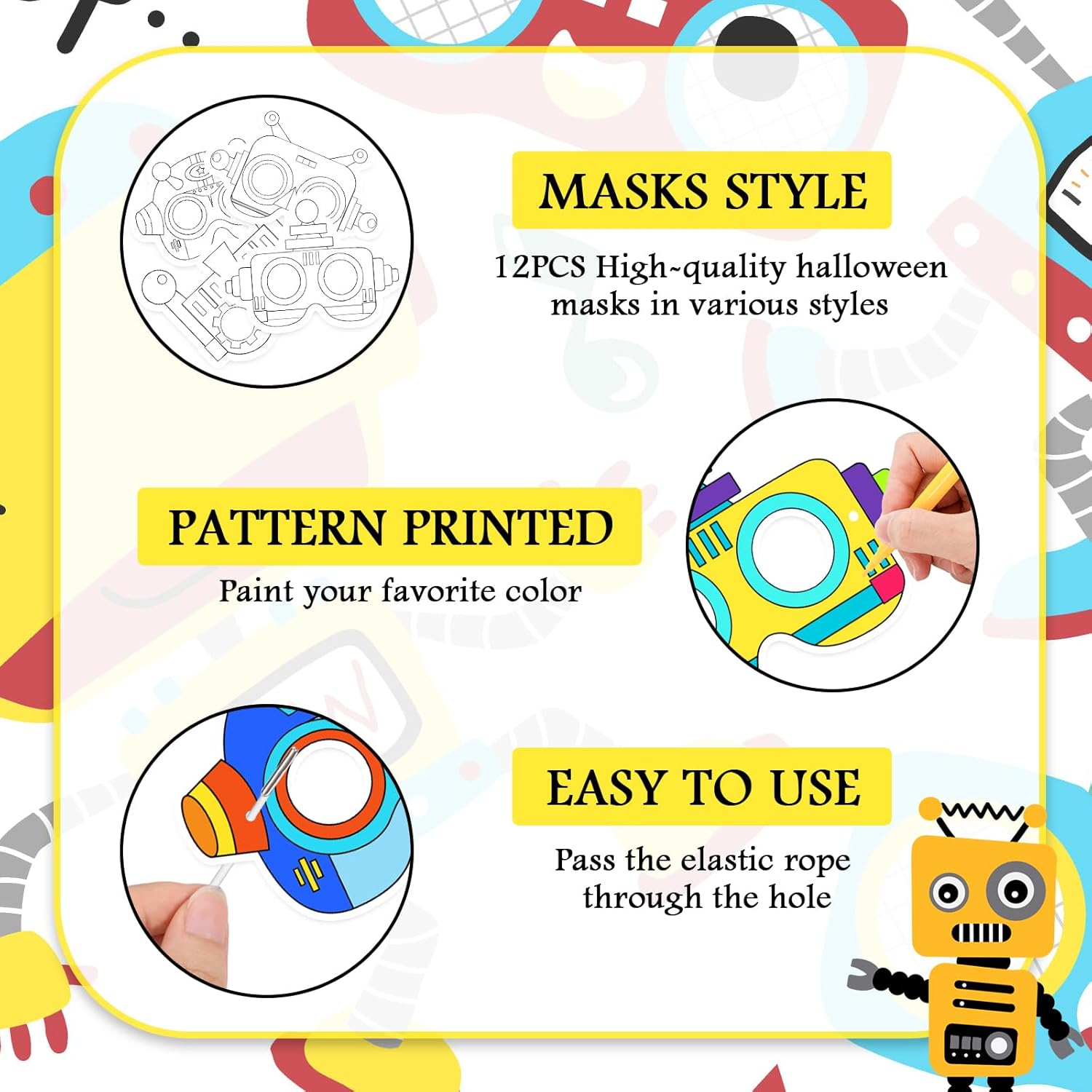 Diversi modelli: Riceverai 12 diverse maschere robot in un'ampia varietà di stili. La maschera robot presenta motivi molto carini e accattivanti. I vari modelli permettono ai bambini di dare libero sfogo alla loro immaginazione. Materiale della maschera: Il materiale della maschera vuota è carta di alta qualità, sicura e facile da disegnare. La superficie liscia della carta è perfetta per scarabocchi con acquerelli e le linee nette sulla maschera permettono ai bambini di dipingere meglio. Le maschere robot di Halloween sono adatte a bambini dai 3 anni in su. Maschere decorative per feste per bambini: La maschera robot in cartoncino bianco permette ai bambini di usare la loro immaginazione per dipingere e creare maschere fai da te con penne, acquerelli, adesivi, paillettes e altro ancora. Un elastico viene fatto passare attraverso la maschera finita e annodato, quindi il bambino può indossare la maschera. Ampie applicazioni: La carta per lavoretti robot per bambini è perfetta per feste di Natale, maschere in maschera, feste di compleanno e cosplay. Non solo permette ai bambini di giocare insieme con le maschere, ma migliora anche la loro destrezza e la coordinazione occhio-mano. La confezione include: 12 diverse maschere bianche fai da te a forma di robot per bambini, 12 elastici, la quantità è sufficiente per soddisfare le diverse esigenze di utilizzo. Puoi anche condividerlo con familiari, amici e compagni di classe. Crea il tuo kit di maschere per il viso.
