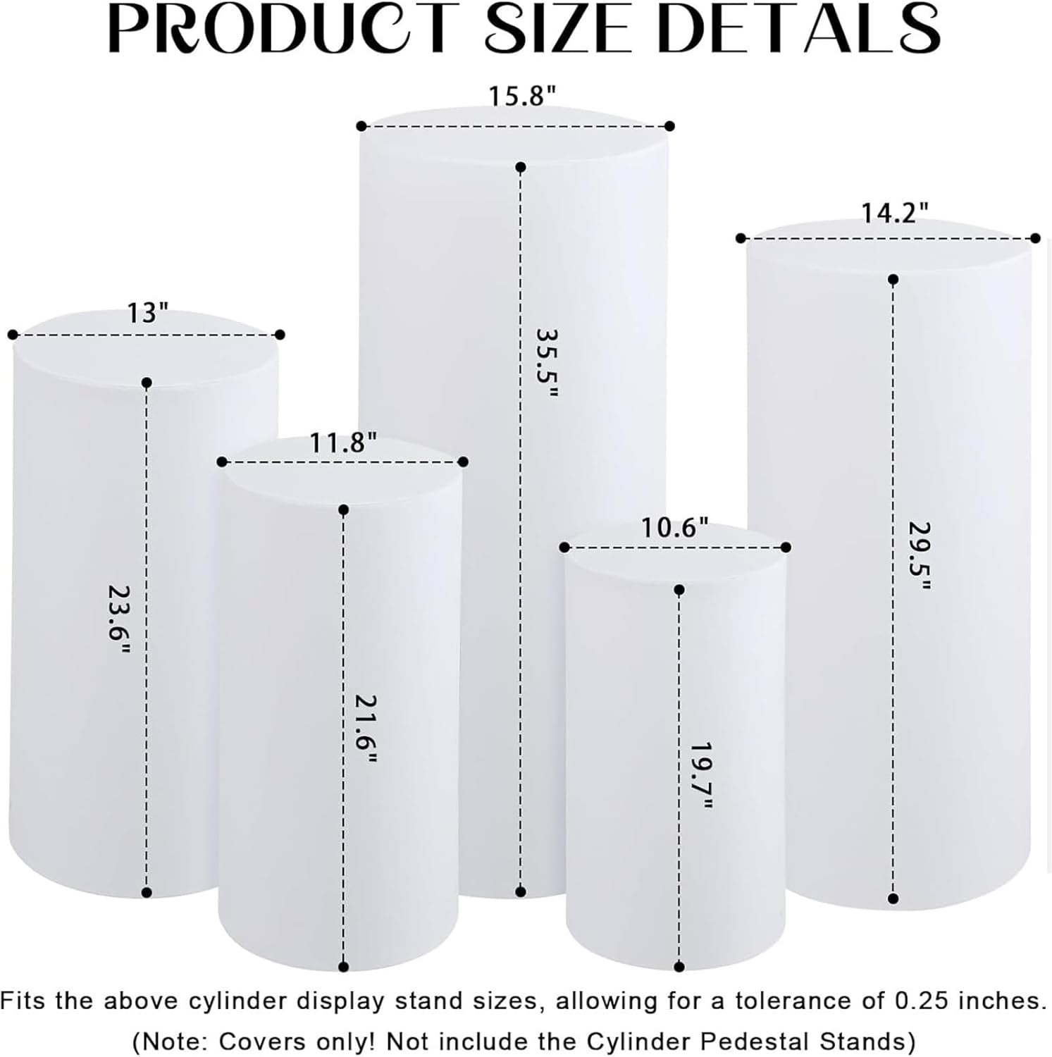 🎂Materiale per resistenza ed eleganza: ogni copertura dell'alzatina cilindrica è realizzata in materiale spandex di alta qualità, con proprietà antirughe, consistenza morbida, eccellente elasticità e struttura leggera per resistenza e facilità di conservazione; Le coperture migliorano senza sforzo l'aspetto del tuo stand, rendendole ideali per qualsiasi decorazione di sfondo per feste o matrimoni, e sono facili da installare. 🎂Coperchi del cilindro con chiusura elastica: i coperchi del piedistallo del cilindro con chiusura elastica offrono una vestibilità aderente e sicura, facile da installare. Questa chiusura elastica assicura che le coperture rimangano al loro posto e non scivolino o cadano. 🎂Copertura del piedistallo in spandex: sono progettate per proteggere il nostro piedistallo in metallo per cambiare facilmente l'aspetto del tuo piedistallo e coordinarlo con qualsiasi sfondo ed evento. Queste coperture per cilindri in tessuto elasticizzato stampato a caldo sono anche un ottimo modo per coprire le imperfezioni delle staffe metalliche o cambiare facilmente il colore! Inoltre, la texture senza rughe garantisce ogni volta una finitura perfetta e croccante. 🎂Copri cilindro in spandex facili da pulire: creati appositamente per ridurre al minimo gli sforzi di manutenzione e pulizia, i nostri copri cilindro in spandex possono essere comodamente lavati a mano o in lavatrice con cura; Inoltre, non richiedono stiratura o trattamento con vapore, il che li rende ideali per l'uso e la conservazione frequenti. 🎂Ideale per vari eventi: la semplicità del design in tinta unita aggiunge un tocco di purezza alla tua occasione; La copertura del supporto a colonna è eccellente per matrimoni, addio al nubilato, baby shower, feste di compleanno e decorazioni da giardino.