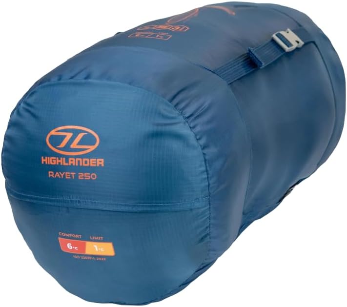 Il sacco a pelo a mummia Highlander Rayet 250 Deep Blue 1°C – Blue è un sacco a pelo che vi mantiene il più confortevole possibile durante una notte fredda in natura. Il robusto guscio esterno è riempito con un isolamento sintetico che trattiene il calore. La forma a mummia garantisce il massimo isolamento e comfort. Il Rayet presenta una morbida fodera in peluche, un cappuccio termico e un'ampia area delle spalle per renderlo il più comodo possibile. L'imbottitura in fibra cava siliconata del sacco a pelo Rayet è stata appositamente progettata e testata per tenere al caldo anche nel periodo più freddo dell'anno. L'isolamento sintetico è una scelta ideale per il riempimento di sacchi a pelo. Le fibre trattengono bene il calore anche in condizioni umide, evitando così la condensa nella tenda. Il sacco a pelo è facile da piegare e riporre in un sacchetto compatto e riprende rapidamente la sua forma e il volume quando lo apri. Di seguito troverete i dati tecnici del sacco a pelo a mummia Highlander Rayet 250: rivestimento esterno in poliestere 210T Ripstop (impermeabile), fodera interna in pongee 190T, imbottitura in 250 g/m² monostrato, 40% fibra cava siliconata, 60% poliestere, cappuccio termico con coulisse, cerniera a due vie, tasca interna di sicurezza, tasca di compressione con passanti per appenderlo. sonno mummia Sacco a pelo da 1450 grammi testato e misurato indipendentemente secondo la norma EN ISO 23537-1:2022. Dimensioni: 220 x 80 x 50 cm. Dimensioni imballato: 38 x 19 x 19 cm. Limite inferiore: 1 °C. Temperatura di benessere: 6 °C. Sacco a pelo a 2 stagioni. Il sacco a pelo a mummia è un sacco a pelo sintetico che può essere utilizzato notti più fredde mantiene piacevolmente al caldo in tutte le avventure. Temperatura minima: 1° C/temperatura comfort: 6 °C. Di seguito troverete una spiegazione di queste temperature: estremamente testata: questo valore rappresenta il limite massimo di temperatura inferiore in cui è garantita la sopravvivenza nel sacco a pelo. nel sacco a pelo, soprattutto a temperature molto basse. Estremamente questo è quando si dipende da una forte sensazione di freddo e quindi non possono aspettarsi un sufficiente comfort durante il sonno. Basso comfort: questo valore esprime il limite di temperatura alla quale non è più comodo dormire nel sacco a pelo. Cade il temperatura inferiore a questo limite, i vestiti e la posizione devono essere temperatura ambiente. Un utente esperto può anche scegliere un sacco a pelo in base a questa temperatura, ma questo dovrebbe essere un evento straordinario, non un pernottamento normale a temperature intorno al basso comfort. Elevato comfort: questo valore rappresenta il limite di temperatura ideale e confortevole. Consideralo cruciale per la scelta del sacco a pelo corretto. Se la temperatura scende da questo valore a Low Comfort o estremamente testata, dovresti aspettarsi una graduale diminuzione del comfort della temperatura nel sacco a pelo. Al contrario, temperature più elevate possono causare sudorazione e il sacco a pelo deve essere allentato per garantire una temperatura confortevole per un sonno tranquillo. Il sacco a pelo viene fornito con un sacco a compressione. L'altezza consigliata per questo sacco a pelo è di 200 cm.