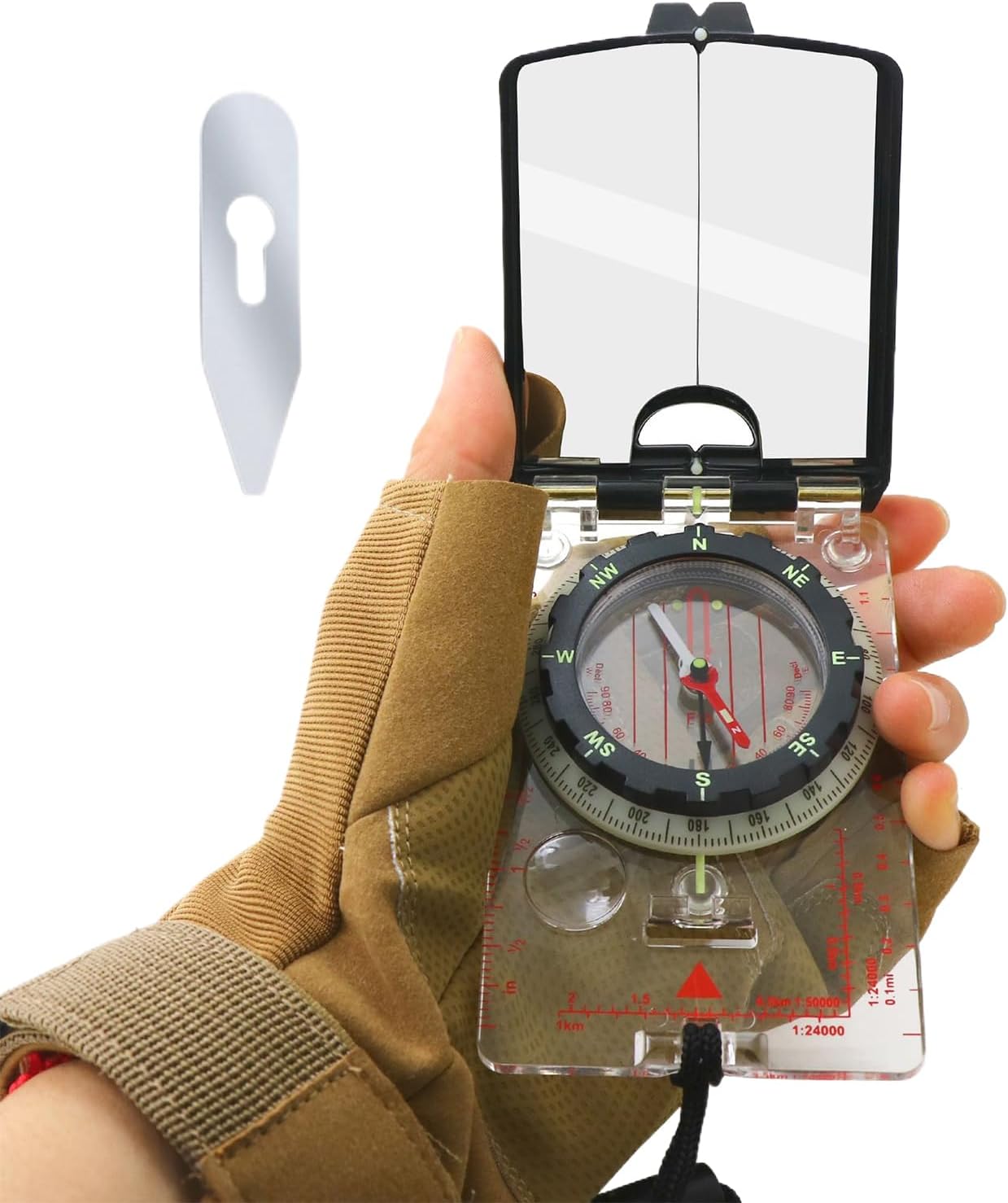 Luminous Features: This hiking compass is equipped with a luminous mirror, allowing for easy navigation in low-light conditions, making it an essential tool for nighttime adventures or early morning hikes Portable and Lightweight: Designed for outdoor enthusiasts, this compact compass is lightweight and easy to carry, ensuring you can take it with you on all your adventures, whether hiking, boating, fishing, or hunting Accurate Navigation: Featuring a precision and clear markings, this compass provides accurate readings, helping you find your way in unfamiliar terrain and ensuring you stay on the right path during your outdoor excursions Versatile Use: Ideal for a variety of outdoor activities, this navigation tool is perfect for hiking, backpacking, boating, fishing, and hunting, making it a versatile addition to your outdoor gear Heavy Duty Construction: Built to withstand the rigors of outdoor use, this compass is made from quality materials, ensuring it can handle the elements and provide reliable performance in any environment