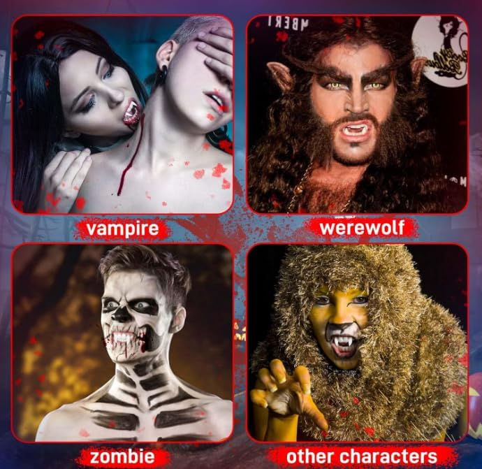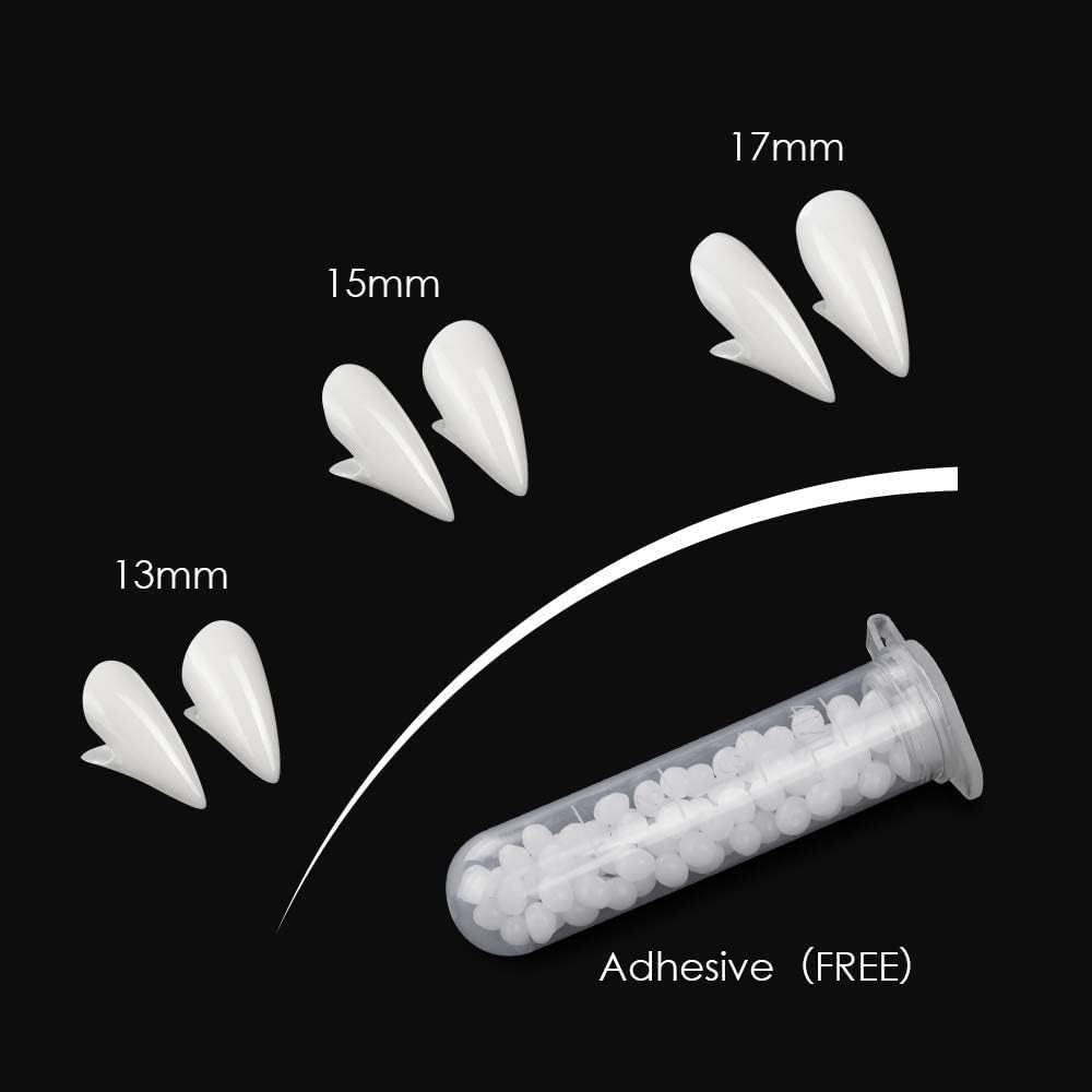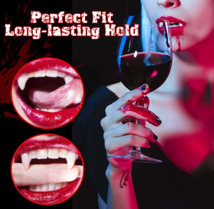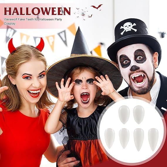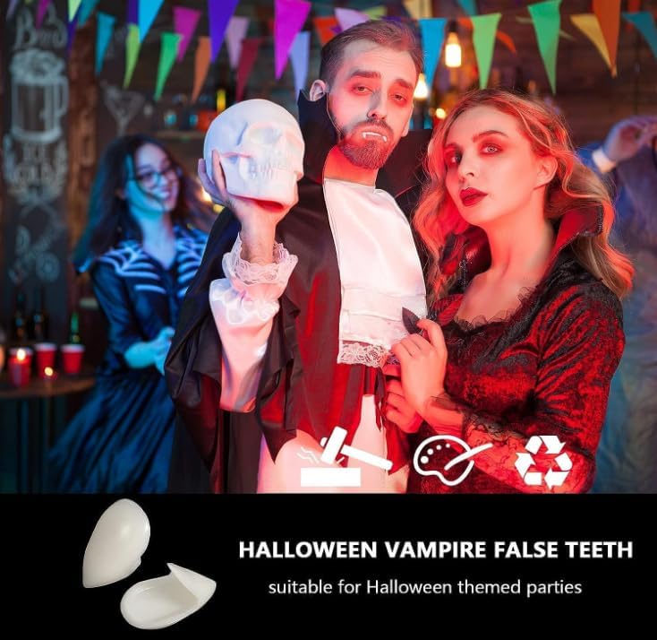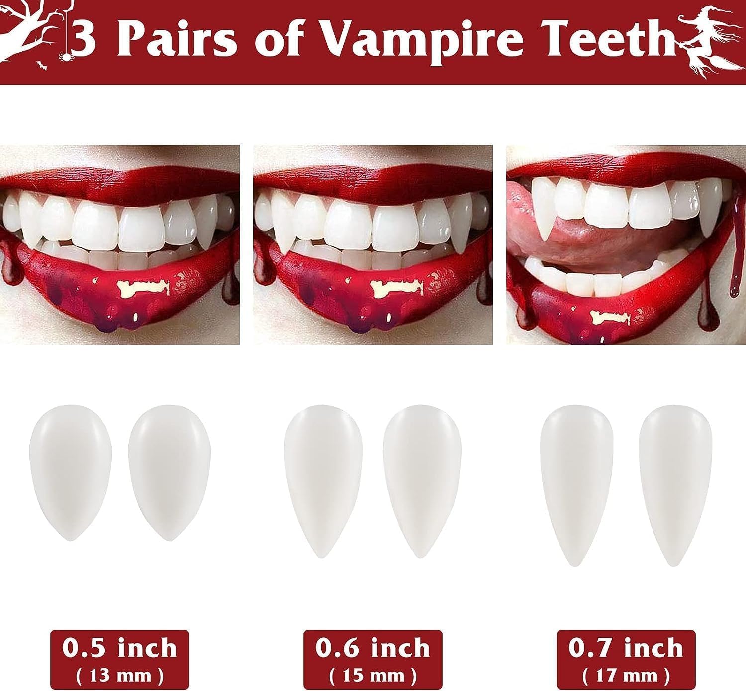 Ampiamente usati in cosplay e feste: questi denti da vampiro vivaci e unici possono essere perfettamente abbinati al tuo costume da vampiro, rendendo il tuo costume più realistico. Perfetto per feste cosplay vampiri, lupi mannari, zombi e accessori per costumi cosplay. Tre misure: 3 paia di protesi, 3 misure, 13 mm, 15 mm, 17 mm. Riceverai anche 1 sacchetto di adesivo solido per incollare i denti. Facile da usare: dopo aver ricevuto la protesi da vampiro, riscaldare le perline adesive da bianche a trasparenti con acqua calda, raccogliere e premere sui denti per creare uno stampo, quindi estrarre la protesi adatta e premere sull'adesivo per 20 secondi. 【Comodo da indossare】: le nostre protesi sono realizzate in resina ecologica di alta qualità, atossica e sicura e molto comoda da indossare. Difficilmente sentirai la presenza di queste zanne da vampiro e indossarle non influenzerà affatto la tua comunicazione con i tuoi amici. Facile da trasportare: le nostre zanne da vampiro sono perfette per bambini e adulti, ideali per qualsiasi concerto cosplay. Che si tratti di una festa di vampiri, giochi di ruolo o costumi da vampiro che necessitano di denti affilati, da vampiri e lupi mannari agli zombi, queste zanne versatili amplificano il tuo look di Halloween o cosplay. Sono ideali per tutti, indipendentemente dall'età o dal sesso.