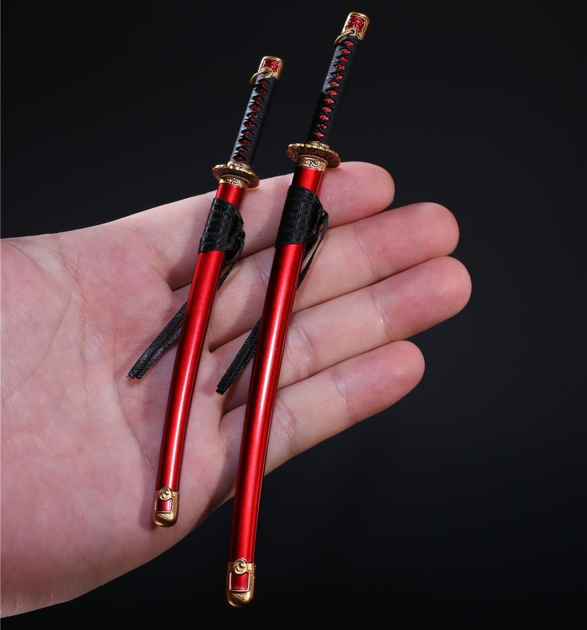 Collezionisti, non un giocattolo. Raccomandato per età 15 & up. È progettato come miniatura per l'uso con figure in miniatura. Scala: 1/6. Il prodotto include: lega Blade X2, lega knife pool X2, Pure copper cut feather X4, ABS handle X2, ABS scabbard X2, Tool holder X1. Wakizashi modello Only. Nota: The figure body, head sculpt, and other accessories are NOT INCLUDED.