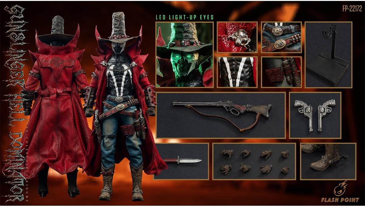 SCALE FIGURE - Flashpoint Studio Spawn Cowboy series 1:6 Scale Action Figure Collectible Full Set. Poseable with premium detailing. Parametri del prodotto: scala del prodotto: 1/6. Dimensioni del prodotto: 7 x 10 x 16 cm (lunghezza x larghezza x altezza). Dimensioni della confezione: 25 x 20 x 8 cm (lunghezza x larghezza x altezza). Peso della confezione: 600 g. Materiale: PVC ABS. Content del prodotto: busto (con giunti), 1 testa, 1 paio di leggings, 1 pagliaccio, 1 paio di jeans, 2 cintura in vita, 1 paio di braccia, 1 paio di armi a braccio sinistro, 1 armatura destra, 2 fondina per pistola, 1 paio di stivali da cowboy x 2, 2 pistole (metallo) x 2, Long Hunting Righe (metallo) 1, Dager (metallo) x1, 8 mani, 1 cappello, 2 fasce per braccio, 1 supporto. Artigianato di qualità: ogni personaggio è meticolosamente artigianato, porta la vita nella tua collezione. Realizzato con attenzione ai dettagli e ai materiali di qualità. Make a Great Gift – Questa Action Figurine rende il regalo perfetto per il compleanno o la festa per te, la famiglia, gli amici, gli appassionati di figure e i collezionisti. Consigliato per età 15 e oltre, non è un giocattolo per bambini.