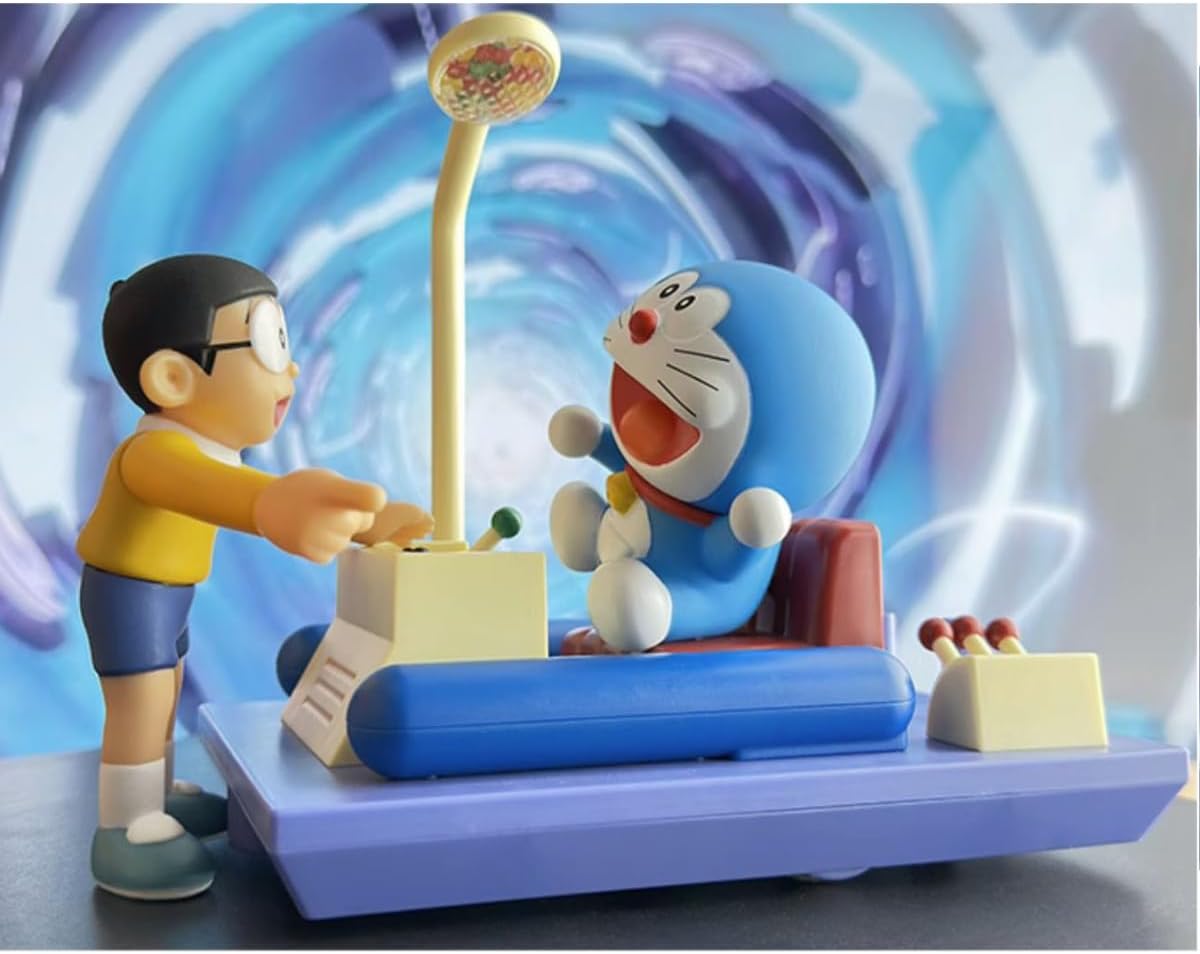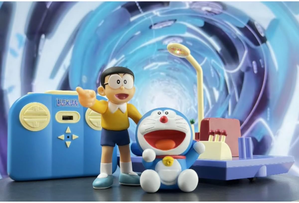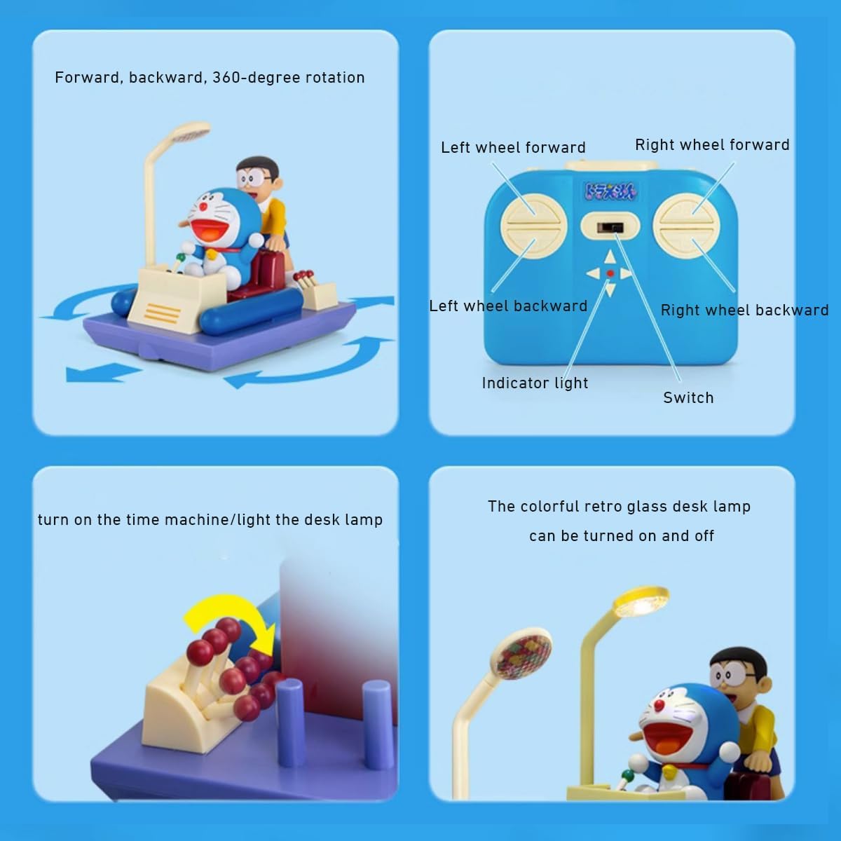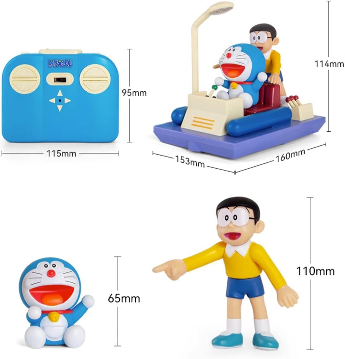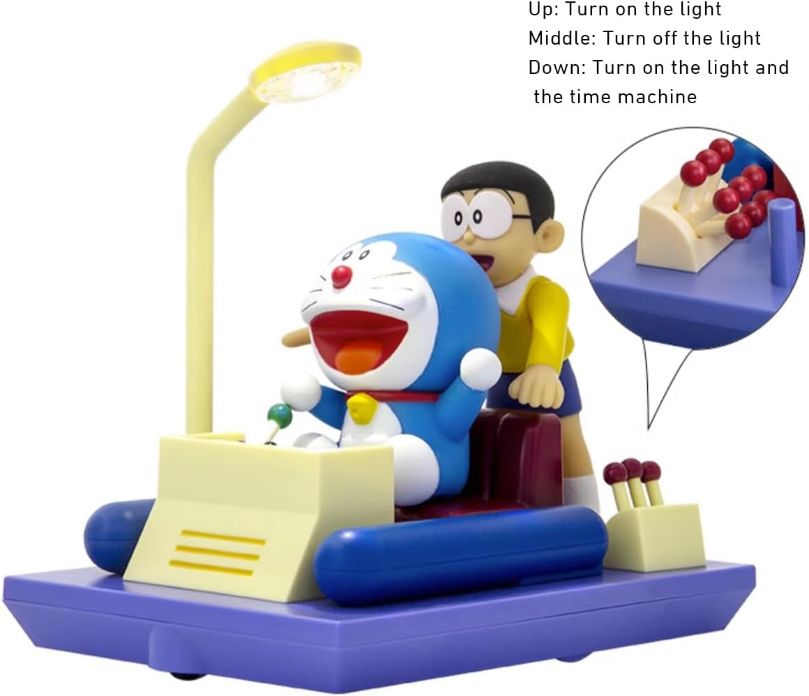 Design del personaggio: figure pose classiche e gesti delle figure Doraemon e Nobita. Le mani di Nobita: possono essere regolate liberamente per diversi gesti. Gamma di movimento articolare: movimento macchina del tempo Testa di Doraemon: può ruotare di 360°. La testa di Doraemon può ruotare di 360°. Bastone di controllo mobile con tre impostazioni: Su: accendere le luci, centrale: spegnere le luci, giù: accendere le luci e la macchina del tempo. Design speciale: figure staccabili: le figure Nobita e Doraemon possono essere giocate separatamente. Bastone di controllo mobile con tre impostazioni: Su: accendere le luci, centrale: spegnere le luci, giù: accendere le luci e la macchina del tempo. Lampada in vetro multicolore vintage Può essere accesa e spenta. Contenuto del prodotto: 1 Time Machine, 1 telecomando, 1 figura Nobita, 1 figura Doraemon, 1 manuale di istruzioni (lingua italiana non garantita). Dimensioni: Time Machine: 153160114 mm, telecomando: 115 x 95 mm, altezza della figura Nobita: 110 mm, altezza della figura Doraemon: 65 mm, scatola di colori: 253 x 155 x 185 mm. Tempo di funzionamento: circa 60 minuti; velocità: circa 0,6 km/h; portata del telecomando: entro 5 metri. Requisiti della batteria: Time Machine: 3 batterie AAA, Telecomando: 2 batterie AAA.