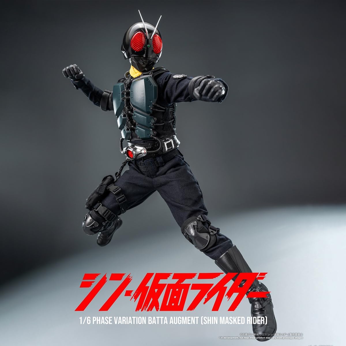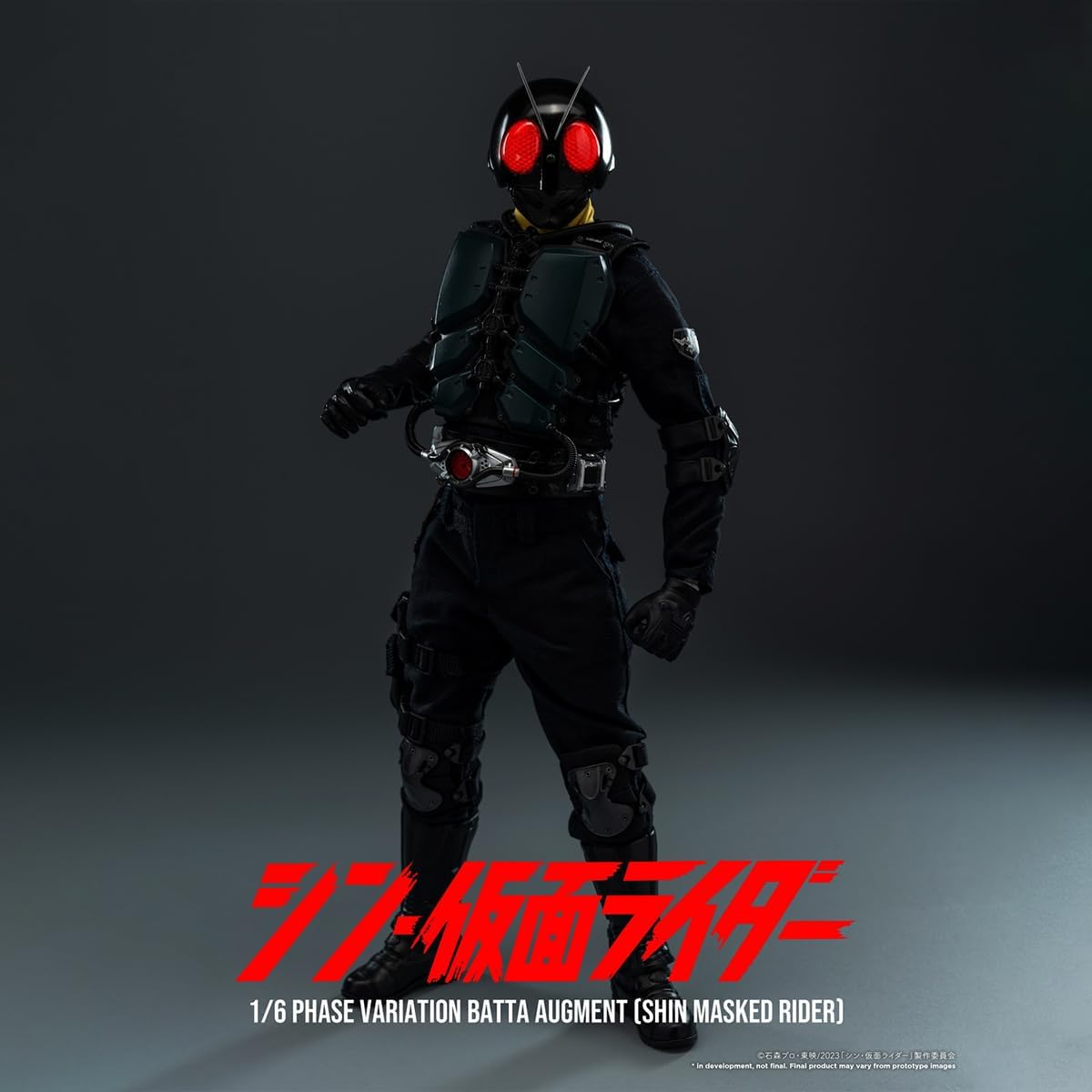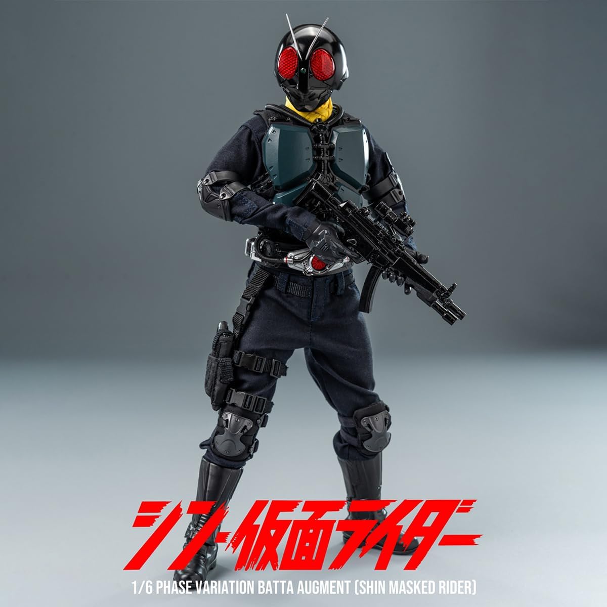 FIRST APPEARANCE -- From the movie "SHIN MASKED RIDER", 1/6 Phase Variation Batta Augment (SHIN MASKED RIDER), capturing the appearance as seen in the 2023 movie through its highly detailed helmet sculpt and Rider Belt, and tailor-made outfits. POSEABLE CHARACTER -- Stands approximately 11.7 inches (29.7cm) tall. It is a fully-articulated collectible figure with over 32 points of articulation. The collectible figure has a precise sculpted detailing including a weathering effect on the gloves and boots. SPECIAL FEATURES -- An LED light is installed inside the eyes located in the helmet for lighting effect. The jaw piece of the mask “Crusher” is articulated to be able to adjust length for mouth movement. It also features a fabric scarf which contain wire inside at the edges, making them poseable. ACCESSORIES INCLUDE -- Two pairs of interchangeable boots, where one pair is for better articulation with parts separated at the ankles, and another pair where each boot is made as a single piece for a seamless appearance. Additional accessories included five pairs of interchangeable hands and an iconic submachine gun to capturing the battle scenes with combat suit outfit embedded with elbow pads and knee pads and equipped a pistol with holster. PRODUCT DETAILS -- Product scale is approx. 1/6. Product height approx. 30 CM. Packaging size approx. 17×8×36 CM (L x W x H). Package weight is approximately 1.5 kilograms. Made of durable ABS, PVC, POM, and fabric. Recommended for ages 15 & up, not a children's toy.
