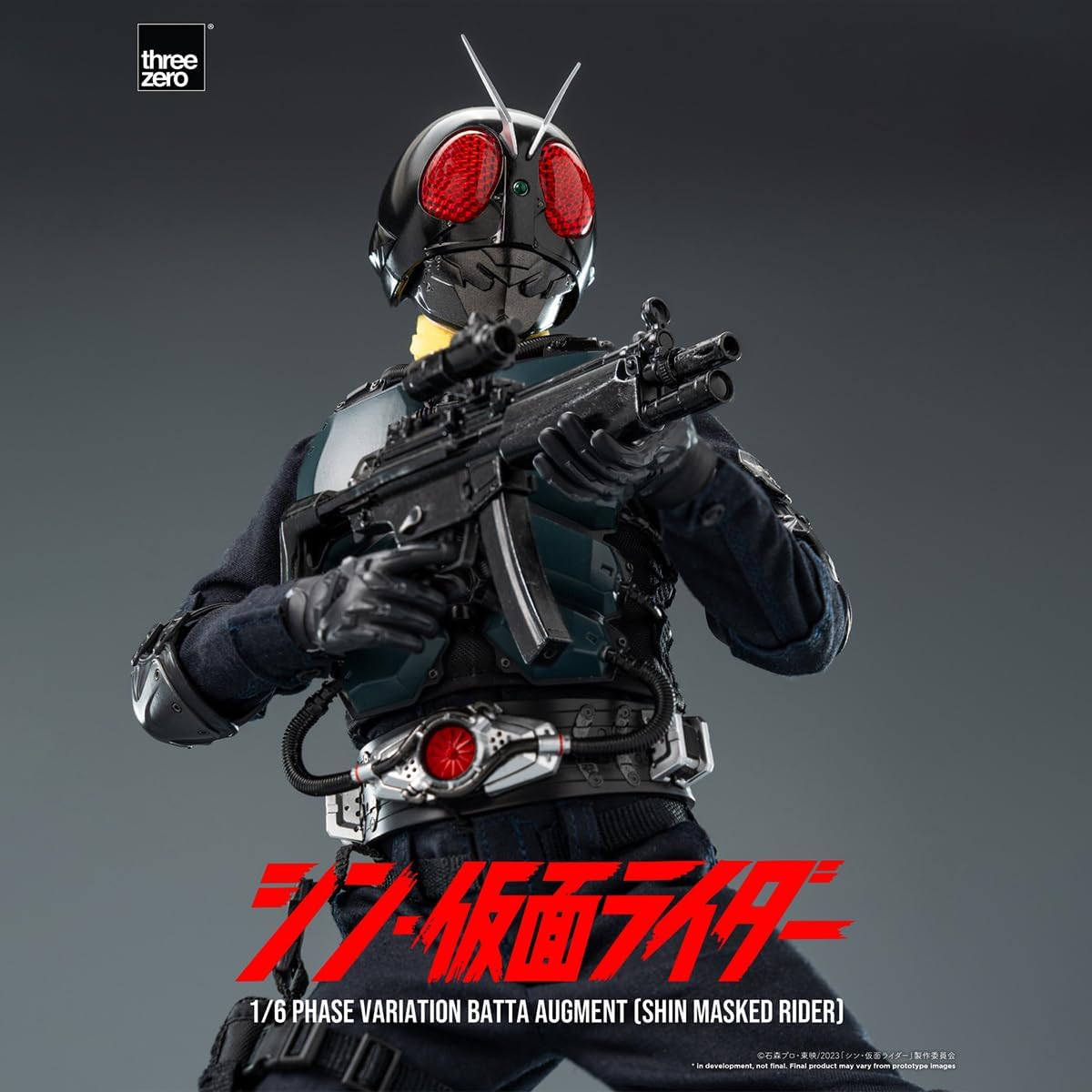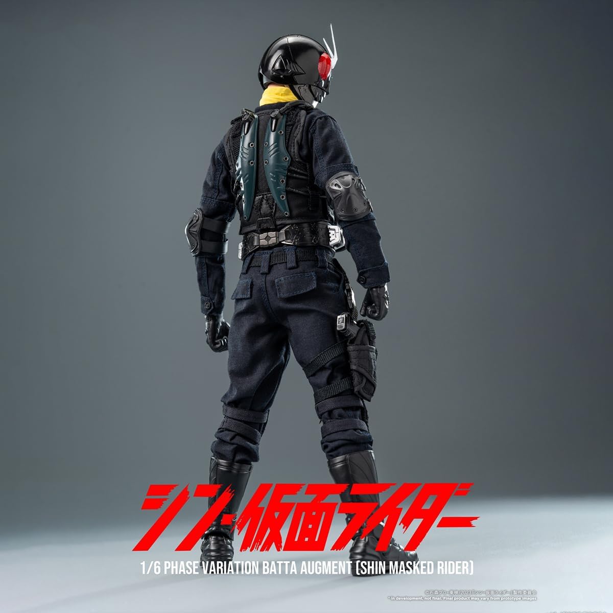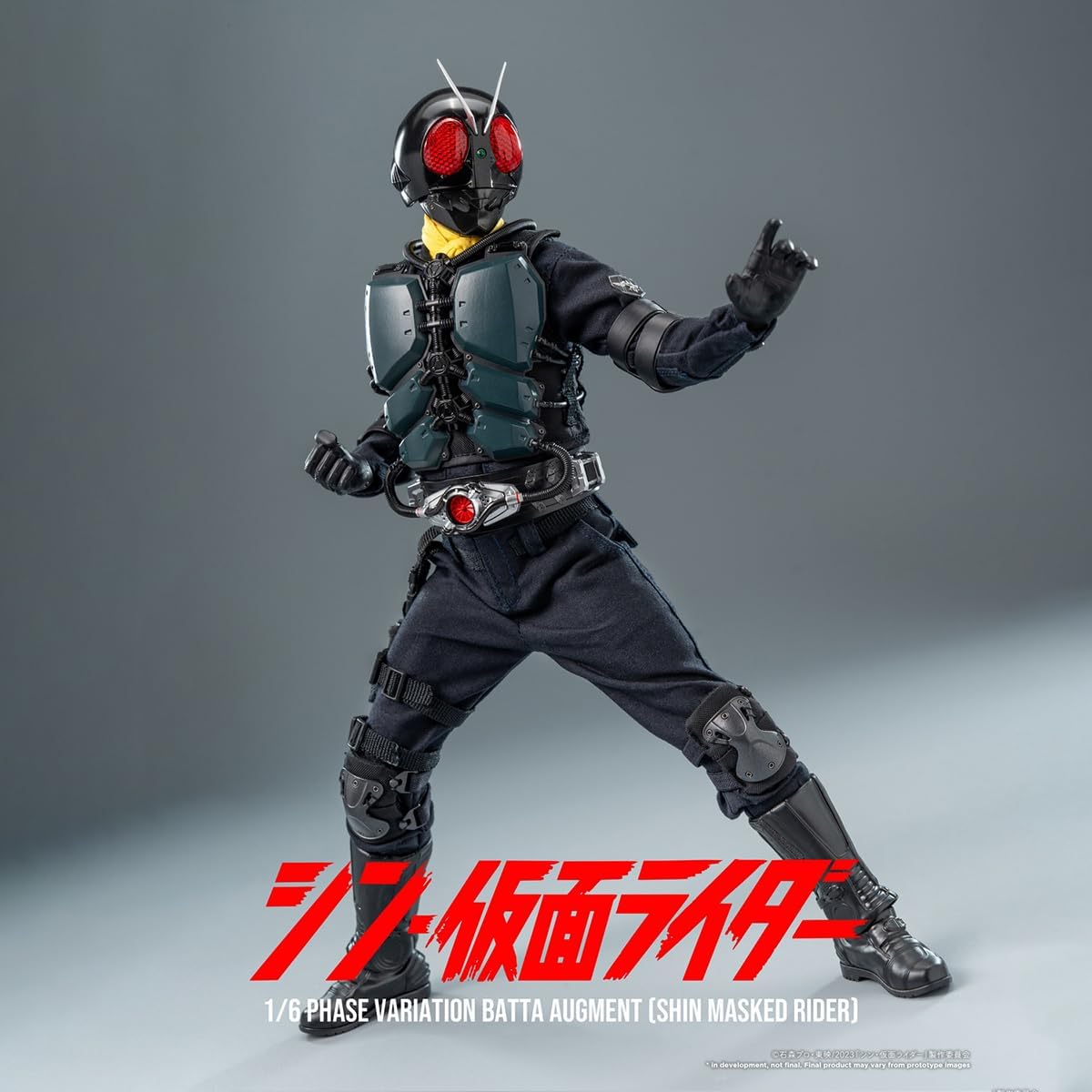 FIRST APPEARANCE -- From the movie "SHIN MASKED RIDER", 1/6 Phase Variation Batta Augment (SHIN MASKED RIDER), capturing the appearance as seen in the 2023 movie through its highly detailed helmet sculpt and Rider Belt, and tailor-made outfits. POSEABLE CHARACTER -- Stands approximately 11.7 inches (29.7cm) tall. It is a fully-articulated collectible figure with over 32 points of articulation. The collectible figure has a precise sculpted detailing including a weathering effect on the gloves and boots. SPECIAL FEATURES -- An LED light is installed inside the eyes located in the helmet for lighting effect. The jaw piece of the mask “Crusher” is articulated to be able to adjust length for mouth movement. It also features a fabric scarf which contain wire inside at the edges, making them poseable. ACCESSORIES INCLUDE -- Two pairs of interchangeable boots, where one pair is for better articulation with parts separated at the ankles, and another pair where each boot is made as a single piece for a seamless appearance. Additional accessories included five pairs of interchangeable hands and an iconic submachine gun to capturing the battle scenes with combat suit outfit embedded with elbow pads and knee pads and equipped a pistol with holster. PRODUCT DETAILS -- Product scale is approx. 1/6. Product height approx. 30 CM. Packaging size approx. 17×8×36 CM (L x W x H). Package weight is approximately 1.5 kilograms. Made of durable ABS, PVC, POM, and fabric. Recommended for ages 15 & up, not a children's toy.