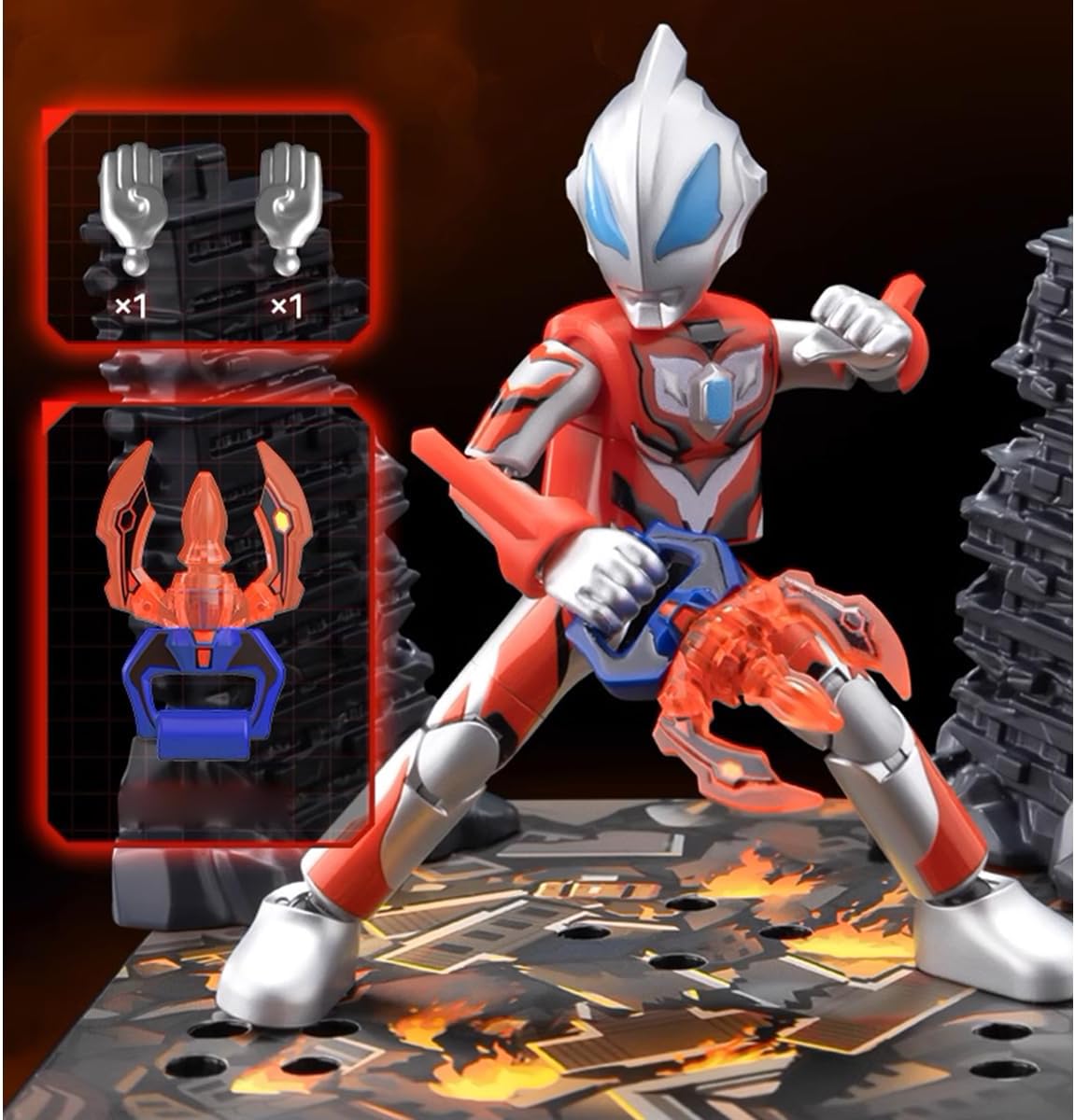 COLLECTIBLE FIGURE -- Assembly Plastic Model Kits Collectible, inspired by the character from the Ultraman warriors who debuted in the Ultraman series. It features exquisite design and painting rich detailing and high articulation. REQUIRE ASSEMBLY -- Colored components, Require Assembly. Some parts are pre-painted with color separation. Assembly takes time, and each part has a high degree of fit. INSPIRED ACCESSORIES -- Base x4, Stickers x4, Chemical Plant x1, Chemical Plant x1, Suburban Mountain (High) x1, Evil Fire (Large) x1, Evil Fire (Small) x1, Ruined House (Low) x2, Ruined House (High) x2, Dovetail Joint x4, Connector x10, Instruction Manual x1, Character Card x2. PARTS PACKAGES -- Gillvalis Parts Pack x1, Scene Pack x2, Panel x11, Ultraman Zero Parts Pack x1, Ultraman Z Parts Pack x1, Ultraman Geed Parts Pack x1, Ultraman Orb Parts Pack x1. SPECIFICATIONS -- Product height approx. 12 CM. Packaging size approx. 25×20×8 CM (L x W x H). Package weight is approx. 0.8 kilograms. Product Materials: Made of ABS, PVC & Other.