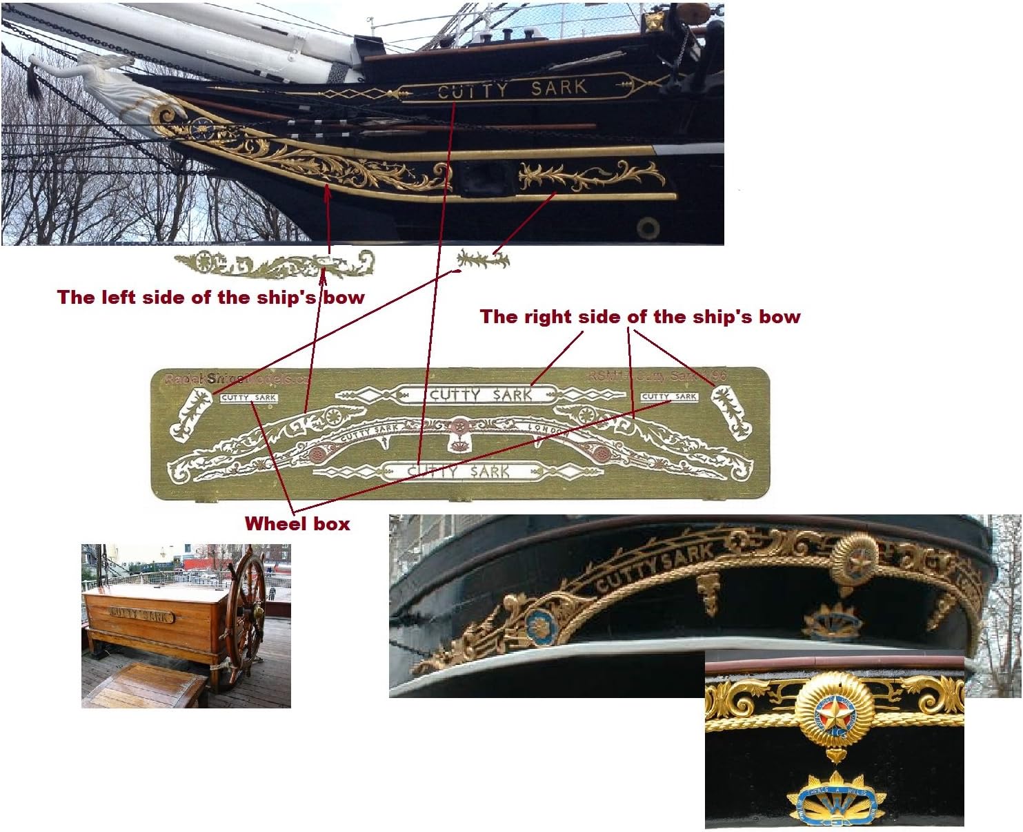 Iscrizioni e decorazioni fotoincise per il modello Cutty Sark 1:96 (Revell).