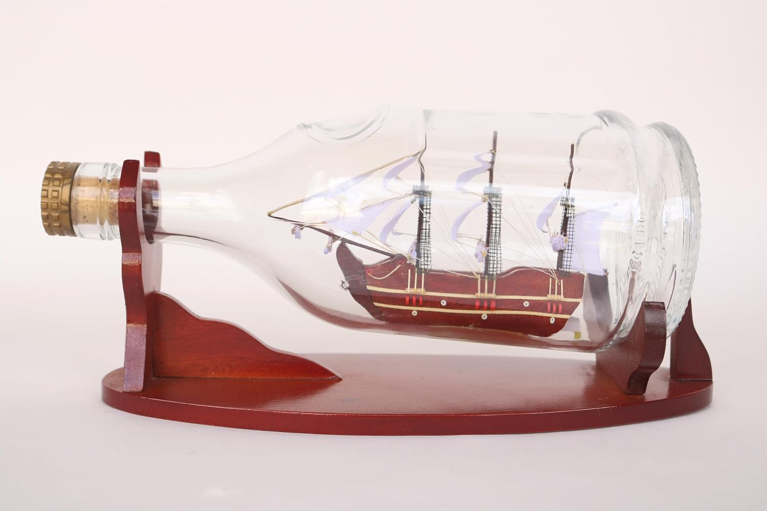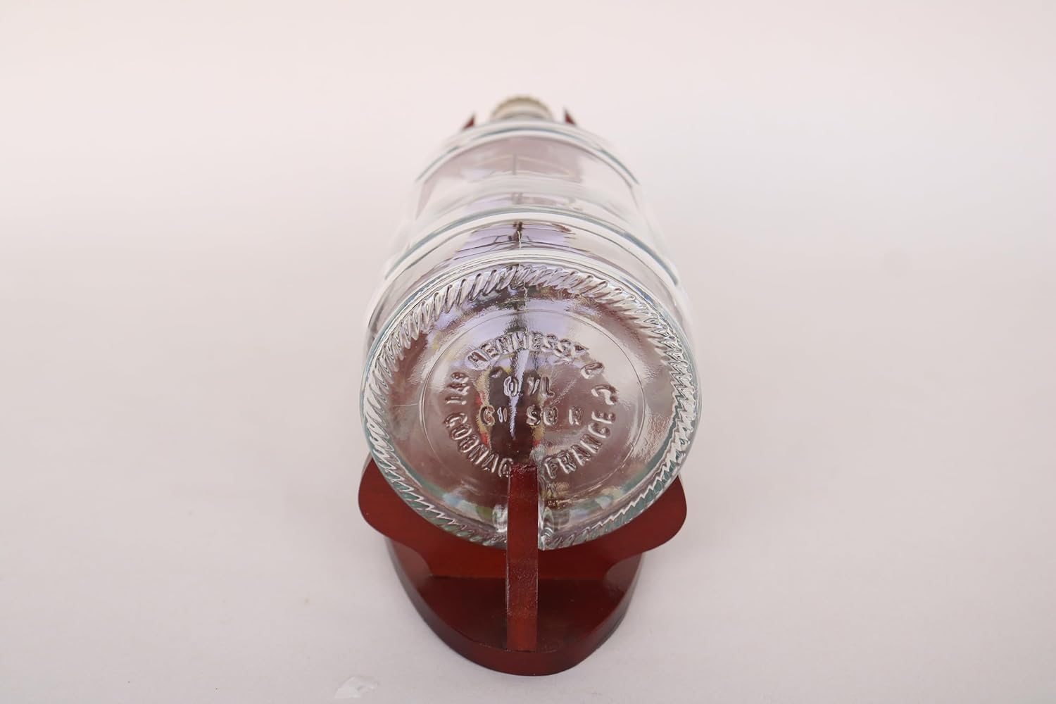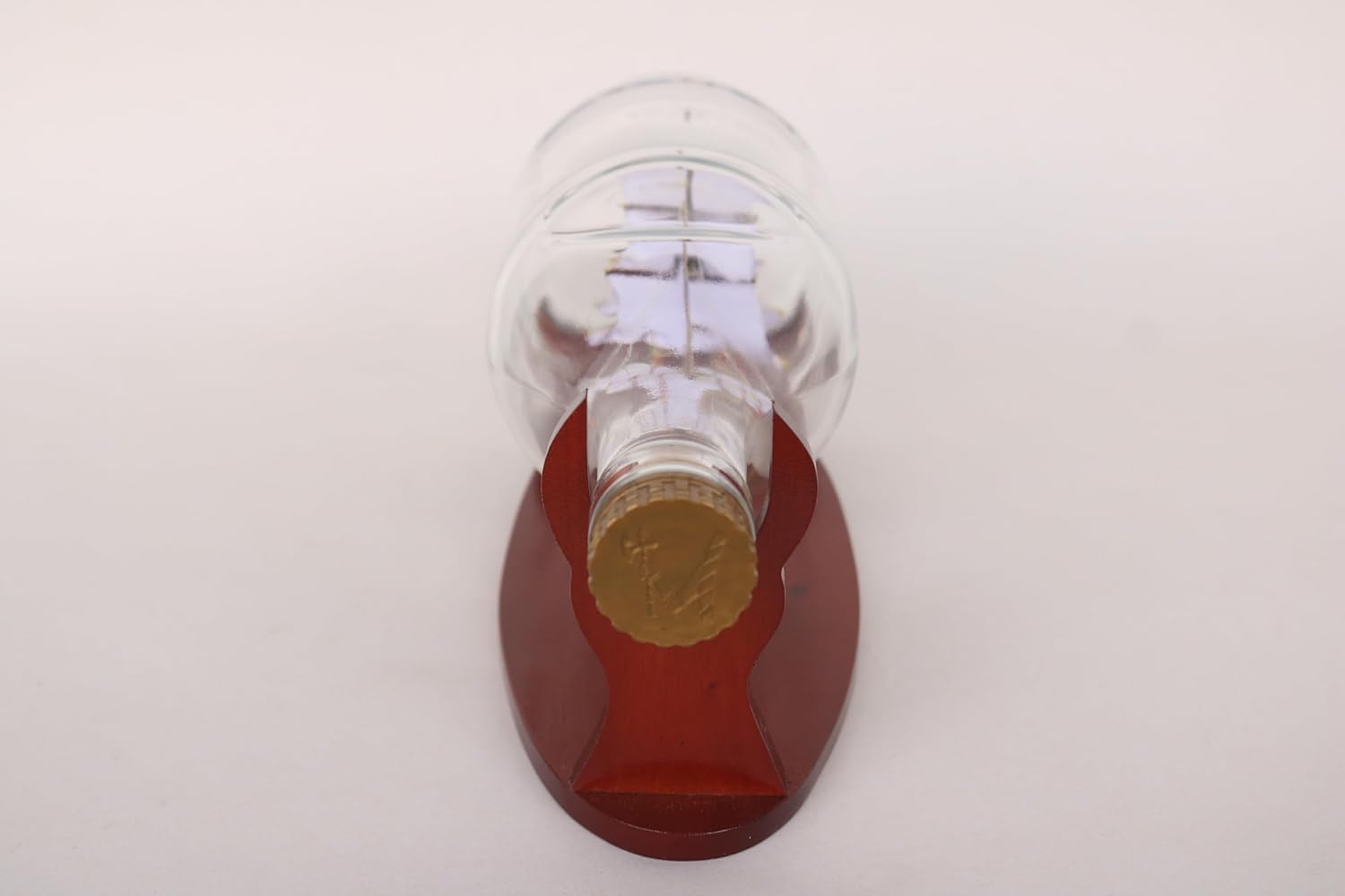 È integrato in una bottiglia di vetro originale! Grazie al collo della bottiglia è stato utilizzato in filigrana dei capelli Ha un supporto in legno massello.