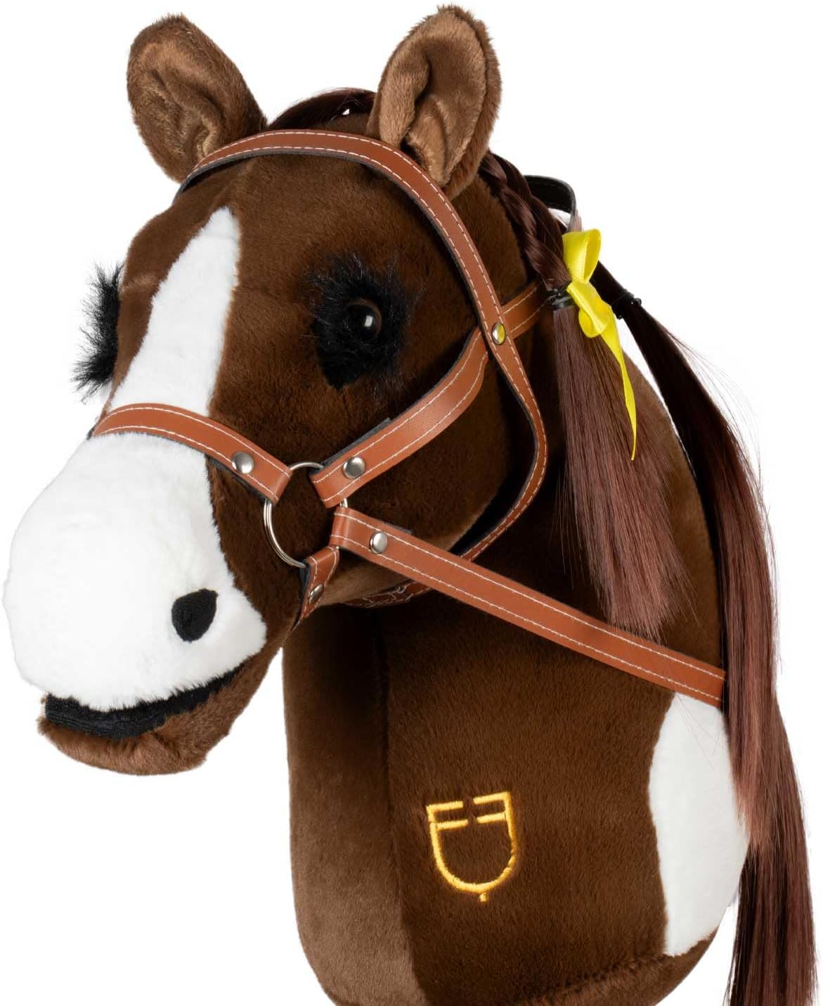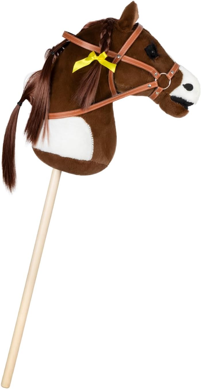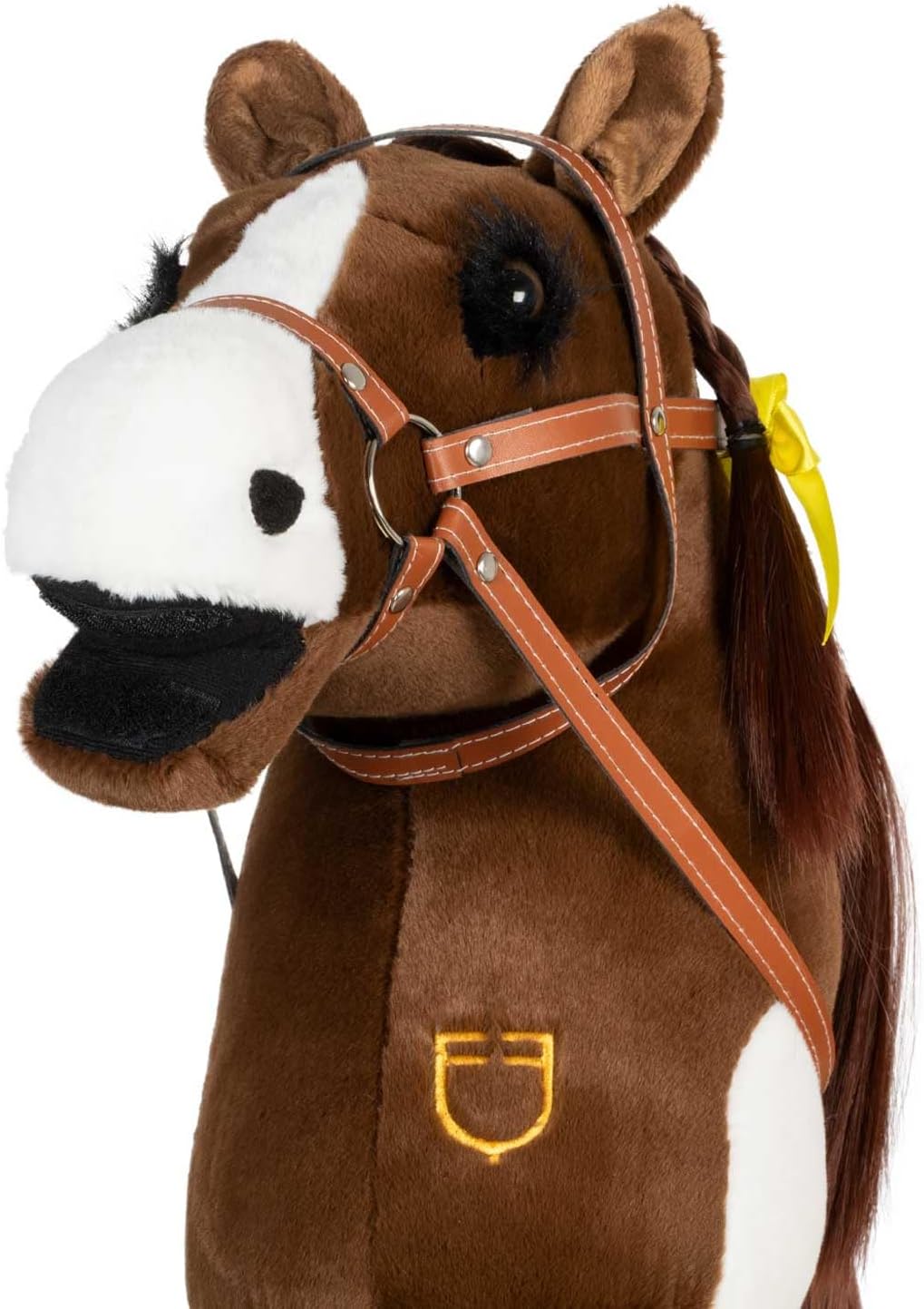 DESIGN ELEGANTE: Cavallo hobby in peluche color palomino beige con finimenti in pelle marrone e un grazioso fiocco giallo decorativo MATERIALI DI QUALITÀ: Realizzato in morbido peluche resistente con dettagli accurati come criniera bianca e caratteristiche facciali ben definite FINIMENTI REALISTICI: Dotato di briglie e finimenti in similpelle marrone che conferiscono un aspetto autentico MANICO ROBUSTO: Asta in legno resistente per una presa sicura durante il gioco DETTAGLI DISTINTIVI: Decorato con un fiocco giallo e caratterizzato da un logo distintivo sul fianco