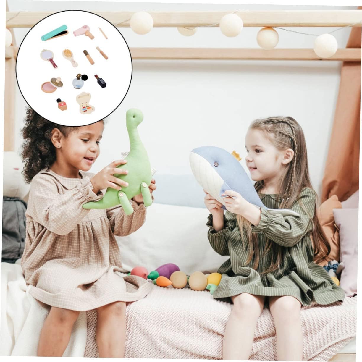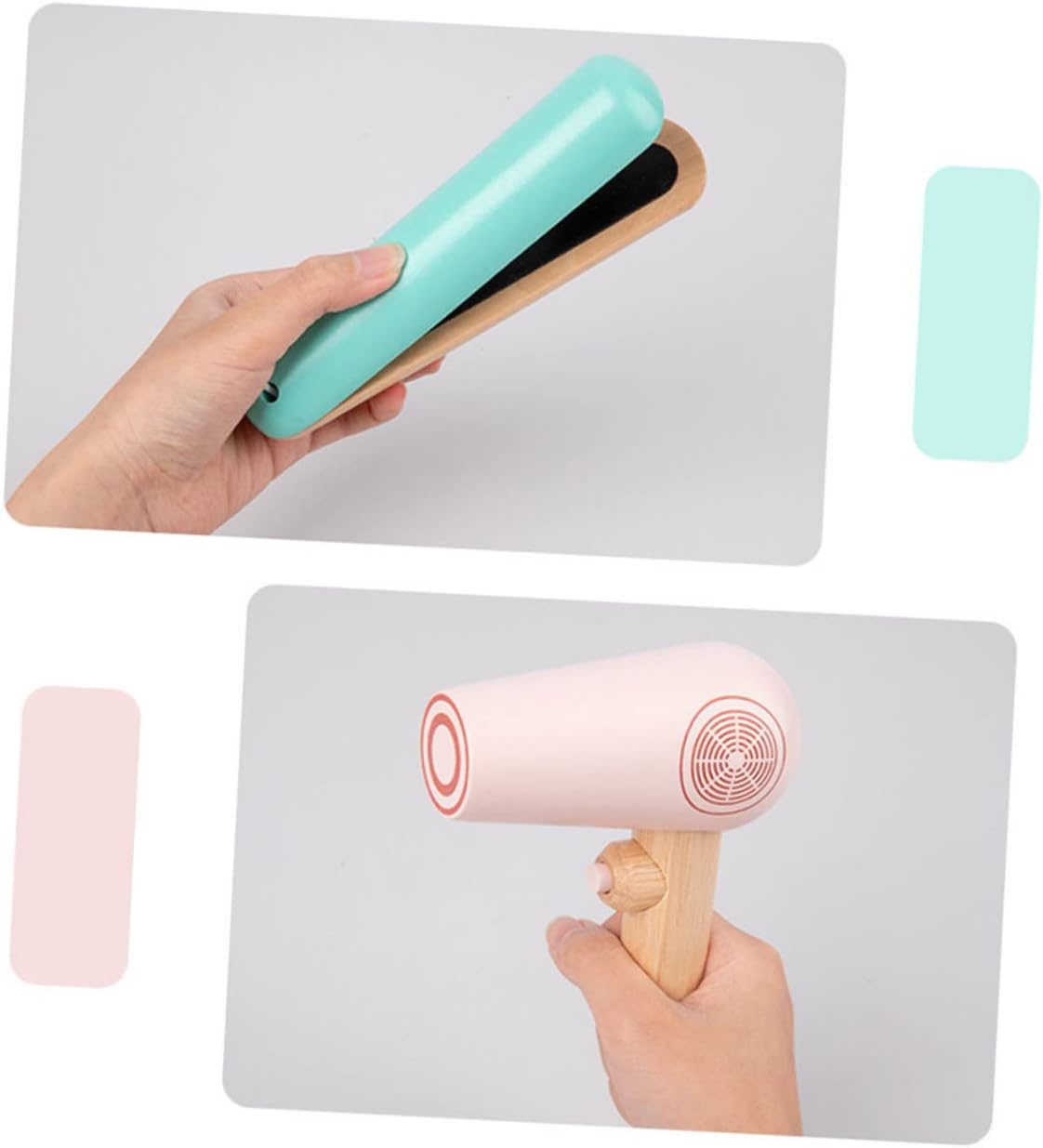 Questo giocattolo per il trucco è realizzato in materiale di legno, sicuro per far giocare i bambini. Contiene diversi tipi di articoli che possono soddisfare le esigenze di gioco di tuo figlio. Con un aspetto colorato, può essere utilizzato per sviluppare le abilità dei bambini e la coordinazione occhio-mano. Il prodotto risulta liscio e levigato senza danneggiare la pelle del bambino. Perfetto per il teatro. È un giocattolo interattivo genitore-figlio.