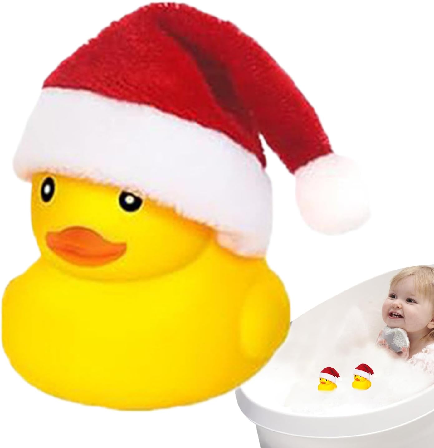 Good Durability: Crafted from rubber material, these ducks make sure a safe, smooth touch with slight elasticity, resist wear and fading, enhancing your delightful experience over time Easy to Hold: This rubber duck is specially crafted with an ergonomic design that makes it easy to hold and perfect for small hands. It fits conveniently in pockets, handbags, and storage boxes, providing a fun and portable playmate for your child's adventures Ready to Use: Attach Christmas hats, 1 to each duck, for extra fun in the tub. The rubber duck and accessories come separately, so you ca n easily your ducks and add some holiday spirit to your soak Come into a Wide Use: Ideal as a versatile present, these rubber ducks can lift Christmas, birthday parties, weddings, or pool gatherings and also serve as charming holiday basket fillers or photo props Great Presents: Crafted in lively and interesting colors, these rubber ducks can float on water, make funny sounds, and bring a happy m , making them a perfect present for students, family, and friends
