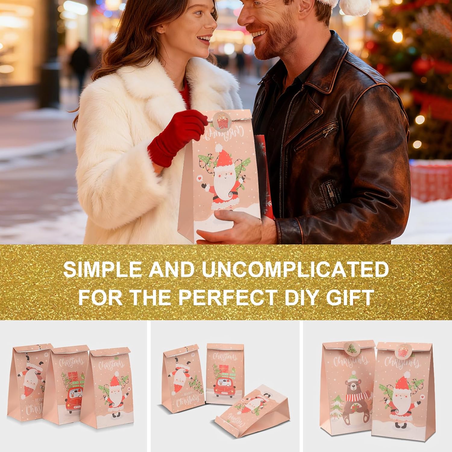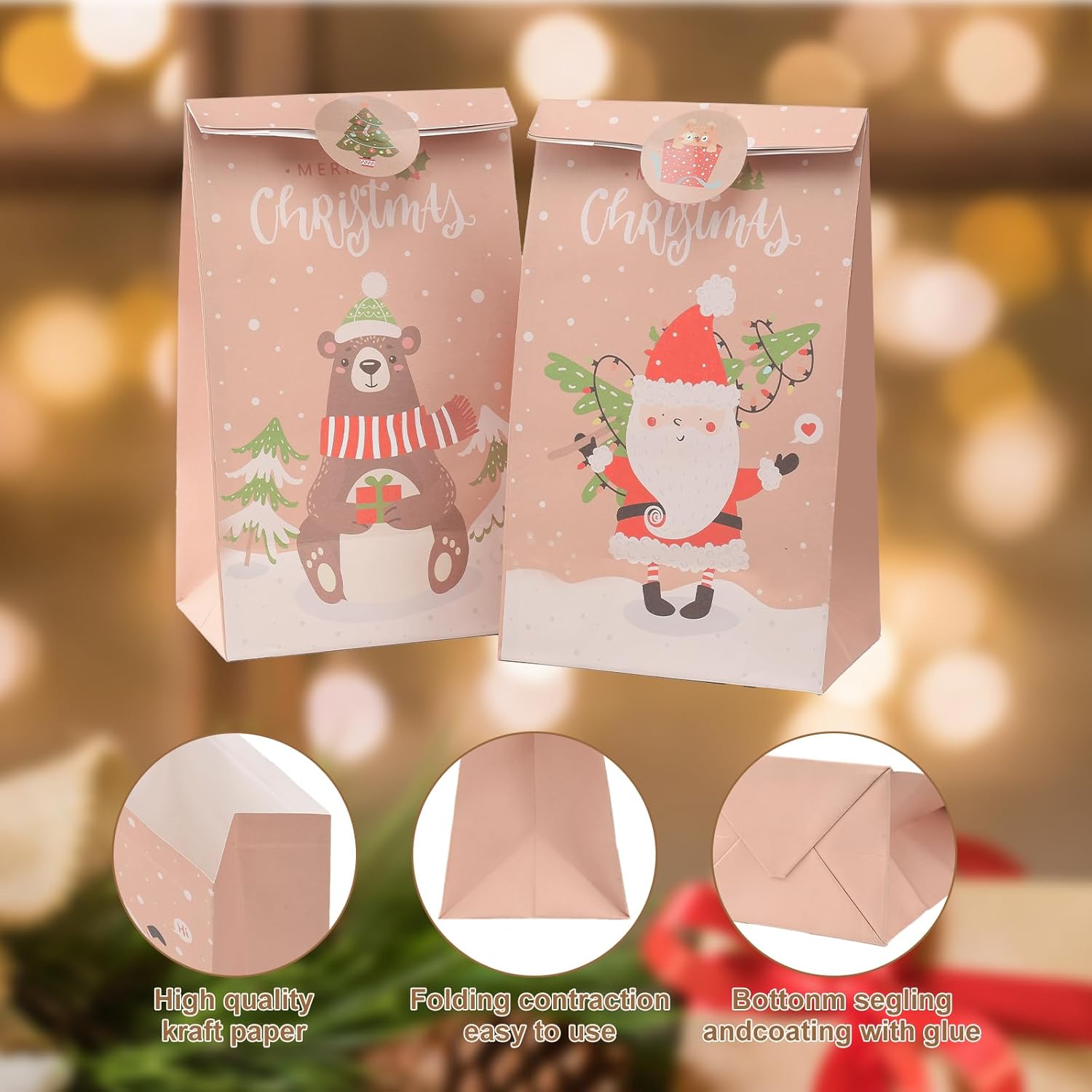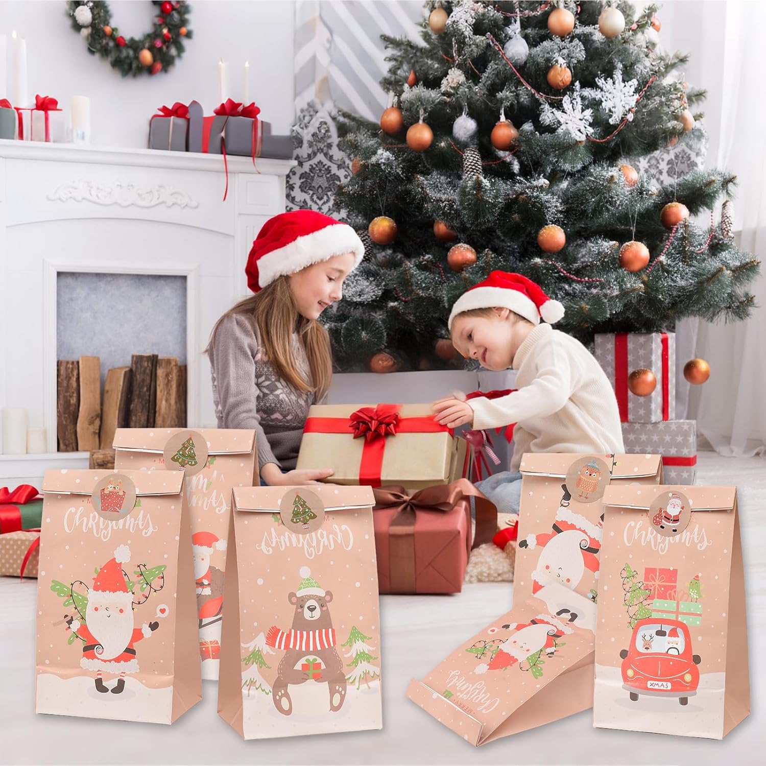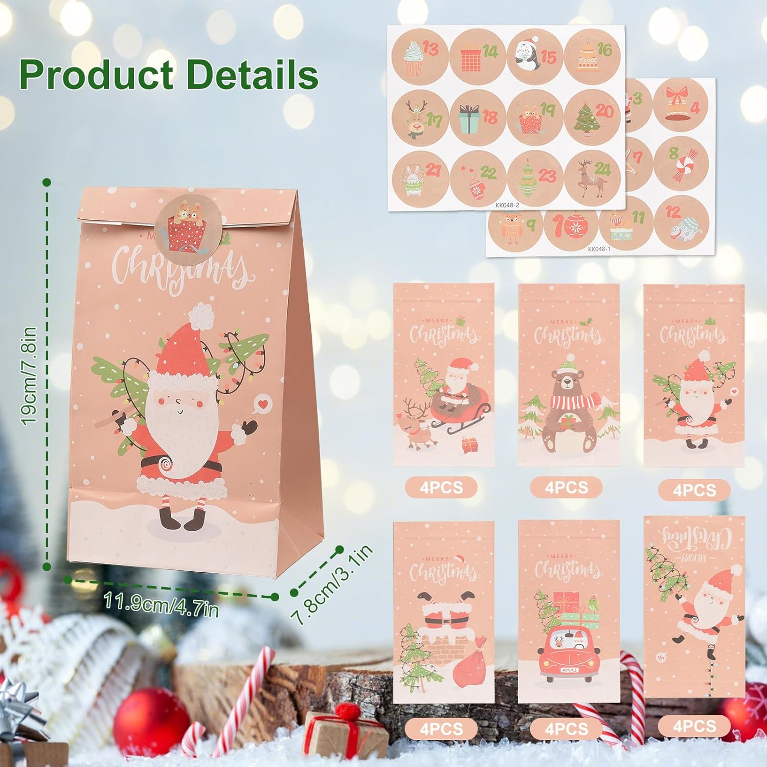 Sacchetti regalo di Natale di alta qualità: i nostri sacchetti di Natale sono realizzati in robusta carta kraft di alta qualità, particolarmente stabile, resistente agli strappi ed ecologica. Questi sacchetti regalo di Natale possono essere utilizzati più volte e mantengono la loro forma anche dopo un uso frequente. Perfetto per confezionare regali sostenibili ed eleganti durante il periodo natalizio Set festivo con una varietà di design: ogni set contiene 24 sacchetti di carta natalizi in 6 diversi motivi festivi (4 pezzi ciascuno) e 24 fogli di adesivi numerati. I colori vivaci e le adorabili fantasie creano un'atmosfera festosa - ideali come sacchetti natalizi da riempire, per calendari dell'Avvento, piccoli regali o dolciumi. Dimensioni pratiche per regali diversi: con le dimensioni di 11,9 × 7,8 × 19,8 cm questi piccoli sacchetti regalo di Natale offrono spazio sufficiente per cartoline, biscotti, cioccolatini, gioielli o piccole sorprese. Che i sacchetti regalo di Natale siano grandi o piccoli, sono compatti ma abbastanza spaziosi per riporre in sicurezza tutti i piccoli regali. Versatili per ogni occasione: questi sacchetti natalizi sono perfetti come sacchetto regalo di Natale, sacchetto per feste, decorazione o confezione per amici e parenti. A casa, a scuola o in ufficio, i sacchetti regalo di Natale sono leggeri, pratici e facili da trasportare. Personalizzabile e utilizzabile in modo creativo: dai un tocco personale ai tuoi sacchetti regalo! La superficie dei sacchetti natalizi può essere decorata individualmente con penne, adesivi o piccole etichette. Ideale per bambini, appassionati di artigianato o menti creative che vogliono personalizzare la propria borsa regalo di Natale