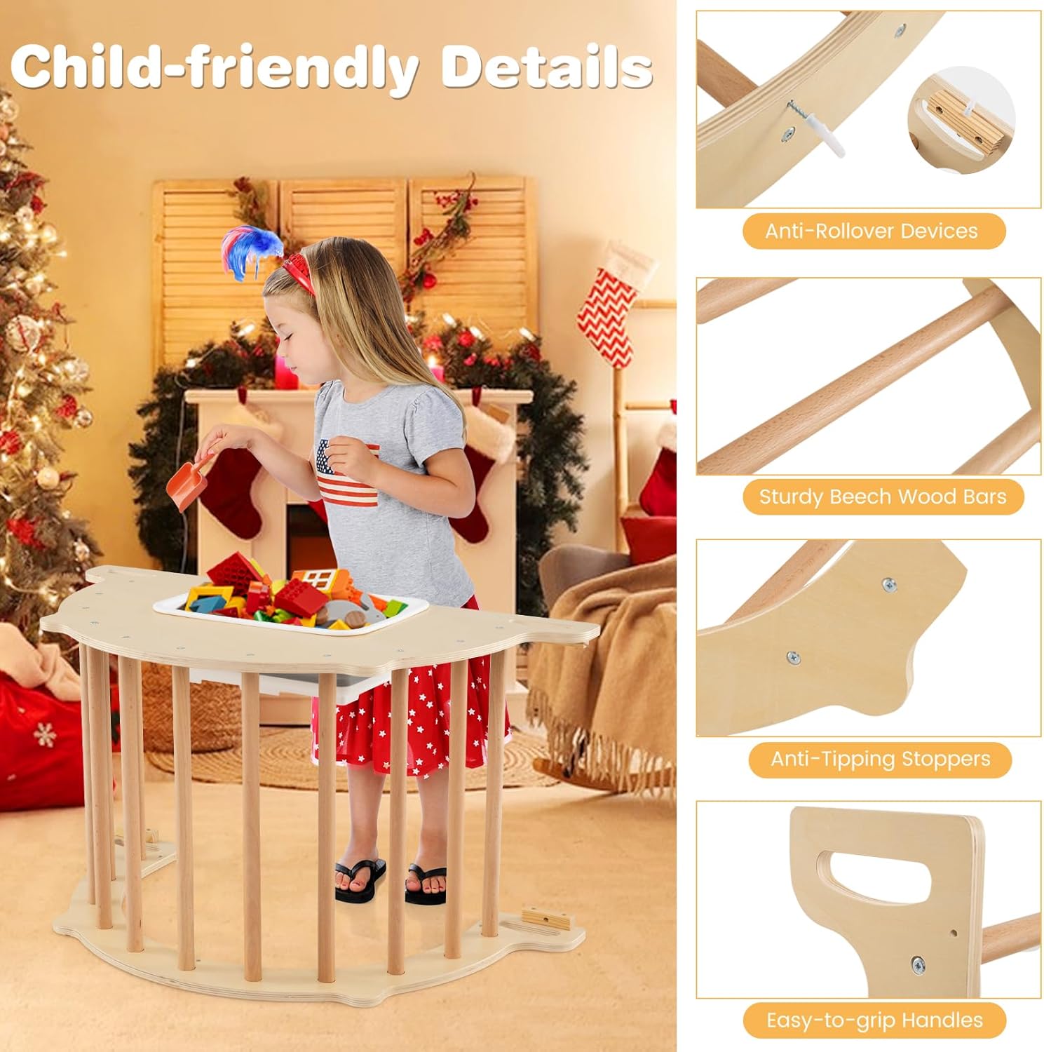 8 IN 1 DIVERTIMENTO SENZA CONFINI: Quest’arco montessoriano per bambini è stato progettato con il concept di "divertimento infinito" e offre ai bambini 8 modalità di gioco ricche e diverse: arrampicata, gioco nella sabbia, gioco con l'acqua, dondolio, strisciare, mettere in ordine gli oggetti, calciare la palla e allenamento dell’equilibrio, permettendo ai bambini di godersi un divertimento continuo durante l’esplorazione DESIGN INTELLIGENTE PER UNA CONSERVAZIONE FLESSIBILE: Questo dondolo montessoriano per bambini è dotato di una scatola portaoggetti capiente, che può essere posizionata direttamente sul tavolo sensoriale in legno, facilitando l’organizzazione di giocattoli e oggetti di uso quotidiano; dopo il gioco, riordinare diventa più efficiente. Quando non utilizzata, la scatola è pieghevole, risparmiando molto spazio DOPPIO SISTEMA DI SICUREZZA E STABILITÀ: La sicurezza dei bambini è sempre la priorità principale. Quest’arco arrampicata in legno è dotato di una chiusura integrata che impedisce efficacemente il ribaltamento; inoltre, è possibile aggiungere dispositivi anti-ribaltamento alla struttura da arrampicata o al tavolo sensoriale, creando un ambiente di gioco stabile e sicuro per i bambini STRUTTURA AMICA DEI BAMBINI: La palestra per bambini da interno è realizzata con pali in faggio massello, garantendo durabilità nel tempo e una piacevole estetica; è inoltre dotato di manici ergonomici che si adattano alle piccole mani dei bambini, permettendo una presa comoda e un'esperienza d’uso migliore UN REGALO CRESCENTE E SORPRENDENTE: Questo 8 in 1 set di arrampicata per bambini combina benefici educativi con puro divertimento ed è una scelta di regalo ideale per bambini dai 3 anni in su. Aiuta i bambini a migliorare gradualmente le capacità motorie, la coordinazione del corpo e le competenze sociali, permettendo loro di crescere naturalmente attraverso il gioco e la gioia