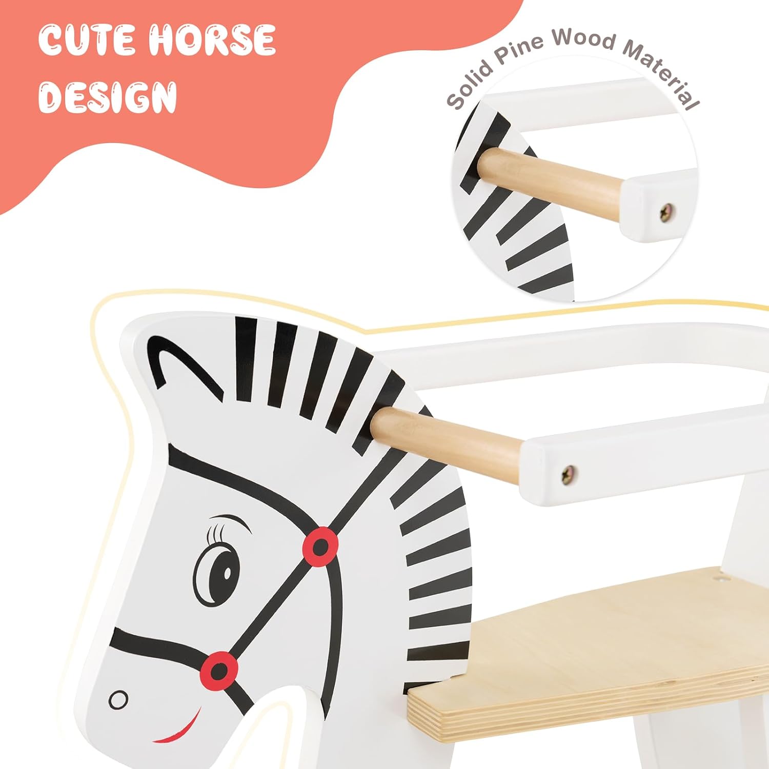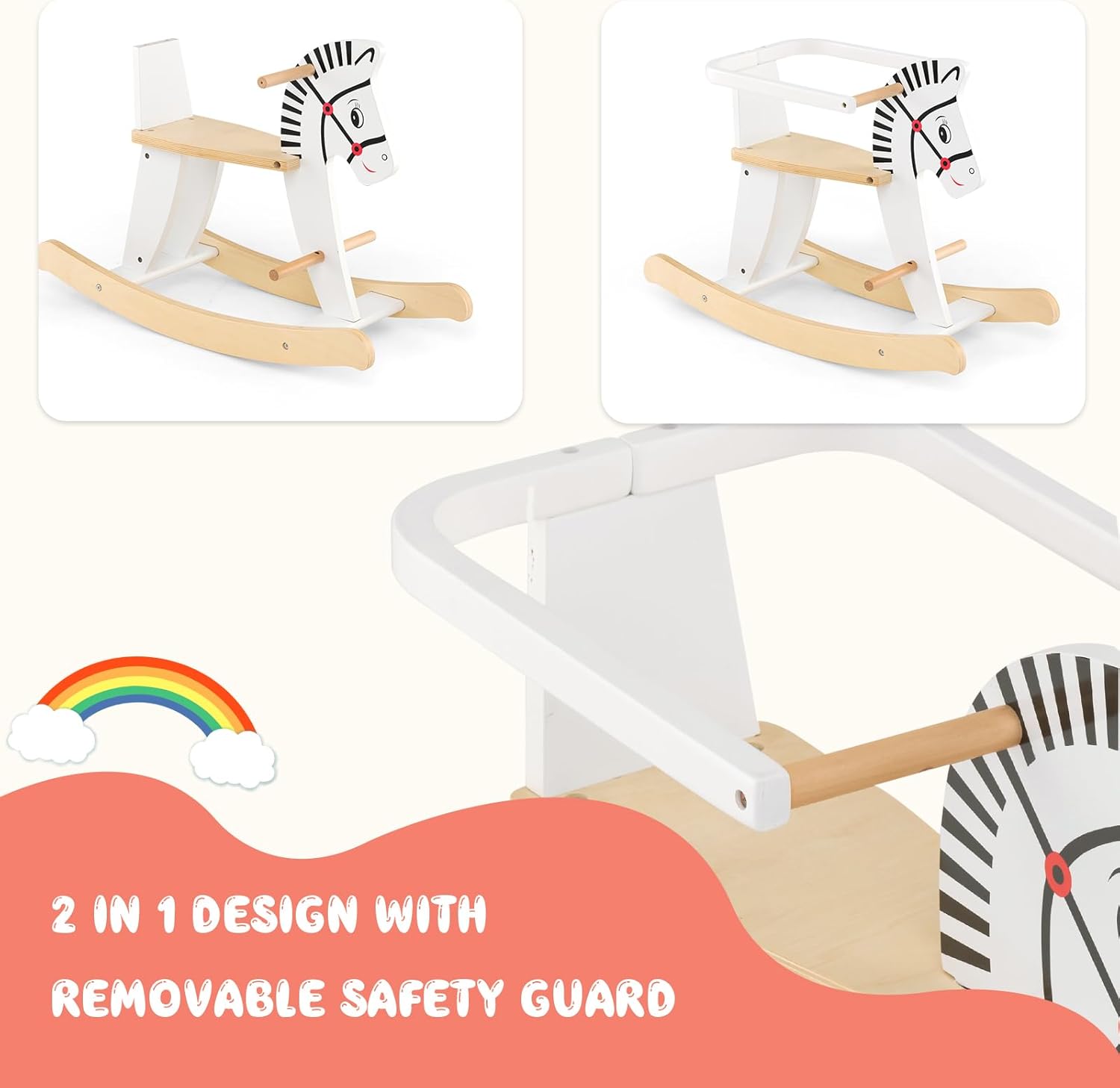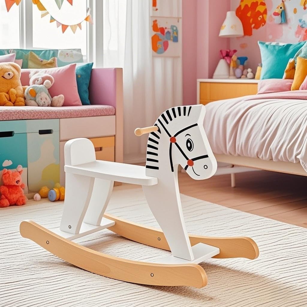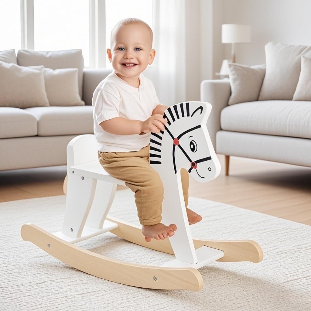 STRUTTURA AFFIDABILE E RESISTENTE: Realizzato con legno massiccio resistente e MDF robusto, il nostro grazioso cavallo a dondolo per bambini in legno con sponde può sopportare fino a 40 kg di peso ed accompagnare i bambini per lungo tempo. La superficie lucidata e gli angoli arrotondati evitano urti o graffi SPONDA RIMOVIBILE: Il nostro cavalluccio a dondolo in legno ha sponde rimovibili su entrambi i lati per garantire una maggiore sicurezza dei bambini, rendendolo adatto ai bambini di età superiore ai 3 anni. Puoi scegliere se montare o non montare le sponde di sicurezza in base alle esigenze delle diverse fasi di crescita dei bambini DONDOLO COMODO E DOLCE: La base curva del cavalluccio per bambini permette ai bambini di dondolarsi in avanti o all'indietro con un angolo di oscillazione di 11-22 gradi, evitando ribaltamenti e garantendo un dondolio stabile. Inoltre, i manici consentono ai bambini di controllare meglio il dondolio. I pedali aggiuntivi e il sedile morbido garantiscono un grande comfort PERSONALIZZA IL CAVALLUCCIO A DONDOLO: I bambini possono dipingere liberamente diversi disegni sulla superficie liscia del cavallo giocattolo in legno per creare un cavalluccio proprio e unico. Possono sfruttare al massimo la loro immaginazione per disegnare qualsiasi disegno o forma. Suggerimento: I disegni dipinti non sono rimovibili REGALO PERFETTO PER BAMBINI: Questo rocking horse è una scelta perfetta per compleanni o altre feste per bambini. Il seggiolino sicuro impedisce ai bambini di inclinarsi indietro. Inoltre, l'altezza del sedile di 29,5 cm consente ai più piccoli di toccare il suolo, ideale per l'esercizio dei muscoli delle gambe
