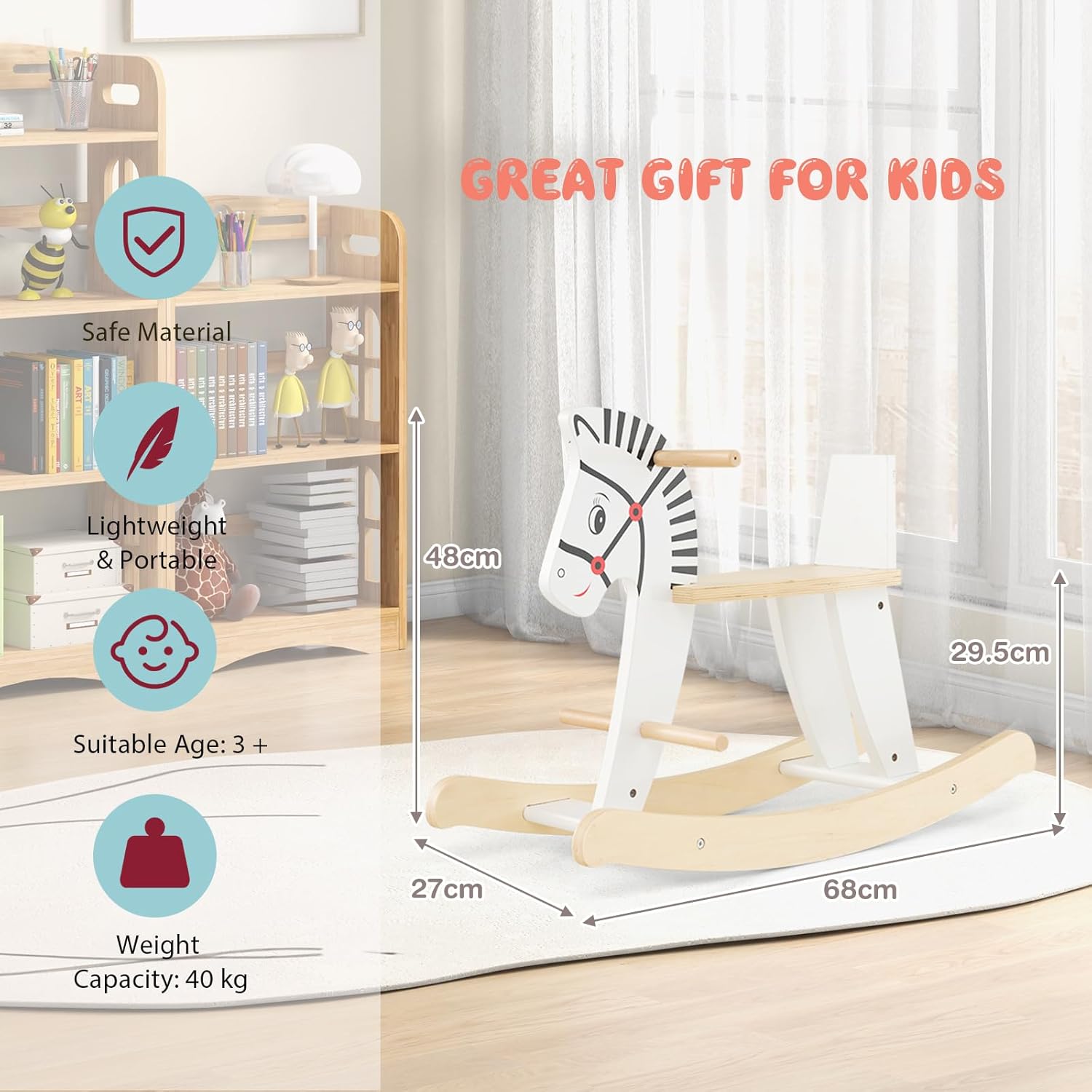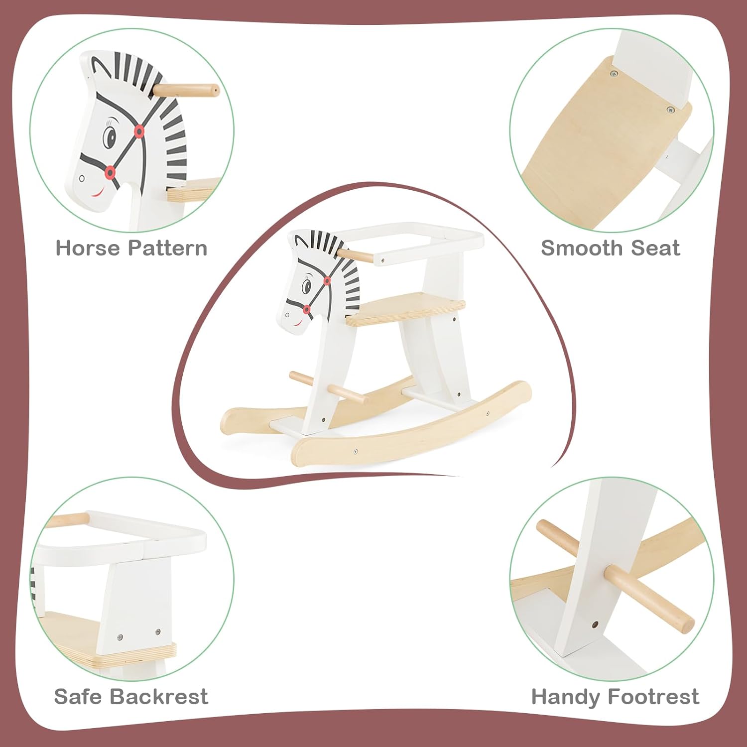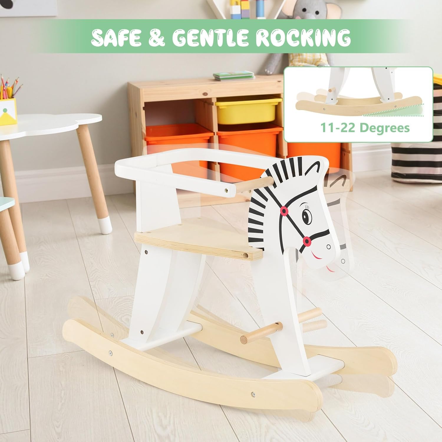 STRUTTURA AFFIDABILE E RESISTENTE: Realizzato con legno massiccio resistente e MDF robusto, il nostro grazioso cavallo a dondolo per bambini in legno con sponde può sopportare fino a 40 kg di peso ed accompagnare i bambini per lungo tempo. La superficie lucidata e gli angoli arrotondati evitano urti o graffi SPONDA RIMOVIBILE: Il nostro cavalluccio a dondolo in legno ha sponde rimovibili su entrambi i lati per garantire una maggiore sicurezza dei bambini, rendendolo adatto ai bambini di età superiore ai 3 anni. Puoi scegliere se montare o non montare le sponde di sicurezza in base alle esigenze delle diverse fasi di crescita dei bambini DONDOLO COMODO E DOLCE: La base curva del cavalluccio per bambini permette ai bambini di dondolarsi in avanti o all'indietro con un angolo di oscillazione di 11-22 gradi, evitando ribaltamenti e garantendo un dondolio stabile. Inoltre, i manici consentono ai bambini di controllare meglio il dondolio. I pedali aggiuntivi e il sedile morbido garantiscono un grande comfort PERSONALIZZA IL CAVALLUCCIO A DONDOLO: I bambini possono dipingere liberamente diversi disegni sulla superficie liscia del cavallo giocattolo in legno per creare un cavalluccio proprio e unico. Possono sfruttare al massimo la loro immaginazione per disegnare qualsiasi disegno o forma. Suggerimento: I disegni dipinti non sono rimovibili REGALO PERFETTO PER BAMBINI: Questo rocking horse è una scelta perfetta per compleanni o altre feste per bambini. Il seggiolino sicuro impedisce ai bambini di inclinarsi indietro. Inoltre, l'altezza del sedile di 29,5 cm consente ai più piccoli di toccare il suolo, ideale per l'esercizio dei muscoli delle gambe