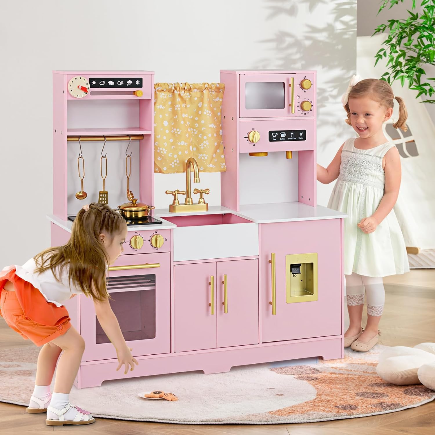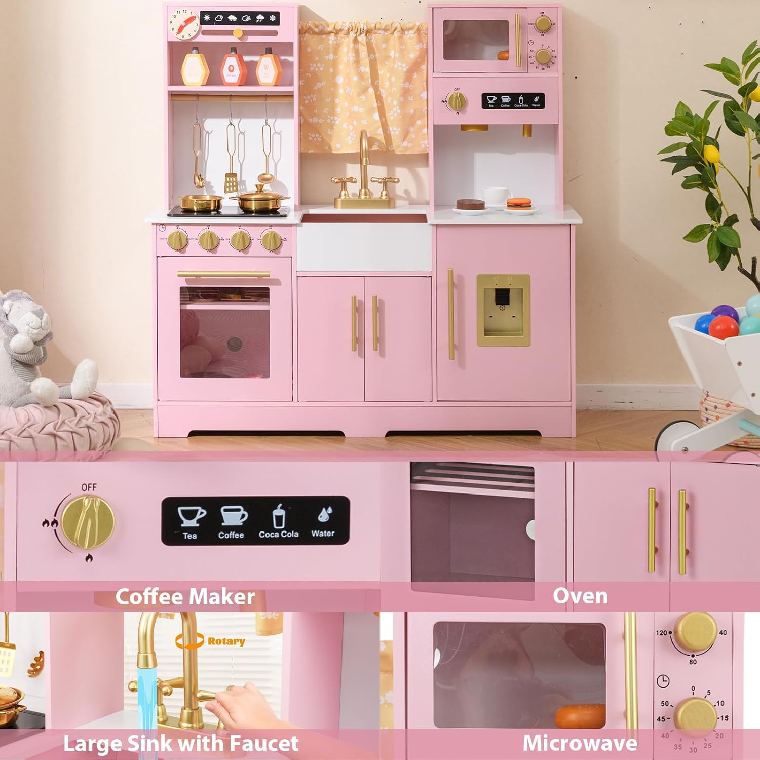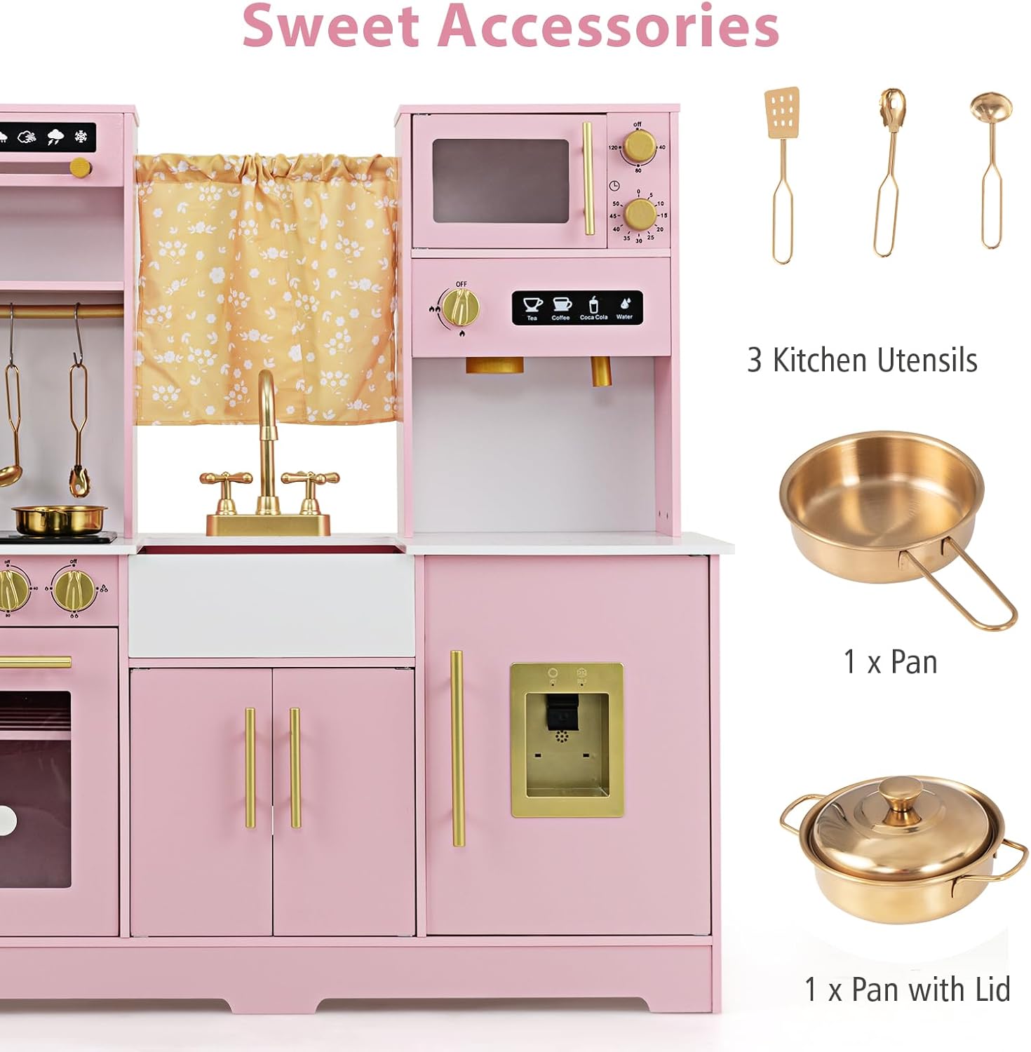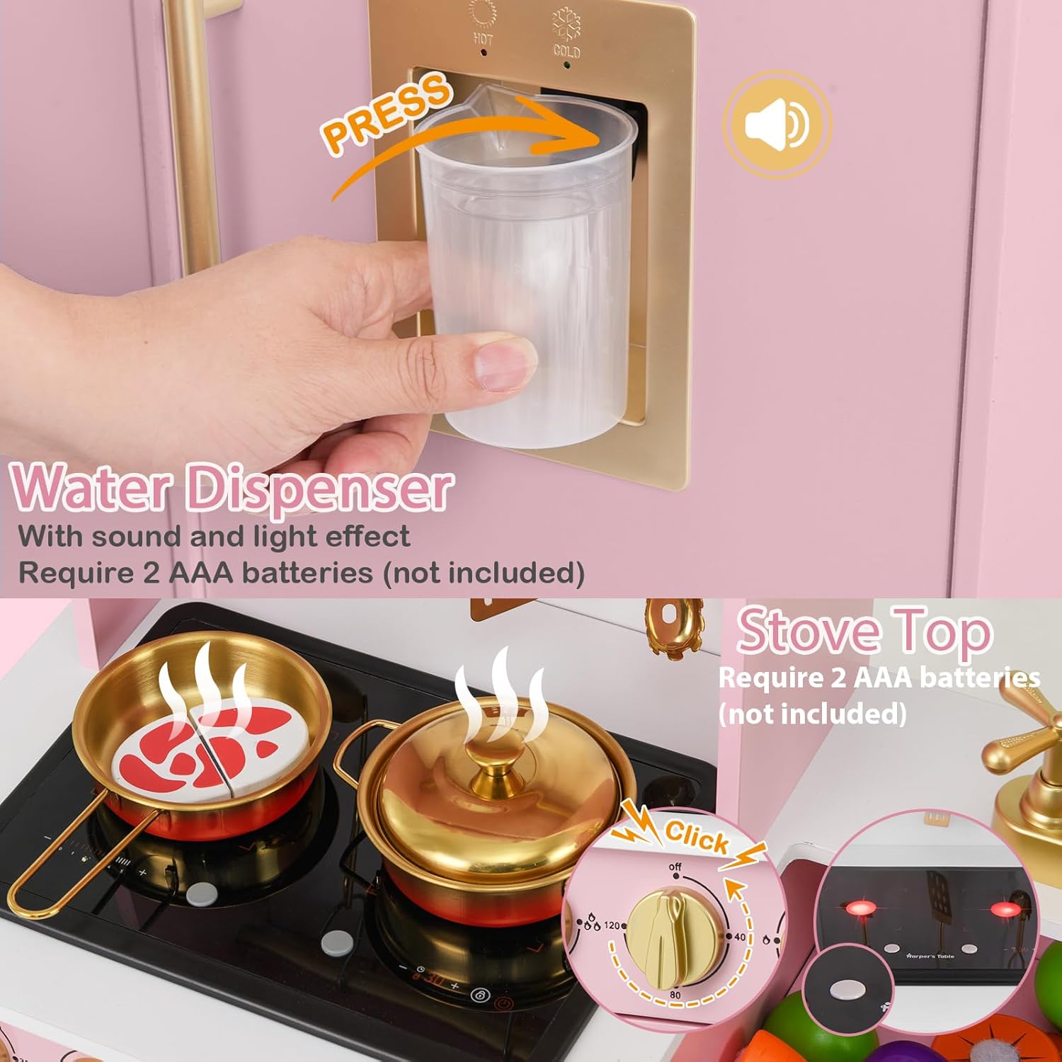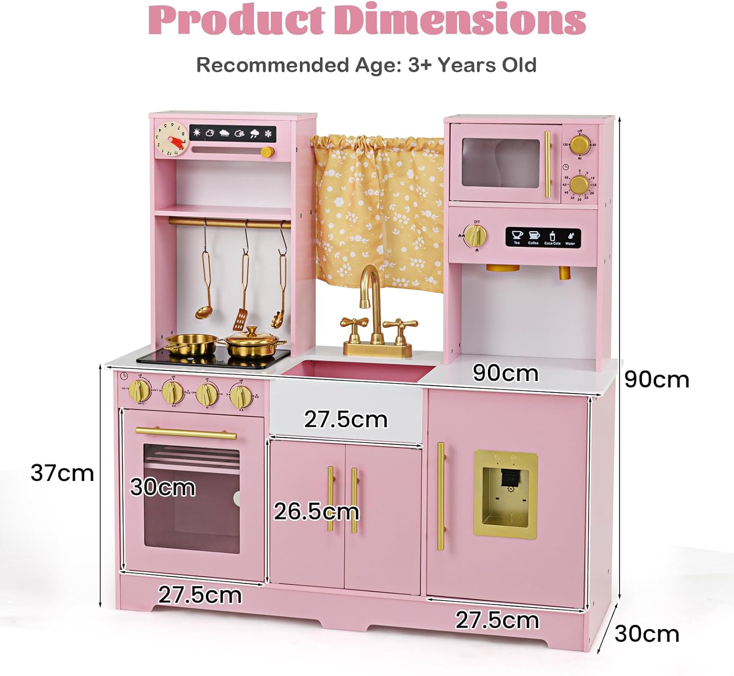 ATTREZZATURE COMPLETE: Questa cucina per bambini è dotata di pentole in acciaio inossidabile e ganci per appendere, che non solo consentono ai bambini di fare varie attività culinarie, ma anche di imparare come pulire e mantenere gli utensili da cucina, educando i bambini all'amore e al rispetto per le cose ESPERIENZA IN CUCINA REALE: In questa cucina giocattolo con macchina del caffè simulata, i bambini possono simulare scene culinarie reali e migliorare la loro immaginazione e creatività, allo stesso tempo possono imparare alcune abilità culinarie di base FUNZIONALITÀ LUMINOSE E SONORE: La macchina per l'acqua potabile e il piano cottura elettronico di questa cucina giocattolo per bambini hanno funzionalità luminose e sonore, che possono stimolare la curiosità e l'esplorazione dei bambini, consentendo loro di imparare mentre giocano e aumentare il divertimento e l'interazione nel gioco (2 batterie AAA non incluse) MATERIALI SICURI: Questa cucina legno per bambini è realizzata in truciolato che è stato sottoposto a rigorosi controlli di sicurezza, privo di sostanze nocive e senza odore, resistente alla deformazione, evitando così eventuali rischi per la sicurezza durante l'uso dei bambini, garantendo ai genitori maggiore tranquillità DIMENSIONI E ASSEMBLAGGIO: Con dimensioni di 90 x 30 x 90 cm, è di dimensioni medie e non occupa troppo spazio, mentre lo spessore del pannello da 3 mm e da 9 mm garantisce la stabilità e la resistenza della cucinetta per bambini, il facile metodo di assemblaggio permette ai genitori di creare in modo rapido e semplice un luogo di gioco colorato e divertente per i bambini