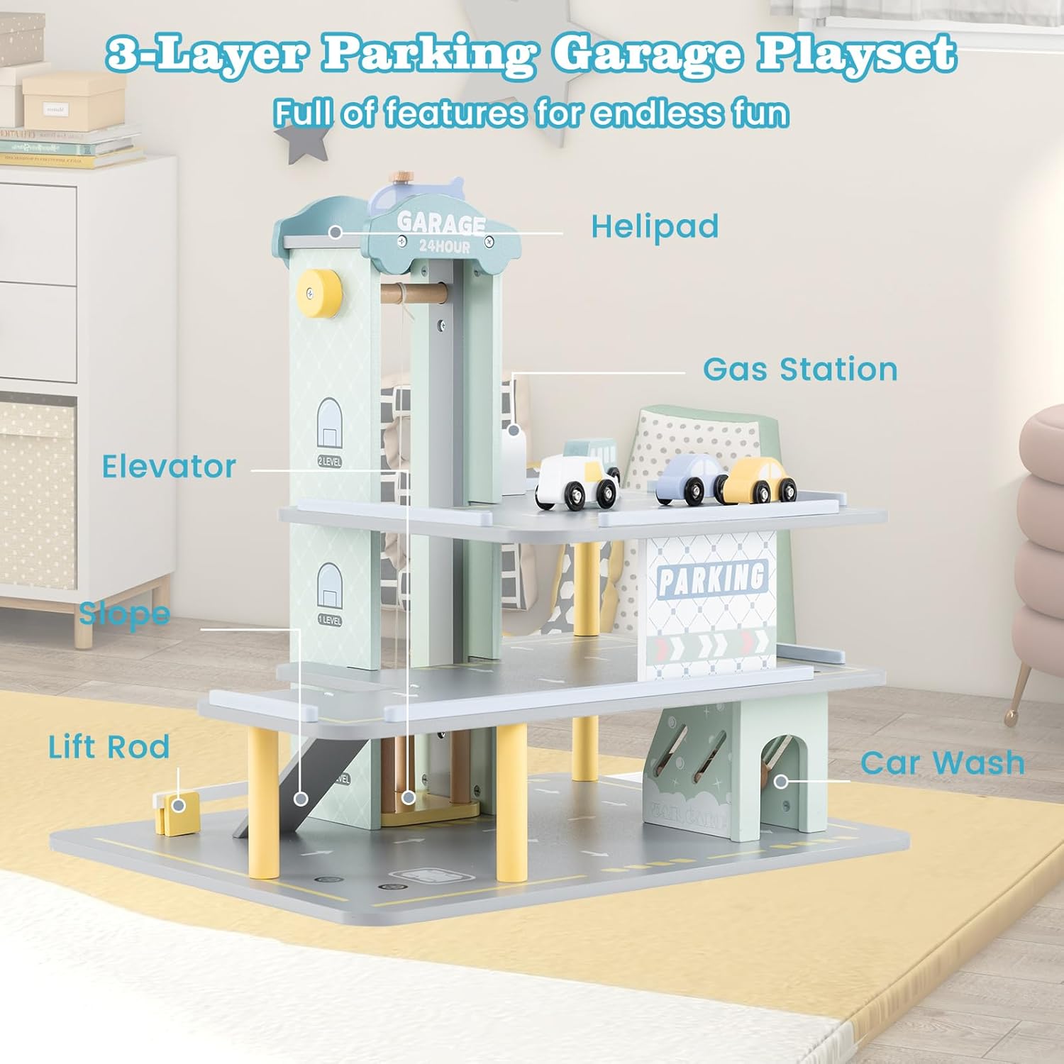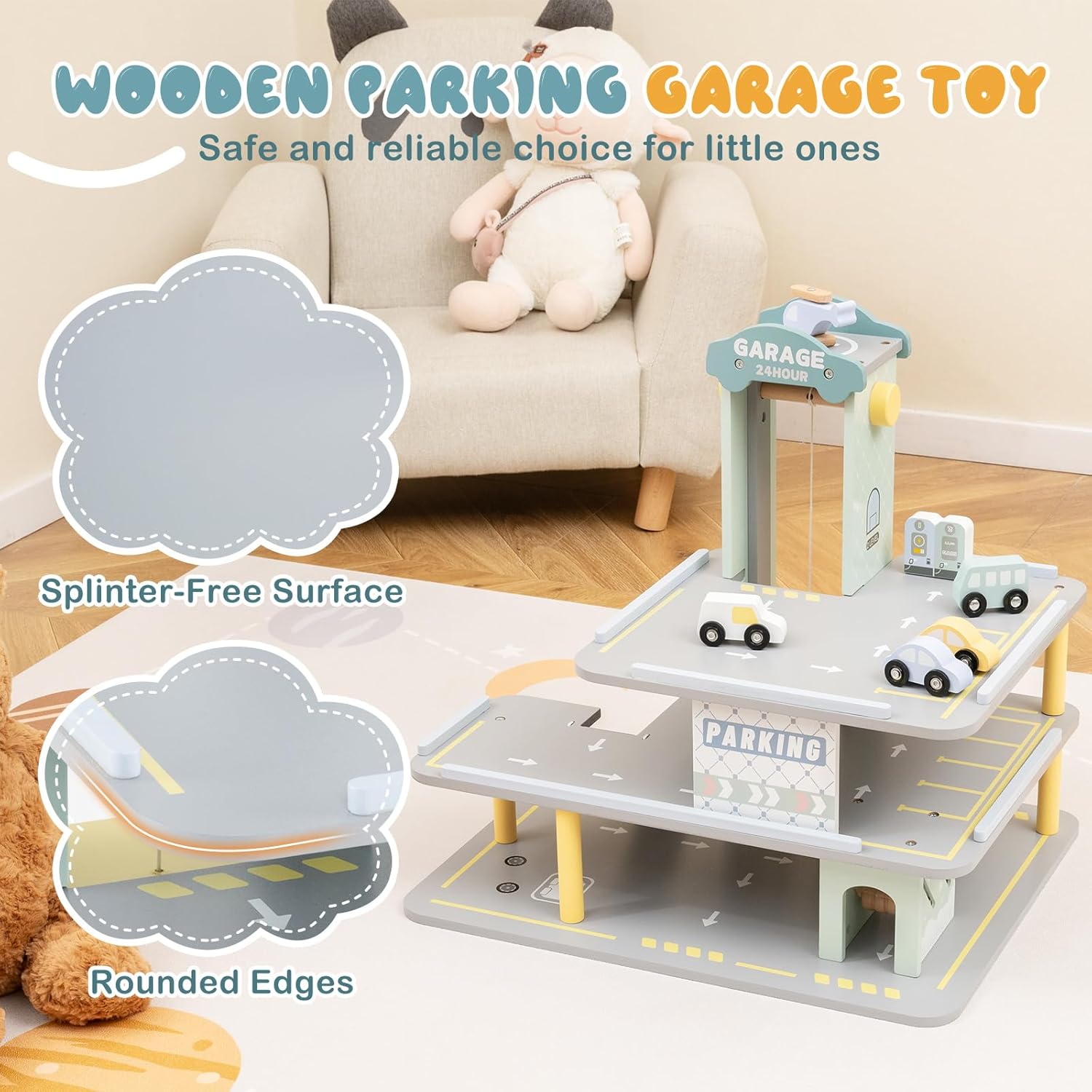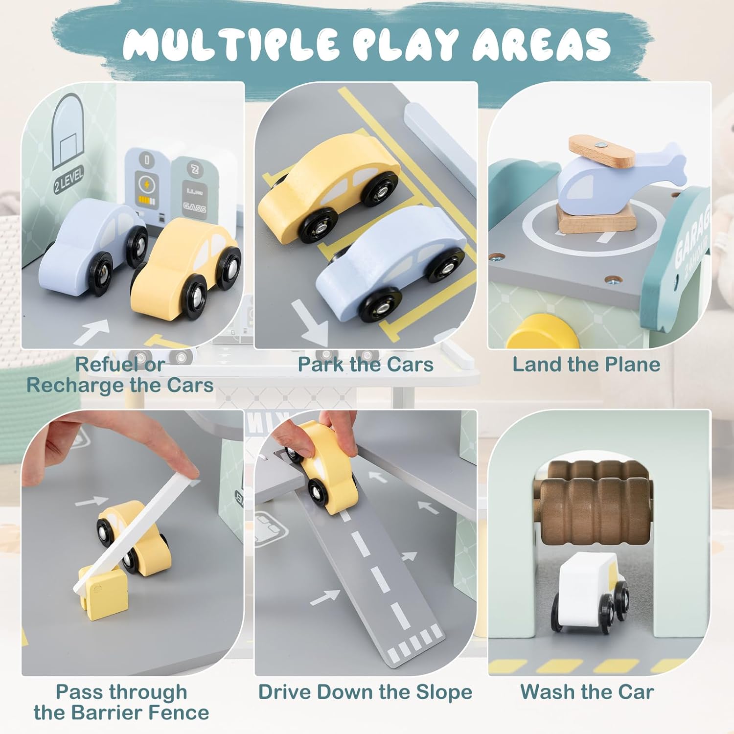 INTERATTIVITÀ MULTIPLO: Il garage macchine per bambini ha diverse funzioni interattive, come ascensore automatico, eliporto girevole, rampa a più livelli e ostacoli divertenti per consentire ai bambini di esplorare e creare, assicurando che il loro tempo di gioco sia pieno di divertimento e sorprese SICUREZZA E PROTEZIONE: Questo parcheggio macchinine per bambini è progettato pensando alla sicurezza dei bambini, con una superficie liscia e senza schegge e bordi arrotondati per la tranquillità dei genitori. I bambini possono giocare liberamente e divertirsi senza preoccupazioni ESPERIENZA DI GIOCO: Anche il garage per auto per bambini è ambientato con funzioni della vita reale, come il lavaggio auto, il carico e la stazione di rifornimento di carburante, stimolando l'immaginazione dei bambini e permettendo loro di sperimentare il divertimento della vita quotidiana in un ambiente coinvolgente. Imitando scenari della vita reale, sviluppa le capacità pratiche e sociali dei bambini VALORE EDUCATIVO: Questo garage macchine per bambini in legno non solo offre intrattenimento ai bambini, ma promuove anche sottilmente lo sviluppo delle loro capacità globali. I bambini possono imparare giocando, migliorare la coordinazione, le abilità sociali, ecc., gettando le basi per il loro sviluppo futuro AMPIA APPLICABILITÀ: Questo garage auto per esterno multifunzionale è adatto a una varietà di ambienti interni ed esterni, come asili, soggiorni e aule. Indipendentemente da dove viene utilizzato, può portare gioia e opportunità di apprendimento ai bambini, che è una scelta di giocattolo sicura e affidabile