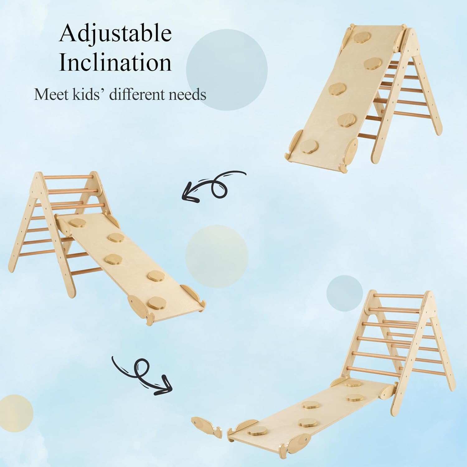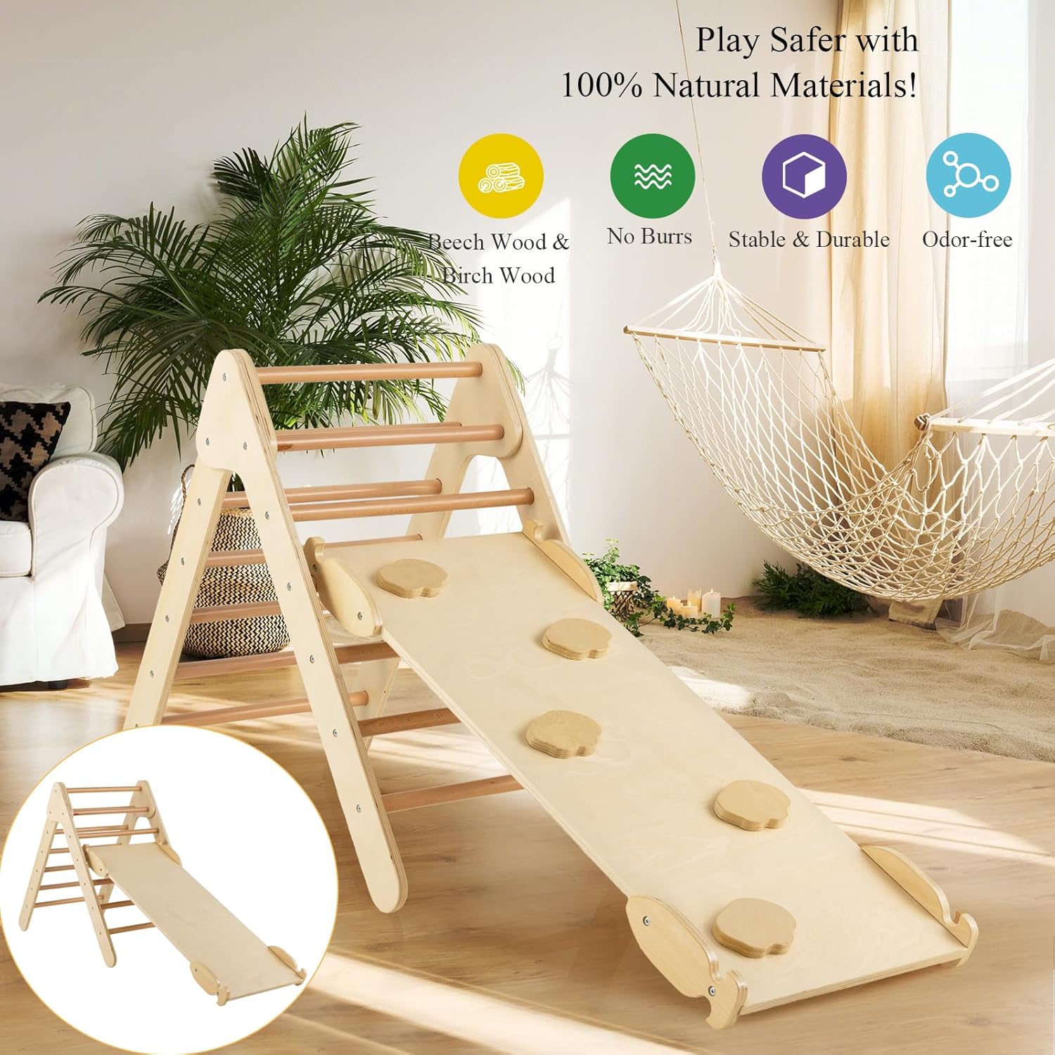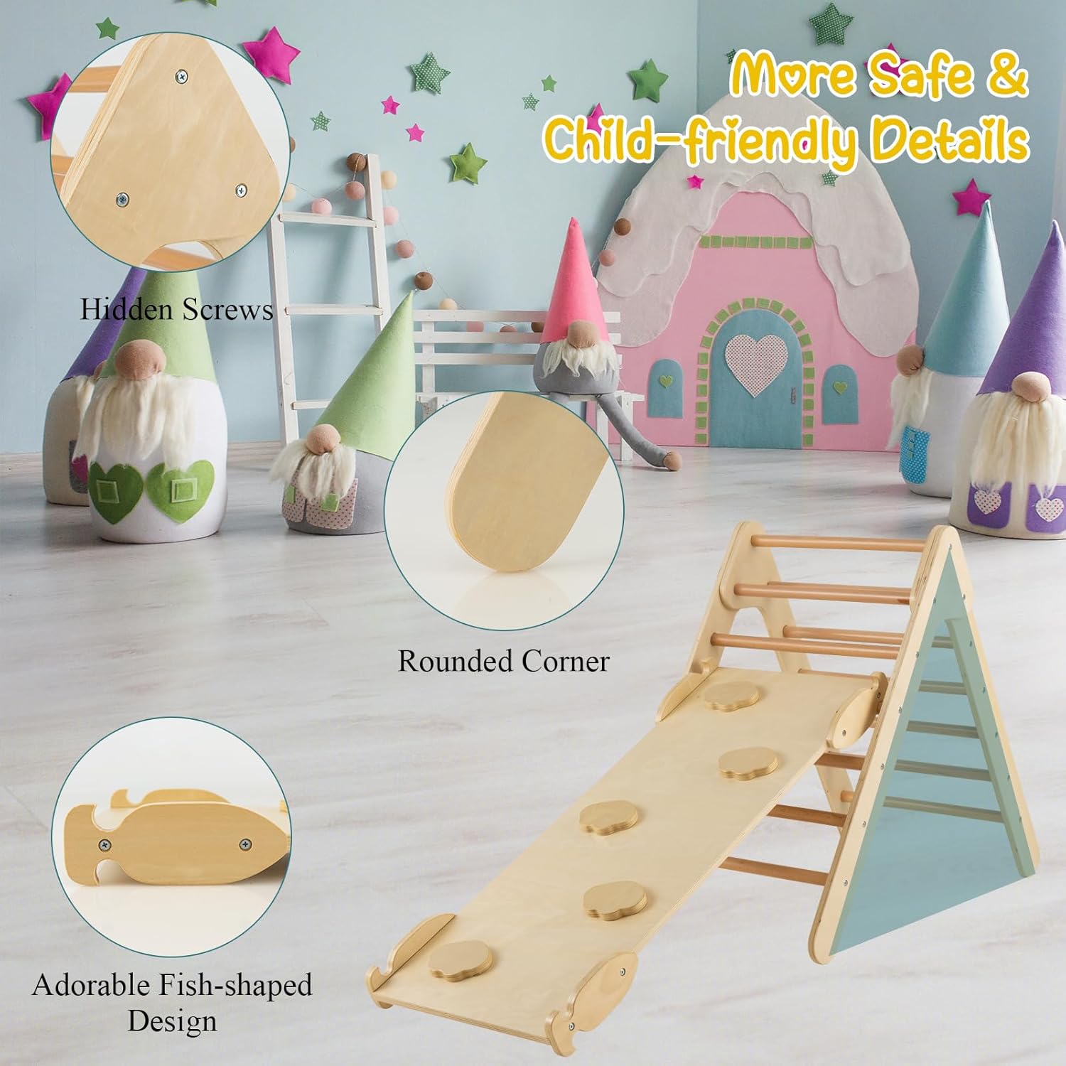 🎁~Design multifunzionale~ Questo triangolo da arrampicata per bambini ha un design 3 in 1, che combina le funzioni di arrampicata, scivolo e palestra per la casa, creando un'esperienza di gioco colorata per far divertire i bambini al massimo. 🎁~Rampa regolabile~ La rampa ha un design unico per agganciarsi saldamente ai pali per scivolare e arrampicare senza ostacoli. Le pendenze reversibili possono essere posizionate alte, medie o basse a seconda delle diverse esigenze dei bambini, offrendo sfide di difficoltà diverse ai bambini e incoraggiando la loro crescita e sviluppo. 🎁~Sicuro e stabile~ Abbiamo scelto un materiale sicuro di legno massiccio per rendere questo parco giochi bambini interno resistente e inodore. Viti nascoste, angoli arrotondati e superfici prive di sbavature proteggono i bambini dai graffi, dando tranquillità ai genitori e serenità ai bambini nel giocare. 🎁~Regalo perfetto~ Questo scivolo per bambini in legno viene fornito con istruzioni dettagliate e materiali, in modo che i genitori possano costruirlo facilmente, rendendolo un ottimo regalo per i bambini. Arrampicandosi e scivolando, non solo promuove lo sviluppo dell'equilibrio e delle abilità motorie, ma crea anche momenti divertenti per i bambini. 🎁~Facile installazione~ Dotato di manuale utente e tutti gli accessori, i genitori possono montare rapidamente tutte le parti. Questa scala montessoriana per bambini con rampa a doppia faccia è perfetta per le famiglie e offre ai bambini uno spazio di gioco sicuro e divertente.