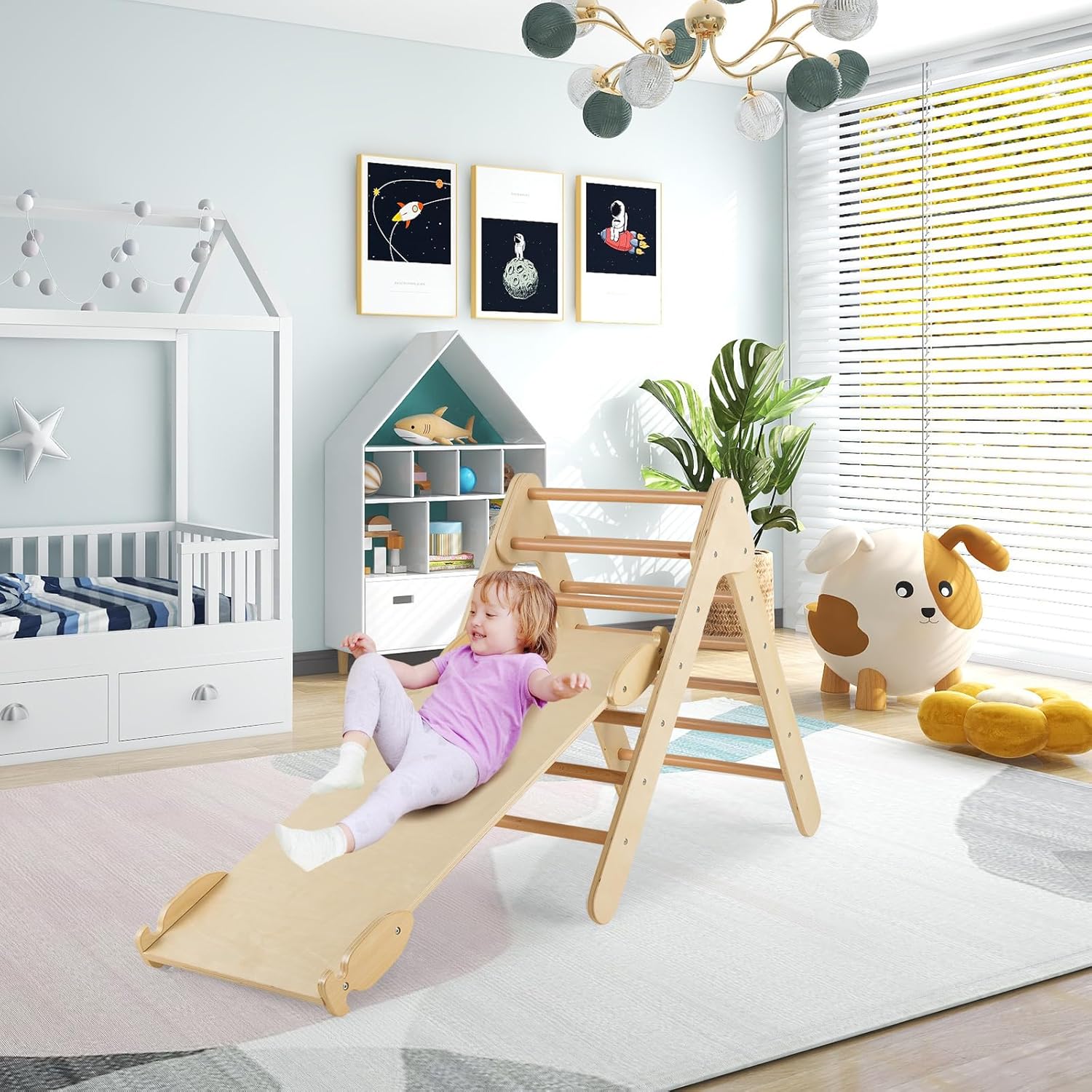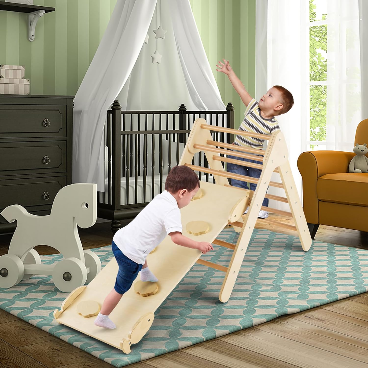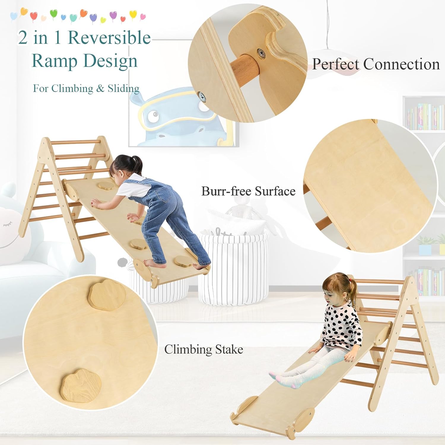 🎁~Design multifunzionale~ Questo triangolo da arrampicata per bambini ha un design 3 in 1, che combina le funzioni di arrampicata, scivolo e palestra per la casa, creando un'esperienza di gioco colorata per far divertire i bambini al massimo. 🎁~Rampa regolabile~ La rampa ha un design unico per agganciarsi saldamente ai pali per scivolare e arrampicare senza ostacoli. Le pendenze reversibili possono essere posizionate alte, medie o basse a seconda delle diverse esigenze dei bambini, offrendo sfide di difficoltà diverse ai bambini e incoraggiando la loro crescita e sviluppo. 🎁~Sicuro e stabile~ Abbiamo scelto un materiale sicuro di legno massiccio per rendere questo parco giochi bambini interno resistente e inodore. Viti nascoste, angoli arrotondati e superfici prive di sbavature proteggono i bambini dai graffi, dando tranquillità ai genitori e serenità ai bambini nel giocare. 🎁~Regalo perfetto~ Questo scivolo per bambini in legno viene fornito con istruzioni dettagliate e materiali, in modo che i genitori possano costruirlo facilmente, rendendolo un ottimo regalo per i bambini. Arrampicandosi e scivolando, non solo promuove lo sviluppo dell'equilibrio e delle abilità motorie, ma crea anche momenti divertenti per i bambini. 🎁~Facile installazione~ Dotato di manuale utente e tutti gli accessori, i genitori possono montare rapidamente tutte le parti. Questa scala montessoriana per bambini con rampa a doppia faccia è perfetta per le famiglie e offre ai bambini uno spazio di gioco sicuro e divertente.