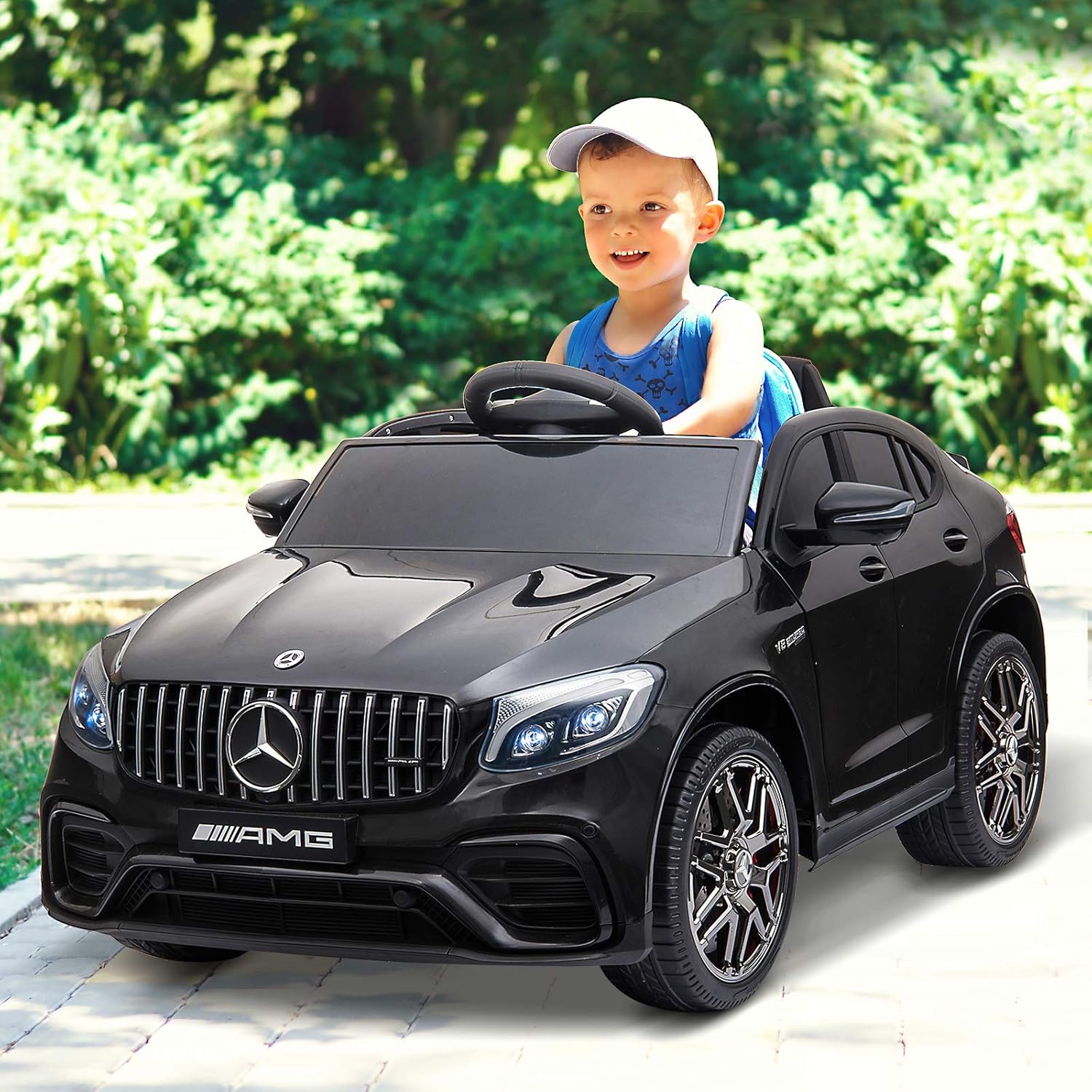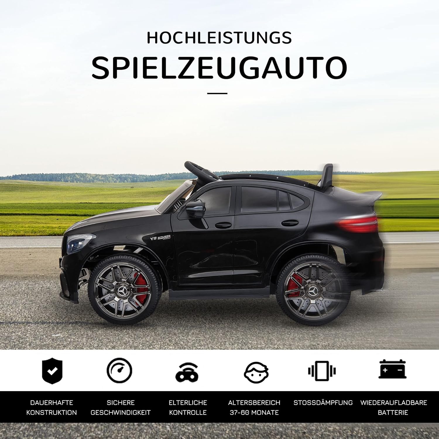 LA SICUREZZA PRIMA DI TUTTO: L'auto per bambini con licenza Mercedes-Benz AMG GLC63S COUPE ha comodi sedili ed è dotata di cintura di sicurezza. C'è anche un telecomando che tu come genitore puoi usare per controllare l'auto dall'esterno. DIVERTIMENTO DI GUIDA PIÙ LUNGO: quando la batteria è completamente carica (8-12 ore), l'auto per bambini può guidare per 1 ora. Il display LCD sul cruscotto mostra il livello attuale della batteria. Il sedile e i pneumatici sono realizzati in plastica, che è completamente salutare per i bambini ed è anche resistente e durevole. GRANDE REGALO: questo è un regalo meraviglioso per ragazzi e ragazze in tutte le occasioni come Natale, compleanno, rientro a scuola, ecc. ESPERIENZA DI GUIDA REALISTICA: L'auto elettrica può andare avanti e indietro, ha due porte, fari, luci posteriori, clacson e cruscotto. La musica può essere riprodotta tramite una connessione USB. DATI DEL PRODOTTO: Dimensioni: L115 x P70 x H55 cm, adatto a bambini dai 2,5 ai 5 anni.