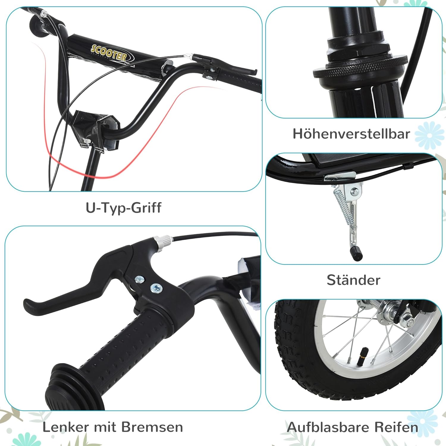 | Caratteristiche | Altezza del manubrio regolabile, Doppio sistema frenante, Leggero, Pedana antiscivolo, Pedana larga |