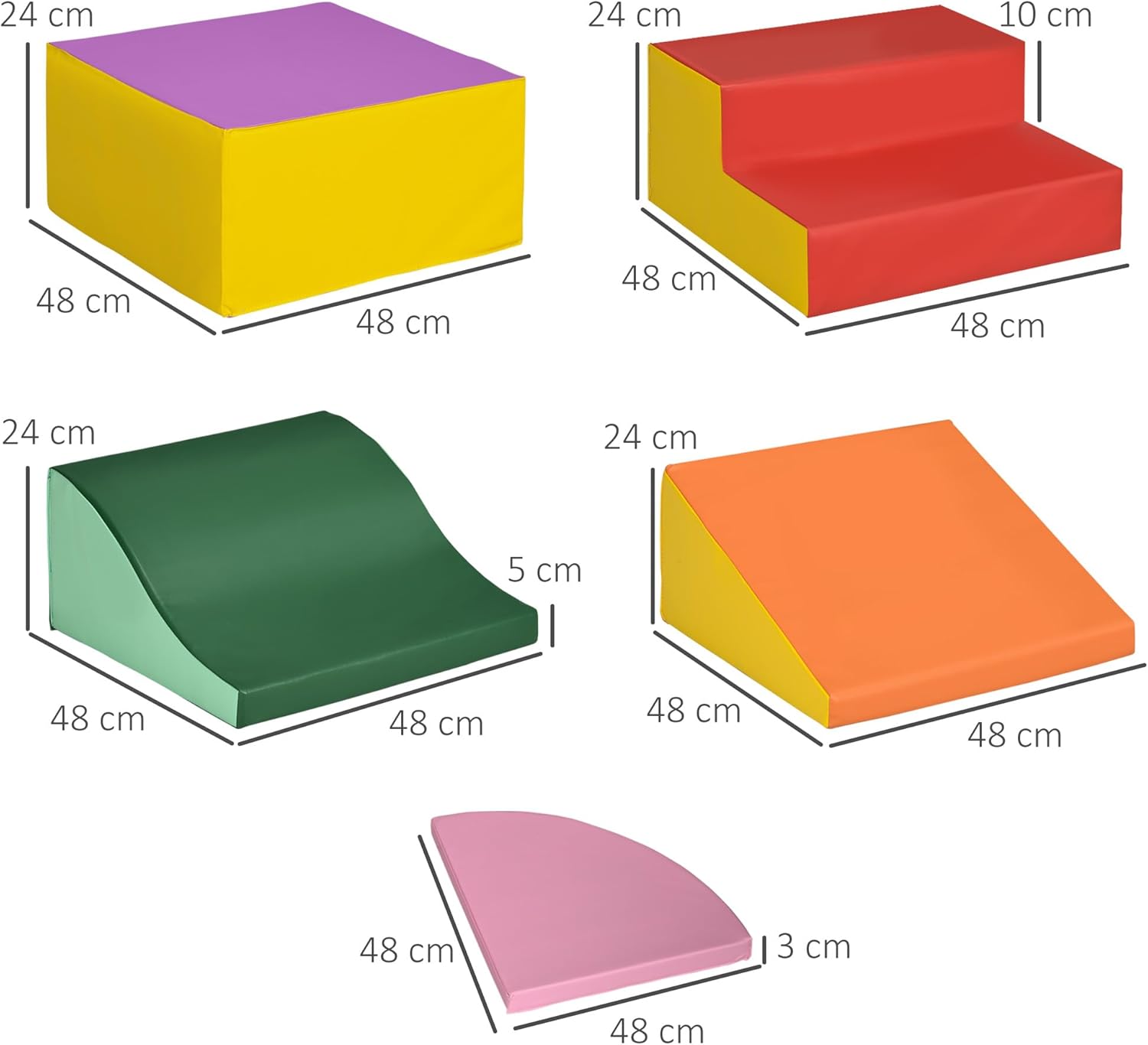 SET EDUCATIVO: Potenzia il riconoscimento di colori e forme nei bambini con questo set di 6 blocchi morbidi, l'ideale per stimolare l'immaginazione nei più piccoli attraverso la costruzione e il movimento (correre, gattonare, stare in equilibrio ecc.) GIOCO SICURO: Ogni blocco del gioco per bambini è realizzato in PU e riempito di schiuma ad alta densità che mantiene la forma e rimane salda in posizione, mentre le cuciture a strappo mantengono assieme i pezzi ACCESSORI INCLUSI: Queste costruzioni morbide per bambini includono diverse forme come cubi, scale, rampe, contorni e discese, creando un insieme perfetto per offrire attività fisiche sicure quali correre, saltare e gattonare su superfici soffici FACILI DA PULIRE: I rivestimenti dei blocchi del gioco per bambini si possono pulire velocemente con un semplice panno umido. Si raccomanda di rimuovere le scarpe per preservarne l'usura DIMENSIONI: Quadrato: 48L x 48P x 24A cm. Scala: 48L x 48P x 24A cm. Rampa: 48L x 48P x (5+24)A cm. Contorno: 48L x 48P x 3A cm. Discesa: 48L x 48P x 24A cm. Indicato per bambini da 1 a 3 anni, con una capacità di peso di 60 kg. Montaggio non richiesto