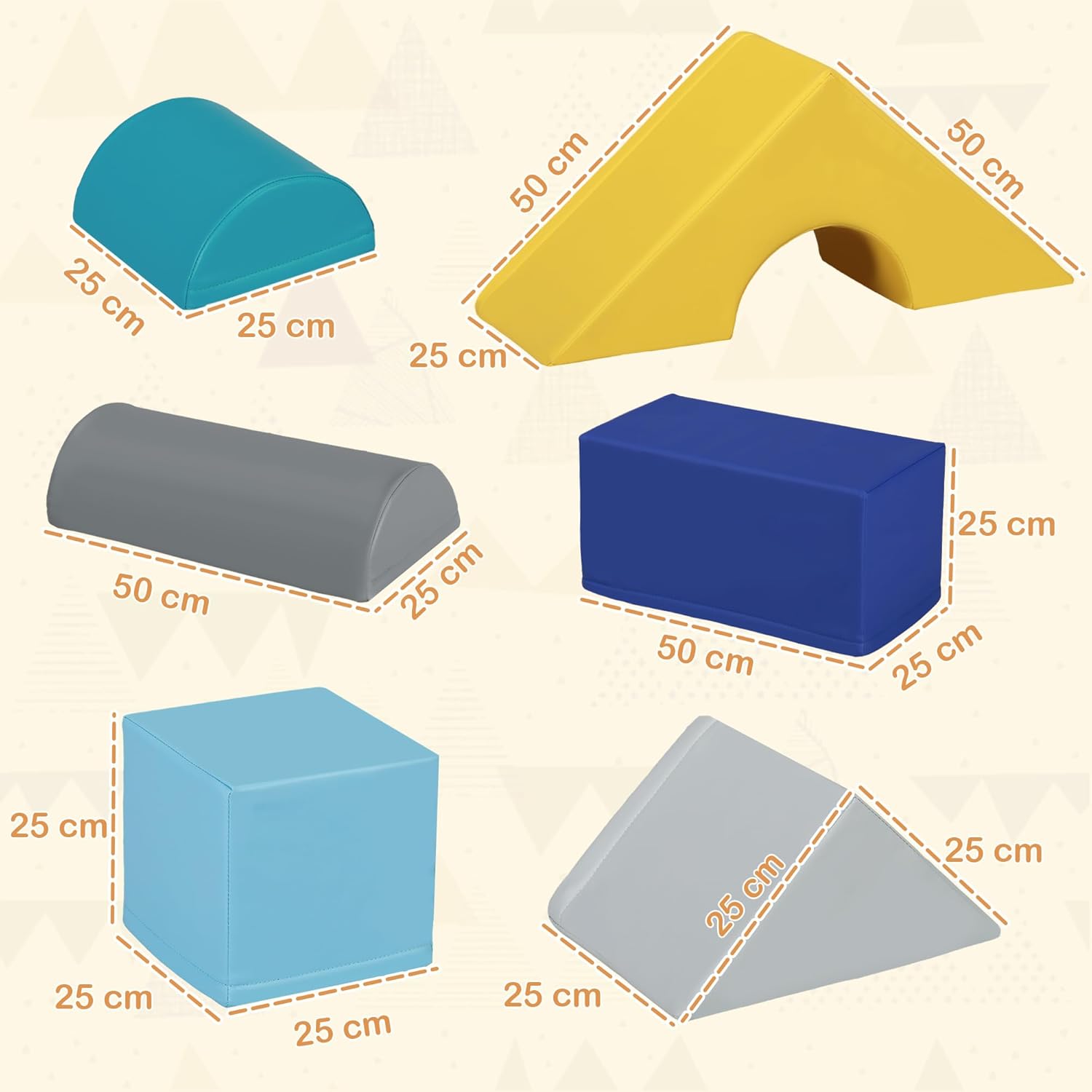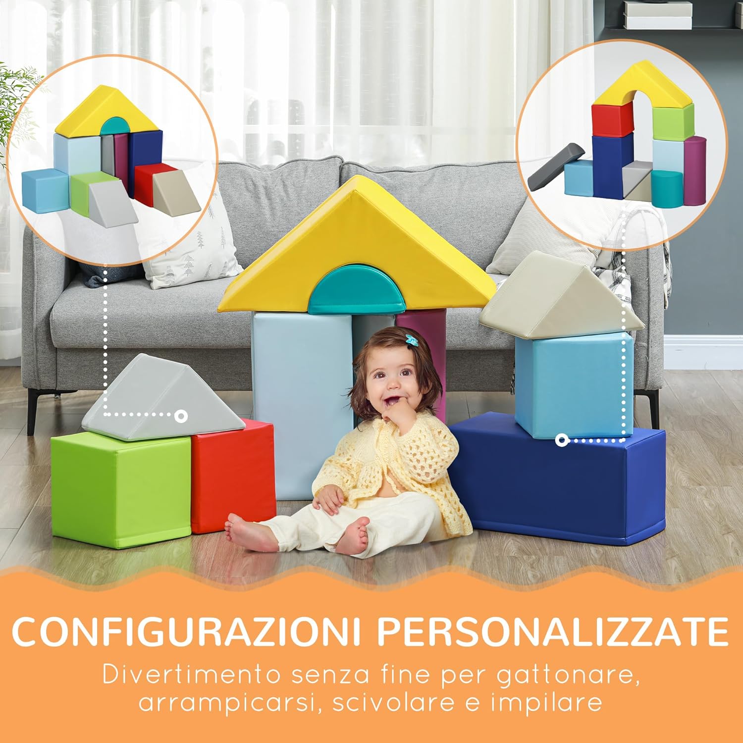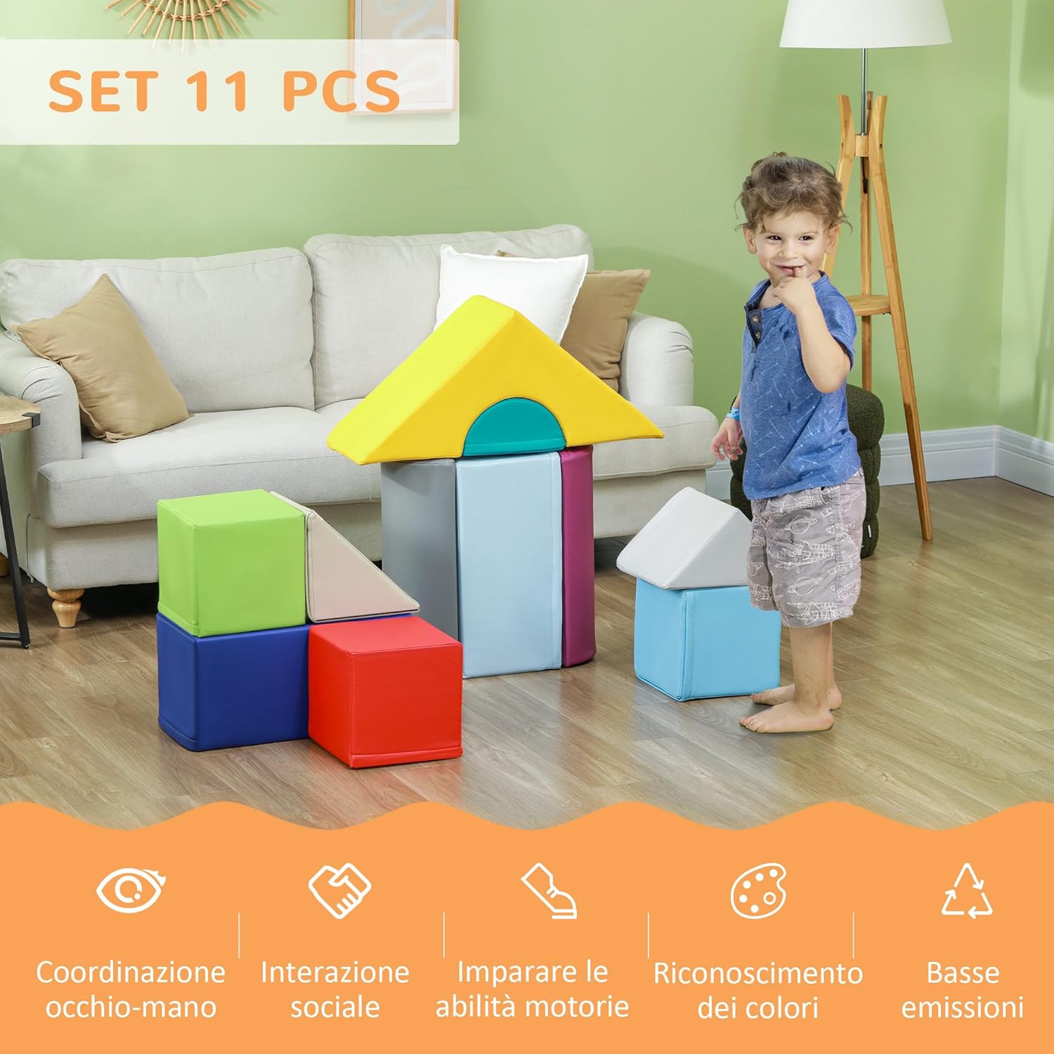 DIVERTIMENTO ASSICURATO: Questo colorato gioco per bambini comprende 2 mezzi cilindri, 2 piccoli triangoli, un grande triangolo, un piccolo mezzo cilindro, 2 rettangoli e 3 quadrati, l'ideale per divertirsi in totale sicurezza SET DA 11 PEZZI: Stimola il riconoscimento dei colori e delle forme geometriche nei tuoi bambini con questo set di 11 costruzioni morbide in schiuma, perfetto per stimolare l'immaginazione e la creatività fin dalla tenera età USO VERSATILE: Trasforma la tua camera da letto, l'asilo o la stanza dei giochi in un ambiente ricco di divertimento e stimoli con le nostre costruzioni morbide per bambini in schiuma per creare nuove forme e oggetti FACILE DA PULIRE E SICURO: Le coperture dei nostri giochi per bimbi possono essere facilmente pulite con una salvietta umida. Per preservare le cuciture, è consigliato che i bambini si tolgano le scarpe prima di giocare DIMENSIONI: Cuboide: 25L x 25P x 50A cm. Cubo: 25L x 25P x 25A cm. Piccolo triangolo rettangolo: 25L x 25P x 25A cm. Grande triangolo rettangolo: 50L x 50P x 25A cm. Piccolo cilindro: Ø25 x 25L cm. Grande cilindro: Ø25 x 50L cm. Nessun montaggio richiesto