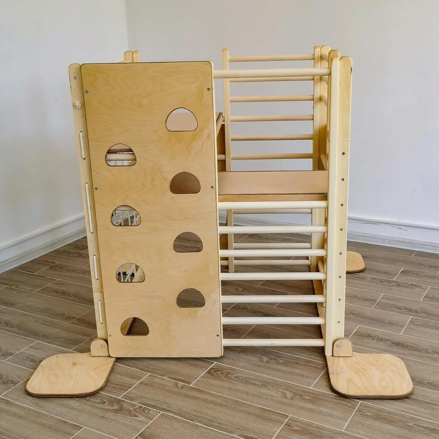 COSTRUZIONE PREMIUM Realizzato in legno di alta qualità e durevole per garantire longevità e sicurezza. Pieghevole e salvaspazio Il rampicante presenta un comodo design pieghevole che lo rende facile da riporre quando non è in uso, ideale per le case con spazio limitato. SCELTA DI TAVOLE ACCESSORIE - Migliora il tempo di gioco del tuo bambino con le nostre tavole accessorie. Le tavole offrono ulteriori sfide e varietà, promuovendo le abilità motorie e la coordinazione. Ispirato al metodo Montessori: Incoraggia il gioco indipendente e lo sviluppo fisico, supporta la creatività e la fiducia in sé stessi. Età consigliata: Progettato per bambini da 1 a 7 anni, si raccomanda la supervisione di un adulto durante l’uso.