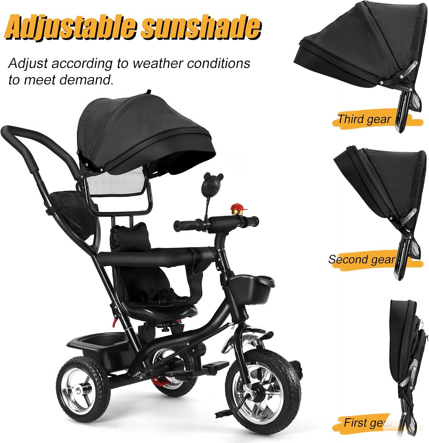 FACILE INSTALLAZIONE - Facile da montare in pochi passaggi per un utilizzo immediato e un'esperienza utente ottimale. Adattabilità in più fasi: Progettato per crescere con il tuo bambino, offre tre modalità (passeggino, assistenza alla guida, guida libera) a seconda dell'età. Sicurezza e comfort: tettuccio di protezione UV regolabile in tre direzioni, schienale rialzato ventilato e barriera completa per la massima protezione. Ruote ammortizzanti airless: dotate di ruote in schiuma antiscoppio, antiscivolo e durevoli, esenti da manutenzione. Pratico spazio di archiviazione: cestino anteriore e ampio e spazioso cestino posteriore per trasportare facilmente gli oggetti del bambino.