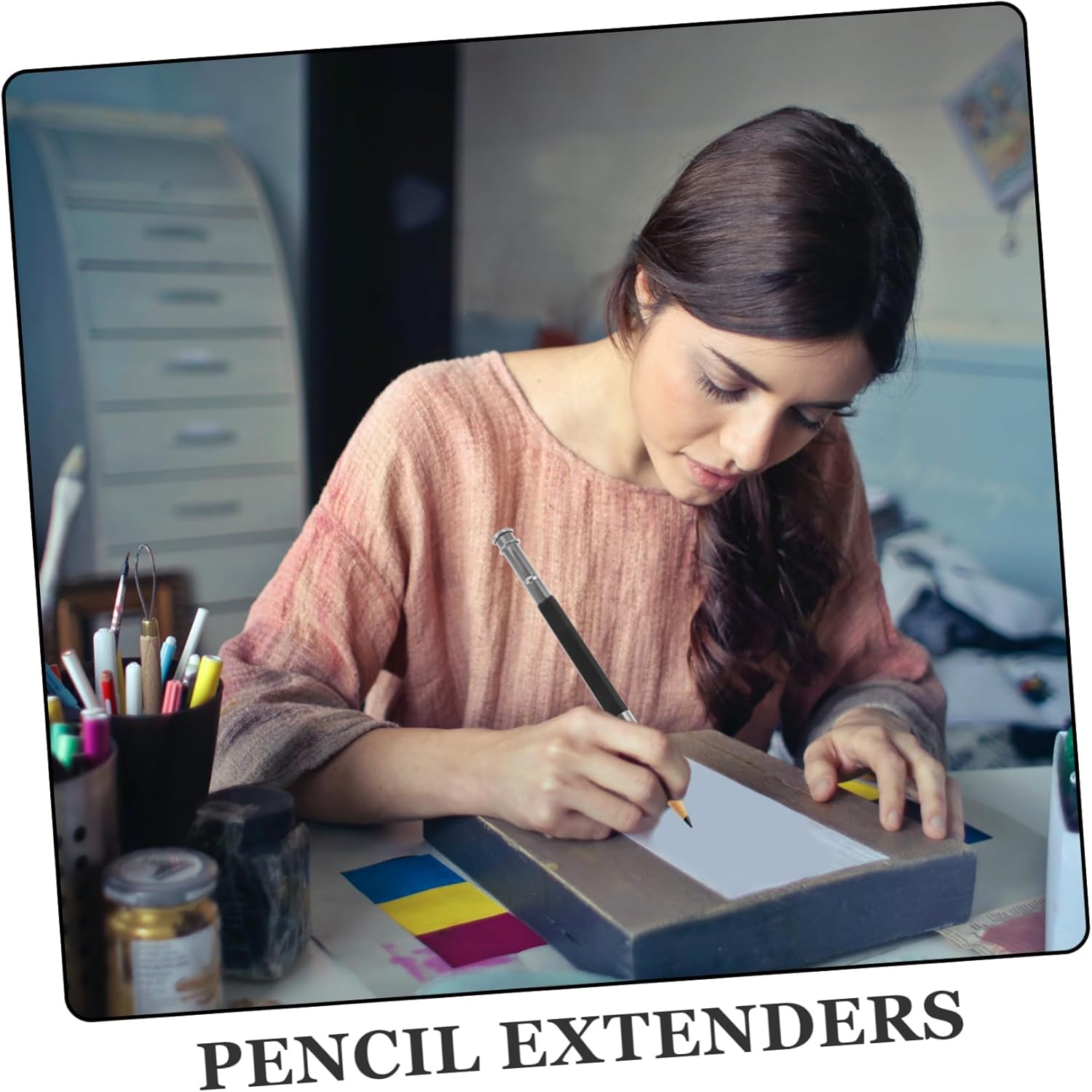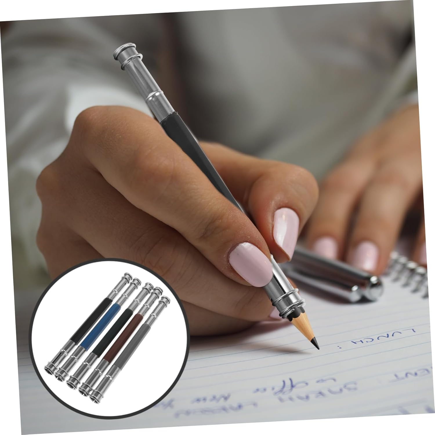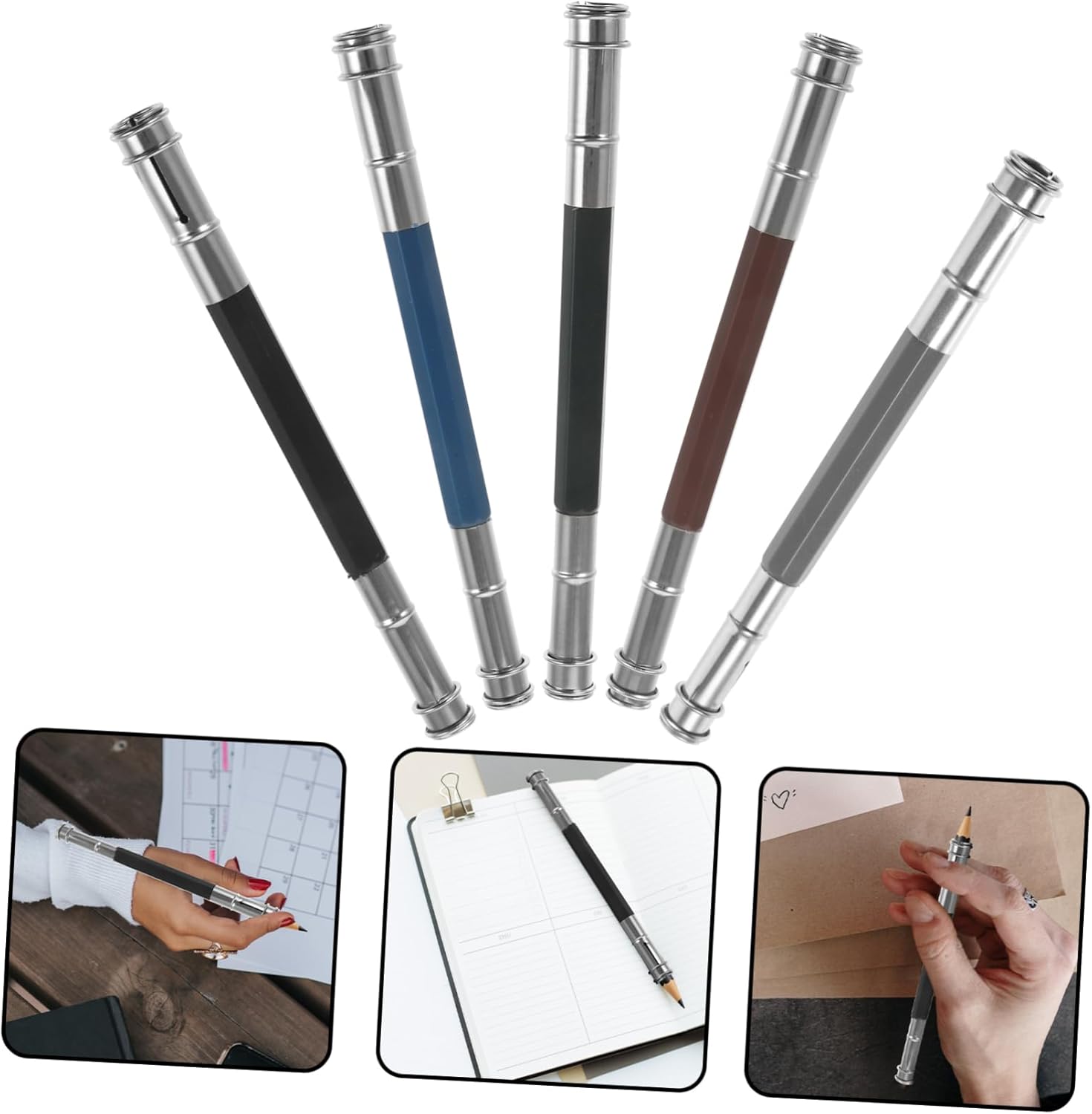 Estensori per matite: sono facili da applicare, basta inserire la matita troppo corta in questo supporto, quindi stringerlo ed è pronto all'uso, accessorio per matite Porta prolunga per matita: il design intelligente lo rende un metodo di funzionamento semplice, risparmiando, prolunga per matita Strumento di estensione per matita: realizzato in metallo, questo estensore per matita ha un'eccellente consistenza e puoi usarlo con sicurezza, estensore per disegno Porta-estensore per matite: leggero e comodo, portatile e scorrevole, attraente e conveniente, sembra una normale matita quando la usi, estensore per matite Estensione per portapenne corta: progettata appositamente per matite colorate, è robusta e durevole, non si rompe facilmente e può essere utilizzata con sicurezza, asta di prolunga per matite
