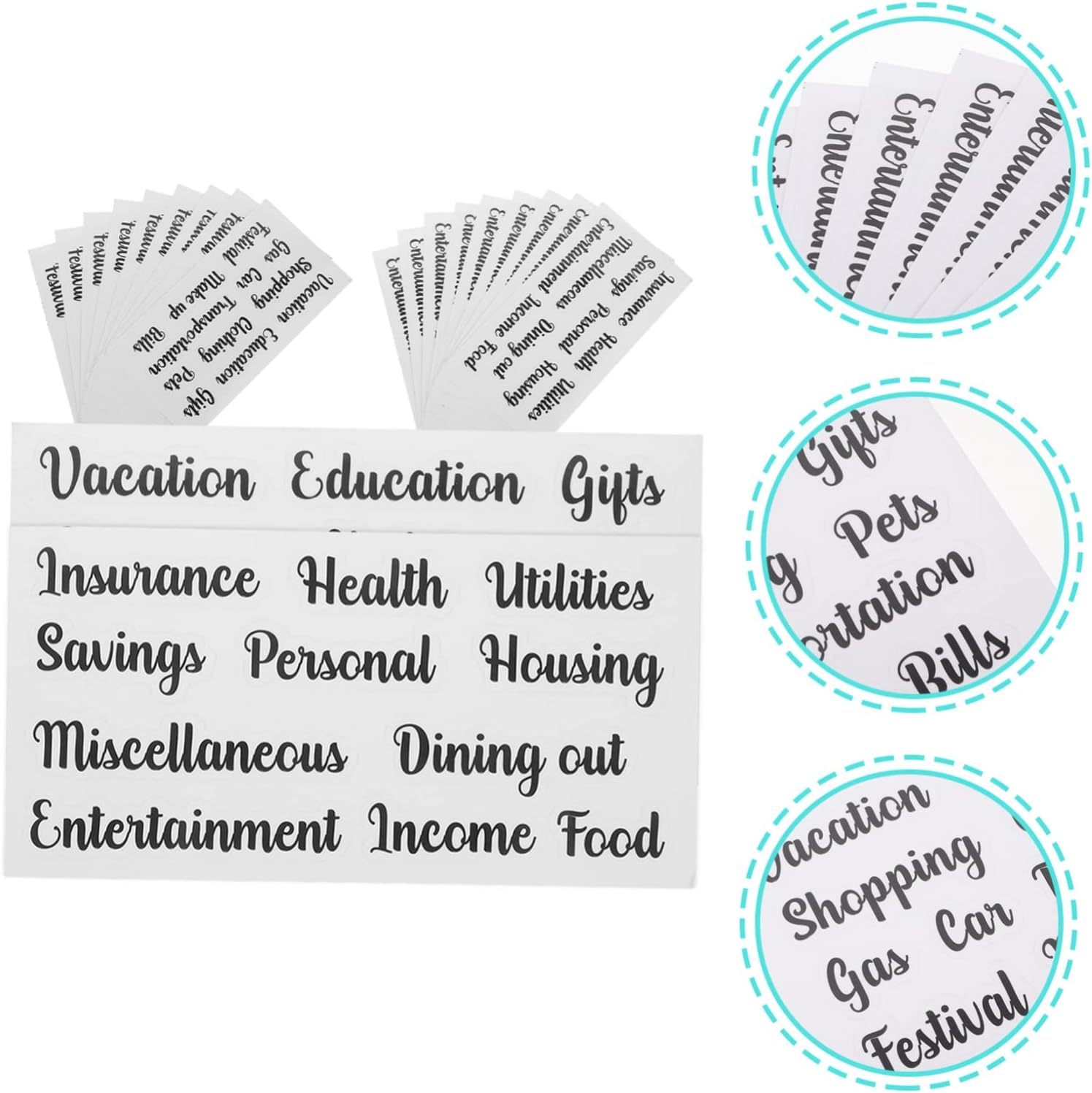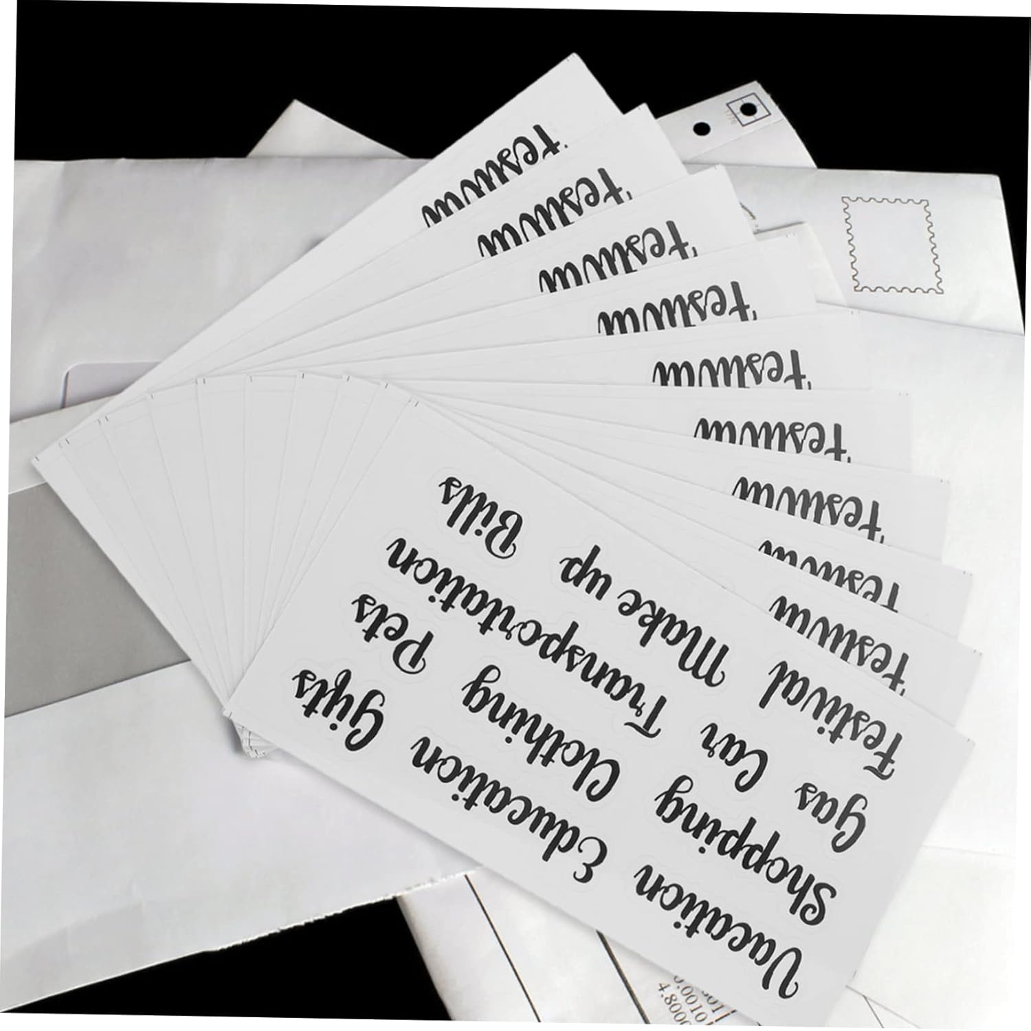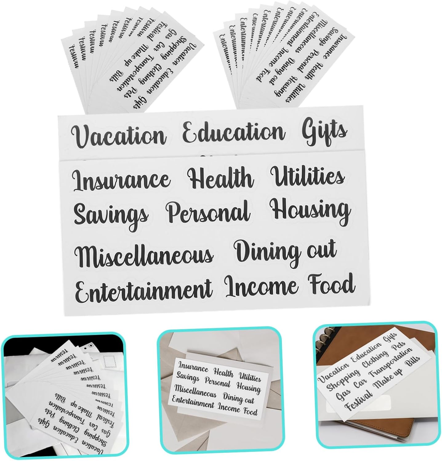 Accessorio : questi adesivi per buste porta-contanti sono realizzati in materiale che può essere utilizzato come etichetta economica per l'uso quotidiano. Etichette autoadesive per buste porta-contanti: ti aiutano a gestire i fondi e possono anche essere pratiche come adesivi portatili per il budget. Etichette compatte per buste porta-contanti: aiutano a distinguere gli articoli del budget, ti aiutano a gestire i tuoi articoli, accessorio per l'etichettatura Adesivo per budget domestico: con un design di pregevole fattura, può garantire la sua durata e praticità, adesivo compatto Etichetta economica multifunzione: con le dimensioni compatte e il design leggero, può essere facile da prendere e riporre, etichetta adesiva portatile