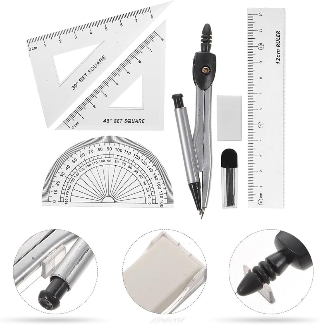 Utilizzo conveniente: garantisce un'esperienza di disegno ed efficiente, eliminando la necessità di affilatura costante, kit da disegno, bussola per geometria Comodo da trasportare: leggero e portatile, è molto comodo da portare ovunque tu voglia, bussola per la lavorazione del legno, bussola da disegno Set completo per disegno e misurazione: questo set include un compasso, un goniometro e vari righelli, fornendo tutti gli strumenti essenziali per un disegno e una misurazione accurati, goniometro per la scuola, forniture per l'architettura Gomma incorporata: dotato di una gomma incorporata, questo set ti consente di correggere facilmente gli errori, assicurandoti che i tuoi disegni siano sempre accurati e puliti, goniometro per lavorazione del legno, geometria del compasso Uso multiuso: adatto a studenti, insegnanti, architetti e ingegneri, questo set versatile è adatto a una di applicazioni, progetti scolastici disegno professionale, strumento di disegno a compasso, goniometro e compasso