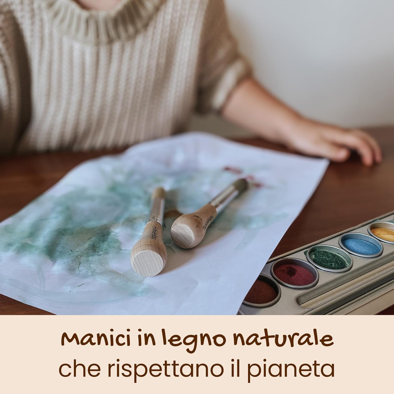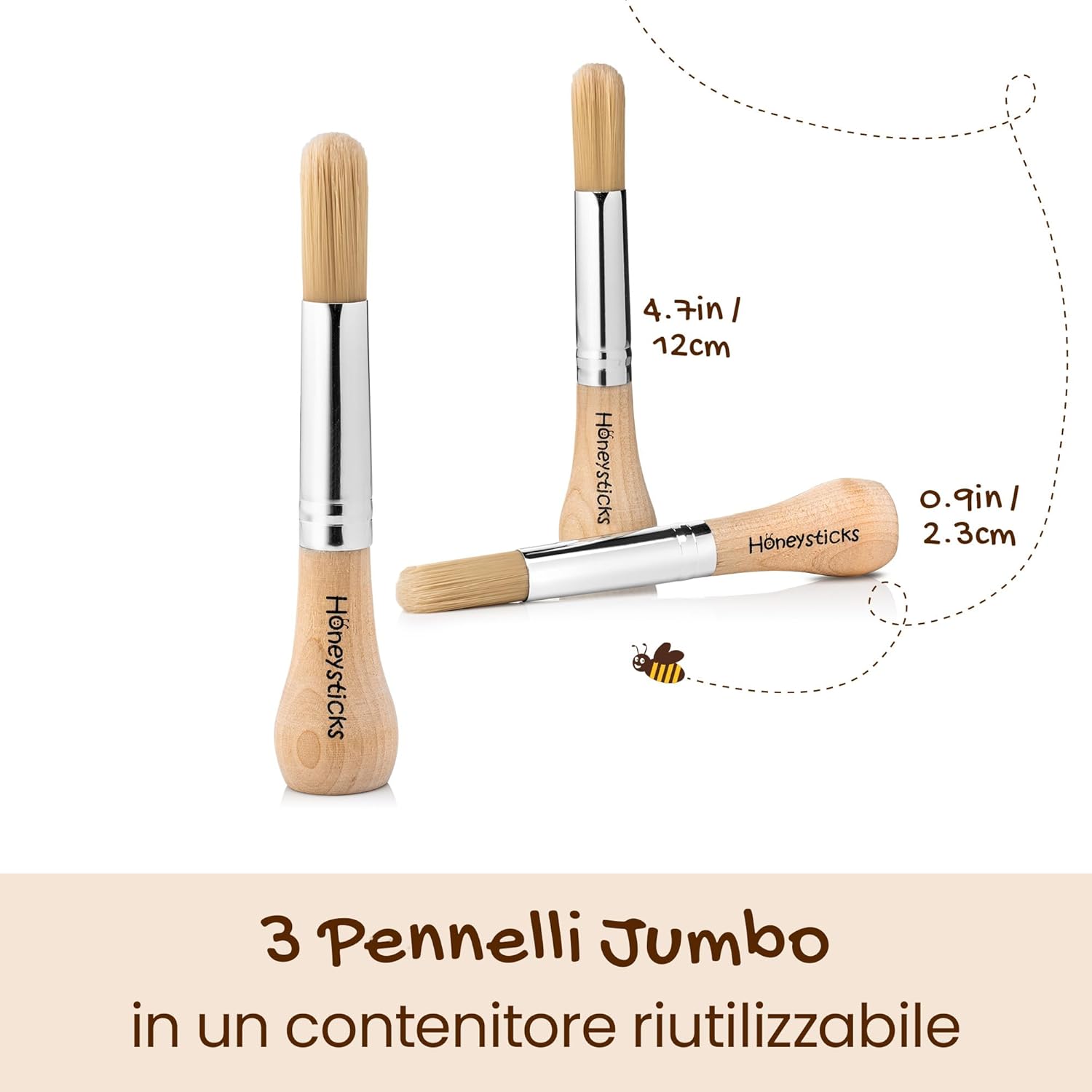 PRIMO PENNELLO PERFETTO - Honeysticks Il mio primo set di pennelli per dipingere è il primo pennello ideale per neonati e bambini dai 1 ai 3 anni. L'impugnatura ergonomicamente progettata aiuta i piccoli ad avere un migliore controllo del pennello rispetto ai pennelli di dimensioni normali, per un'ottima esperienza di pittura. CREA MERAVIGLIOSI PRIMI MOMENTI D'ARTE - Con un manico di legno grande e robusto, così facile da impugnare e usare per le manine piccole, il Mio primo set di pennelli Honeysticks ti aiuterà a sperimentare piacevoli momenti artistici per il tuo bambino. CONTENITORE PORTATILE ECO-FRIENDLY - I pennelli della linea I miei primi pennelli sono imballati in un contenitore resistente e privo di plastica, che li rende un'ottima aggiunta alle attrezzature per l'arte dei più piccoli! Noi di Honeysticks utilizziamo solo imballaggi riciclabili, riutilizzabili o biodegradabili per garantire che i nostri prodotti siano delicati per il pianeta. SICURI PER BAMBINI E ANIMALI - I pennelli della linea I miei primi pennelli sono realizzati in legno naturale e sono atossici. Utilizziamo setole vegane, senza crudeltà verso gli animali. PROVATELI SENZA RISCHI OGGI - La missione di Honeysticks è quella di produrre articoli sicuri e sostenibili che i bambini amino usare, senza gli ingredienti dannosi che si trovano oggi nella maggior parte dei prodotti.