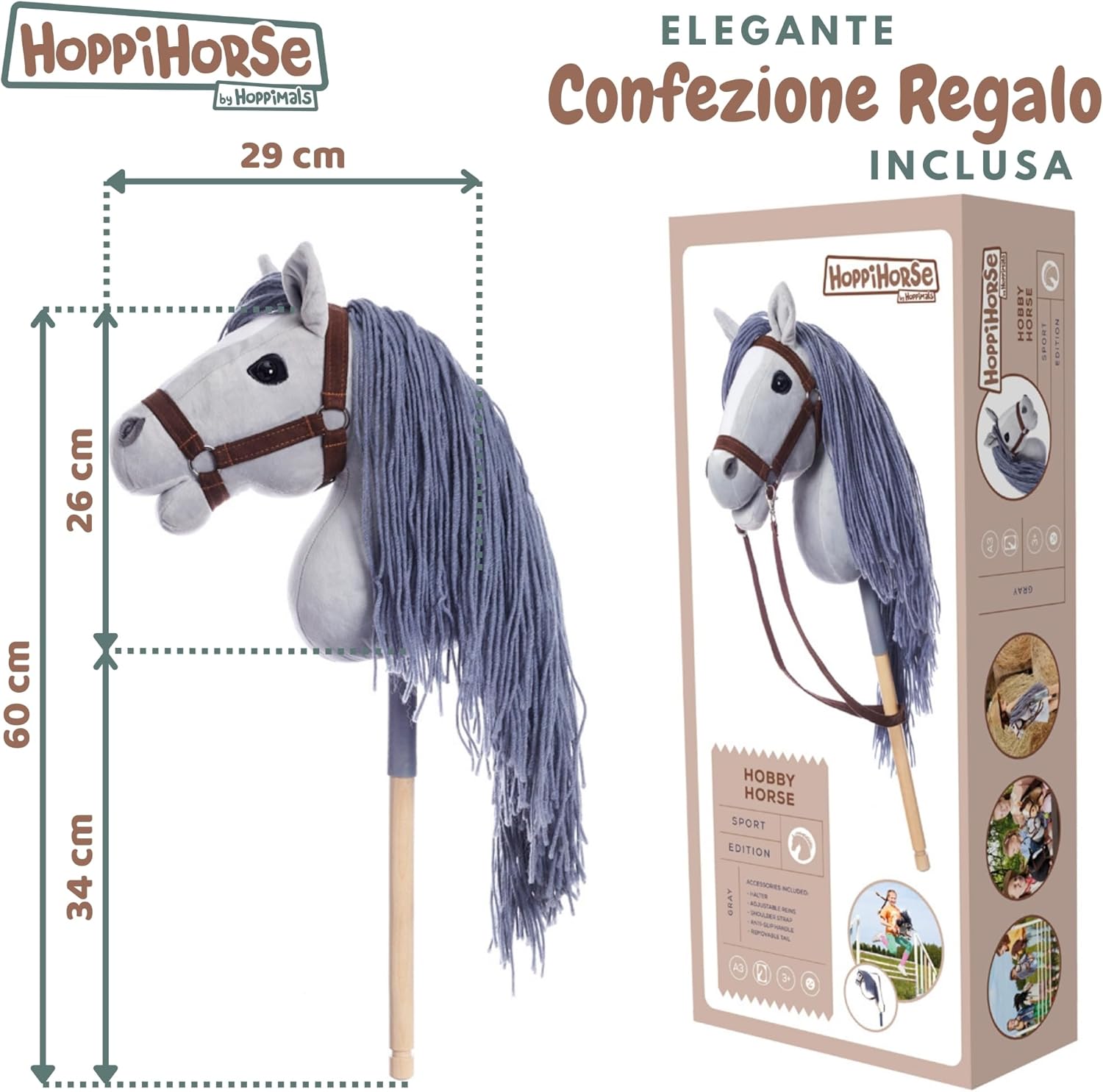 HOBBY HORSING-Hobby Horse realistico creato per questo popolare sport. Permette di simulare l'equitazione, allenarsi nel salto ostacoli e cavalcare. Offre attività fisica e divertimento FUNZIONE RIVOLUZIONARIA: dotato di impugnatura antiscivolo in silicone, che garantisce una presa sicura. Il bastone stabile e di lunghezza ottimale assicura comfort durante il gioco DISPONIBILE IN DUE MISURE: A4 Medium e A3 Large (la testa si adatta più o meno a un foglio di carta A4 o A3). Troverai ulteriori dimensioni nella descrizione nella galleria fotografica ACCESSORI INCLUSI: Hobby Horse è dotato di cavezza e redini regolabili. Il set include anche una tracolla regolabile e rimovibile, che consente di trasportare comodamente il cavallo. Inoltre, è dotato di una coda in peluche divertente e staccabile, che aggiunge stile MATERIALI DI ALTA QUALITÀ: ogni dettaglio è stato accuratamente realizzato con materiali sicuri. Dal velluto morbido e resistente al solido bastone in legno verniciato