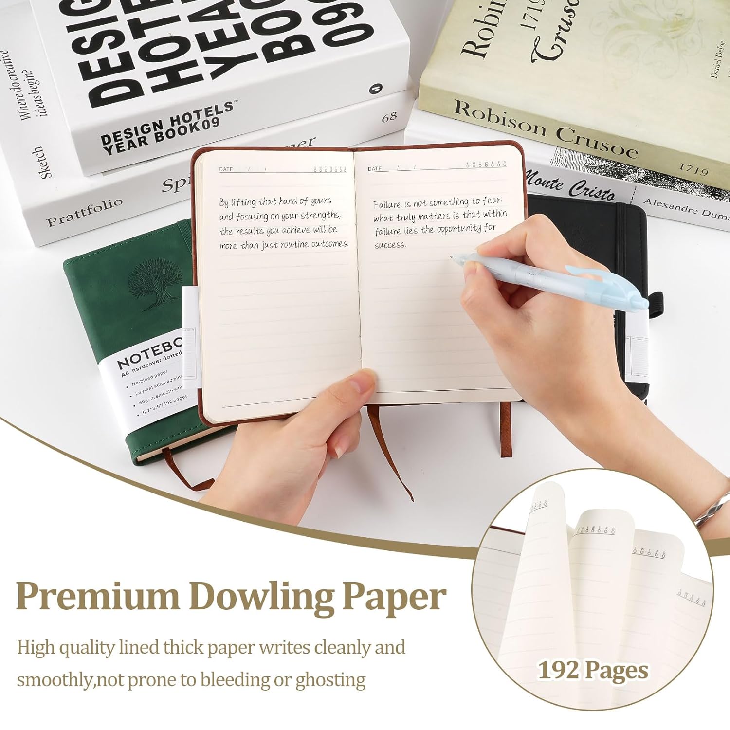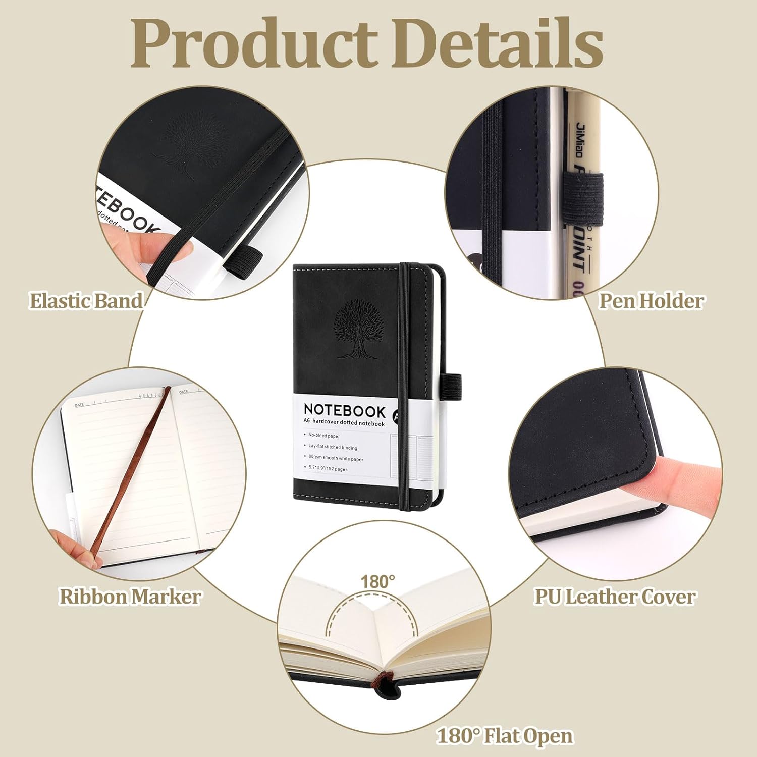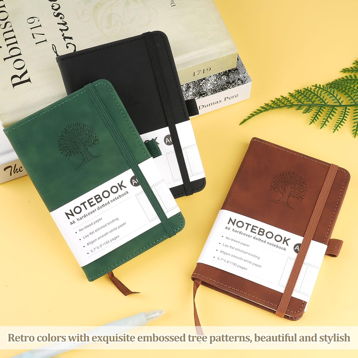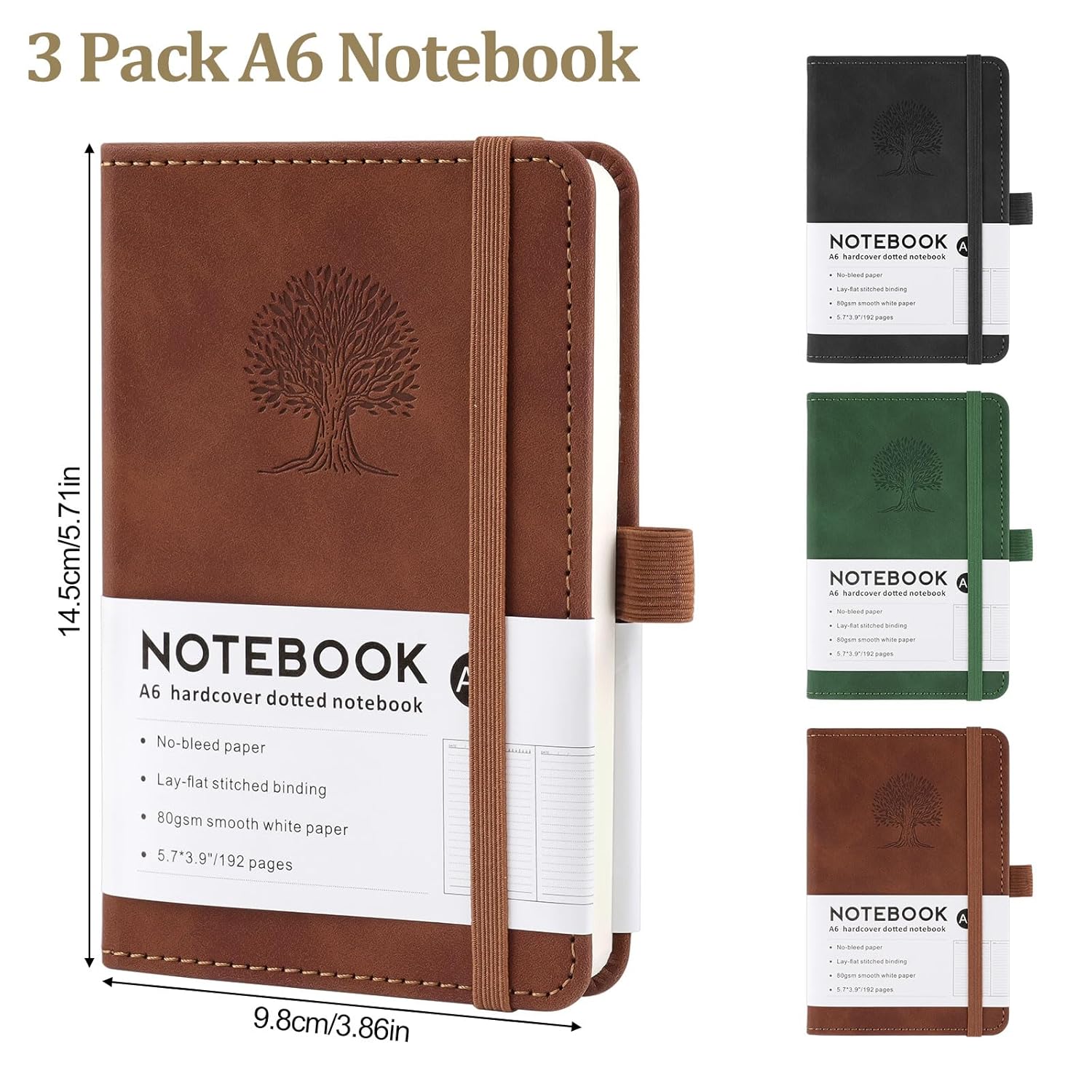 Hopton Taccuino A6 - Taccuino in pelle - Formato A6 - 192 pagine - Taccuino piccolo - Diario di viaggio - Design ad albero in rilievo (Marrone, Verde, Nero) - Confezione da 3
