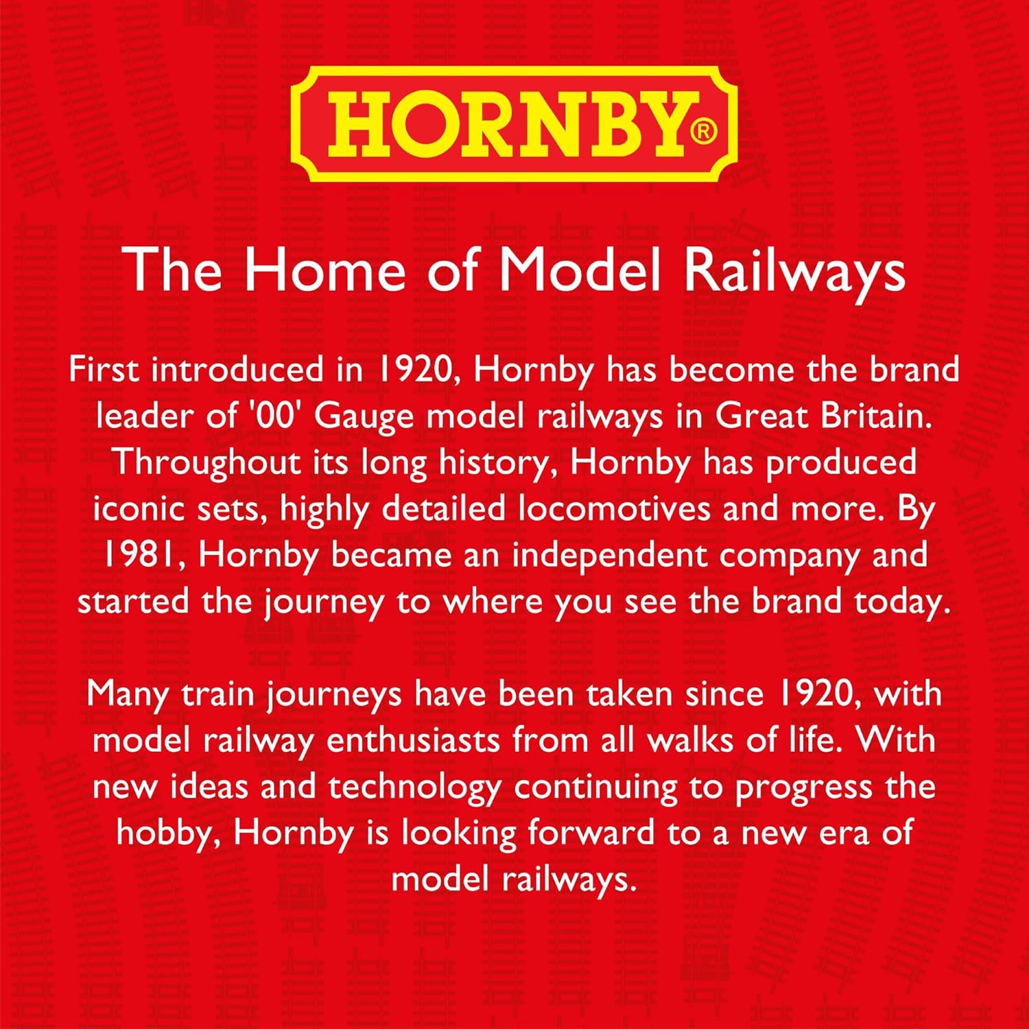 Informazioni su Hornby: In qualità di principale progettista di modellismo ferroviario del Regno Unito, Hornby entusiasma gli appassionati di modellismo da oltre 100 anni; dal 1920 Hornby è il marchio leader nella progettazione di modellini ferroviari in scartamento 00; che tu sia un modellista esperto o che tu abbia appena iniziato il tuo viaggio con le miniature, con la sua gamma di treni, accessori per binari, kit di scenari e altro ancora, c'è sempre qualcosa per te da Hornby Scopri le locomotive Hornby per modellismo ferroviario; qui troverai locomotive a vapore, diesel ed elettriche, oltre a modelli dotati di DCC, predisposti per DCC e analogici 1x carrozza materiale rotabile