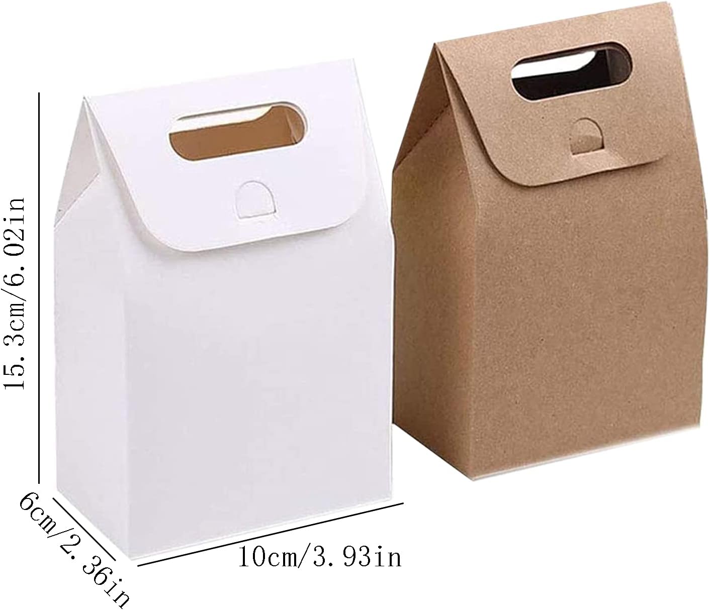 Materiale di alta qualità: il nostro sacchetto di carta portatile realizzato in cartone bianco e carta kraft è sicuro ed ecologico, non tossico e insapore, resistente e opaco e può essere riutilizzato. Facile da fare: i nostri sacchetti di carta portatili devono essere piegati da soli, non preoccuparti, sono facili da montare e utilizzare. REGALI SQUISITI: i sacchetti di carta portatili possono essere utilizzati come regali e piccoli imballaggi per alimenti, rendendo i tuoi regali più squisiti e belli. Sacchetti regalo creativi: poiché i nostri nastri di carta portatili sono realizzati in cartone bianco, puoi dipingerli, scriverli o incollarli per decorare i sacchetti regalo e farli sembrare diversi. Ampia gamma di usi: questo sacchetto di carta è adatto per conservare caramelle, pane, biscotti, cioccolatini e piccoli regali, ecc. Può essere utilizzato in cucina al posto della carta da imballaggio.