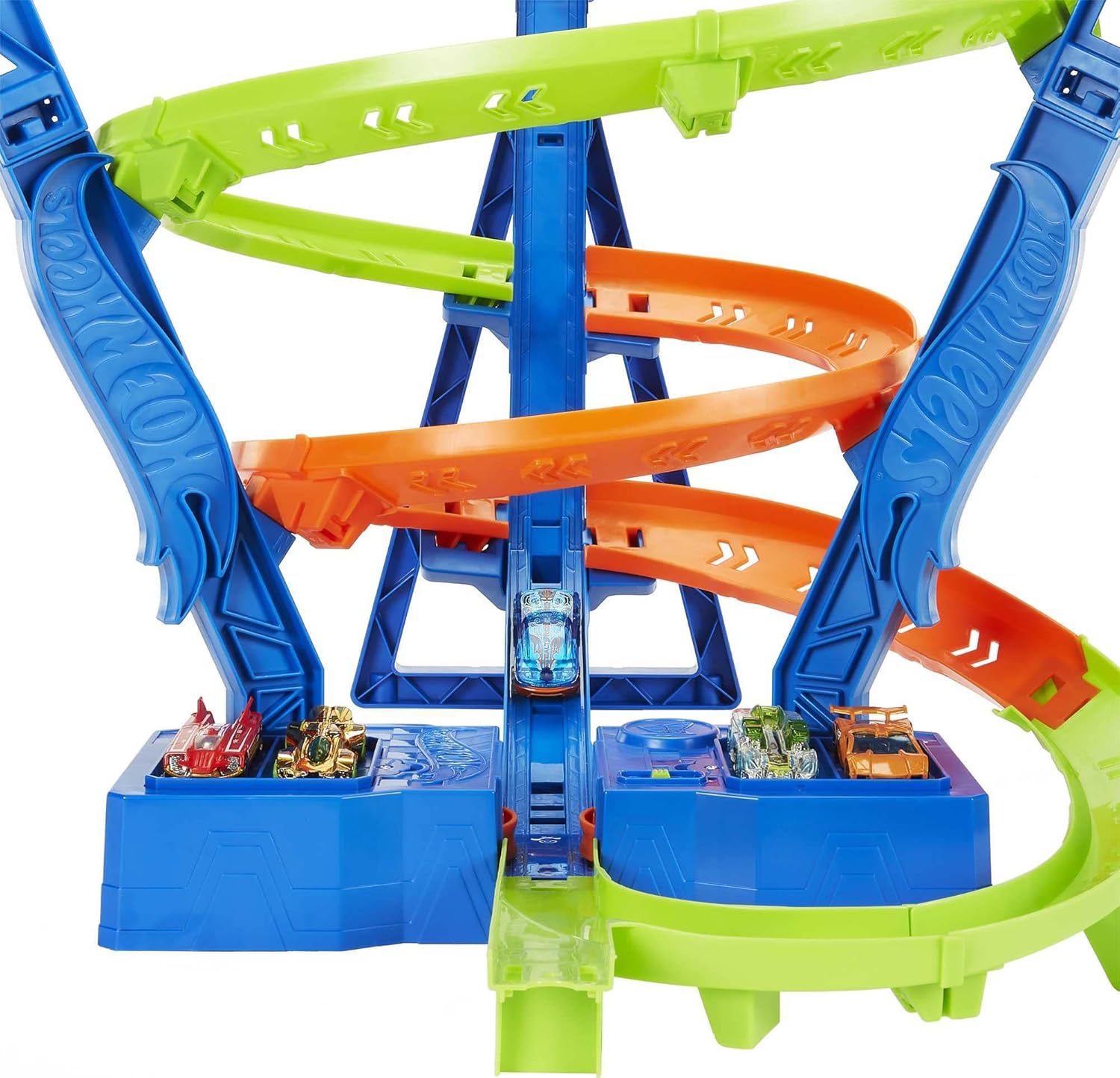 HOT WHEELS JUEGO DE RIELES EN ESPIRAL CRASH, PISTA DE CARRERAS HGV67